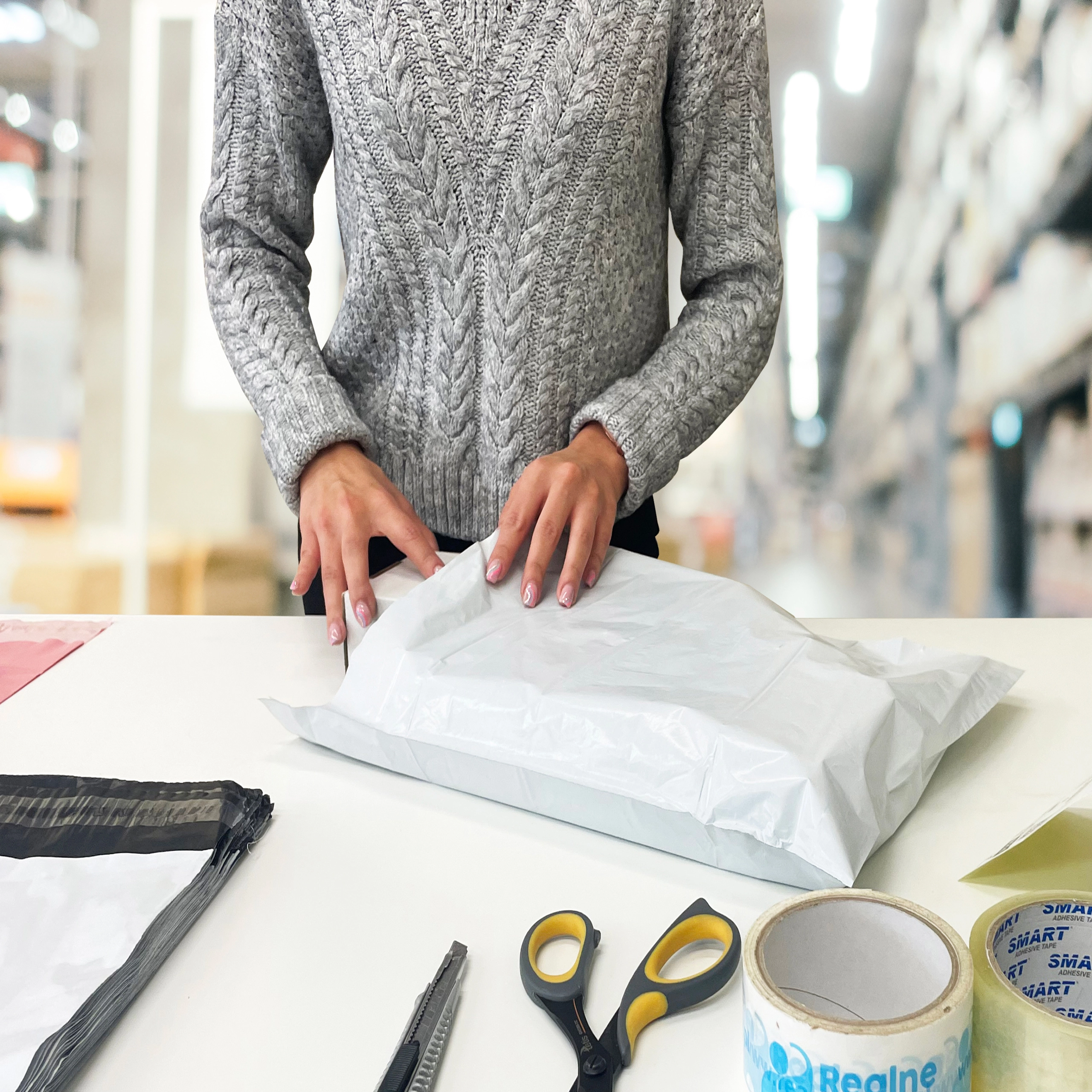 Deze witte poly mailers zijn ontworpen voor efficiënte verzending van producten – van textiel tot accessoires. De zelfklevende strip zorgt voor snelle en betrouwbare sluiting zonder tape, terwijl de donkere binnenlaag privacybescherming biedt.