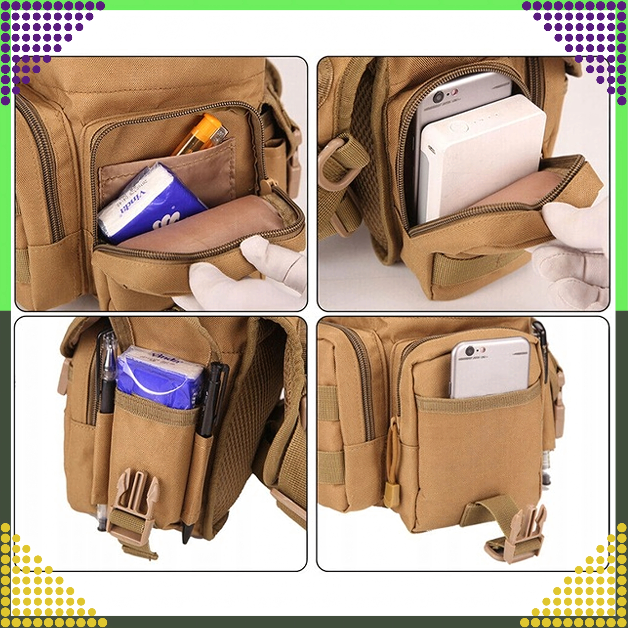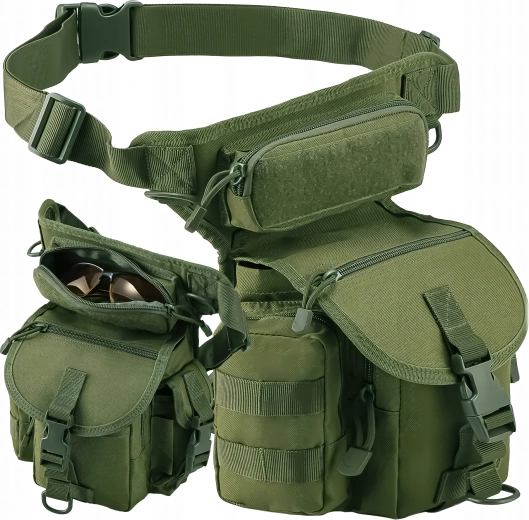 Het ergonomische bevestigingssysteem met een verstelbare heup- en dijriem zorgt voor stabiliteit tijdens wandelen, hardlopen en fietsen. Duurzame materialen en betrouwbare gespen en ritsen kunnen veeleisende omstandigheden aan bij wandeltochten, kamperen, vissen, airsoft en alledaagse reizen.
