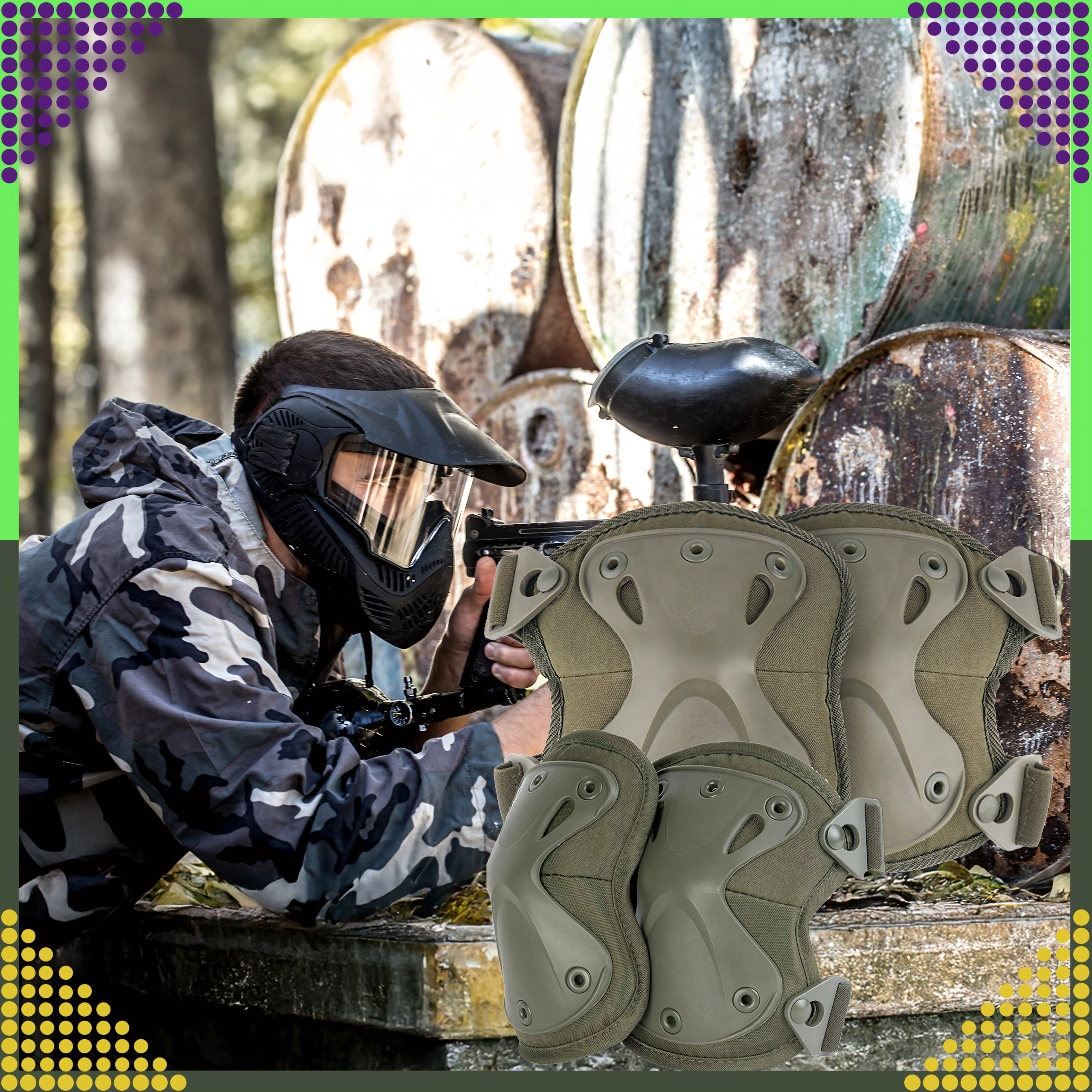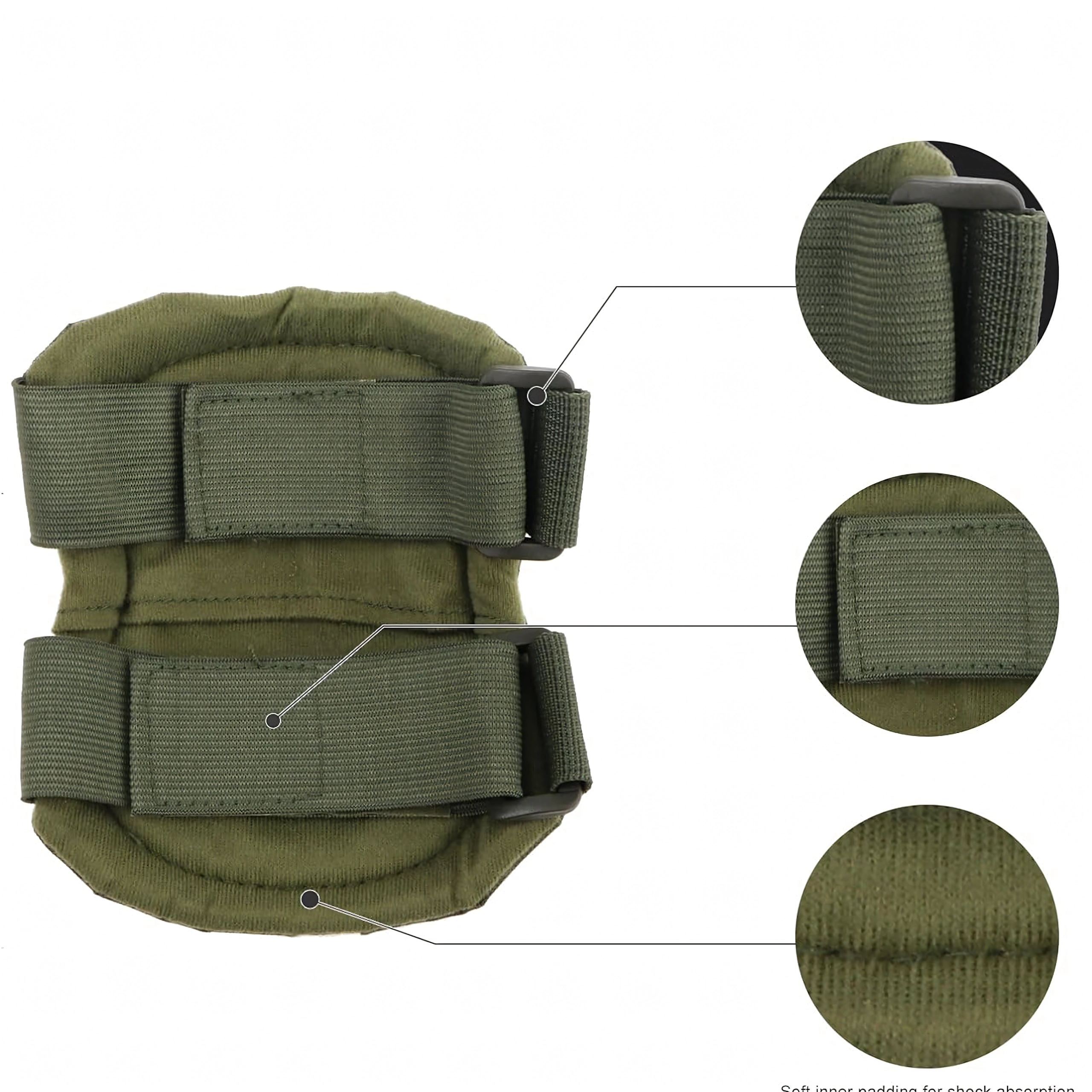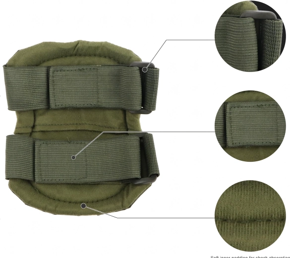 De beschermers worden bevestigd met elastische banden die nauwkeurig zijn aan te trekken. De geklonken verbinding verhoogt de weerstand tegen uitscheuren, terwijl snelsluitgespen razendsnel aan- en uittrekken mogelijk maken zonder de bandlengte opnieuw te hoeven afstellen. Geschikt voor airsoft, paintball, fietsen, skate/step/inline, outdoor en licht werkgebruik.