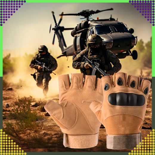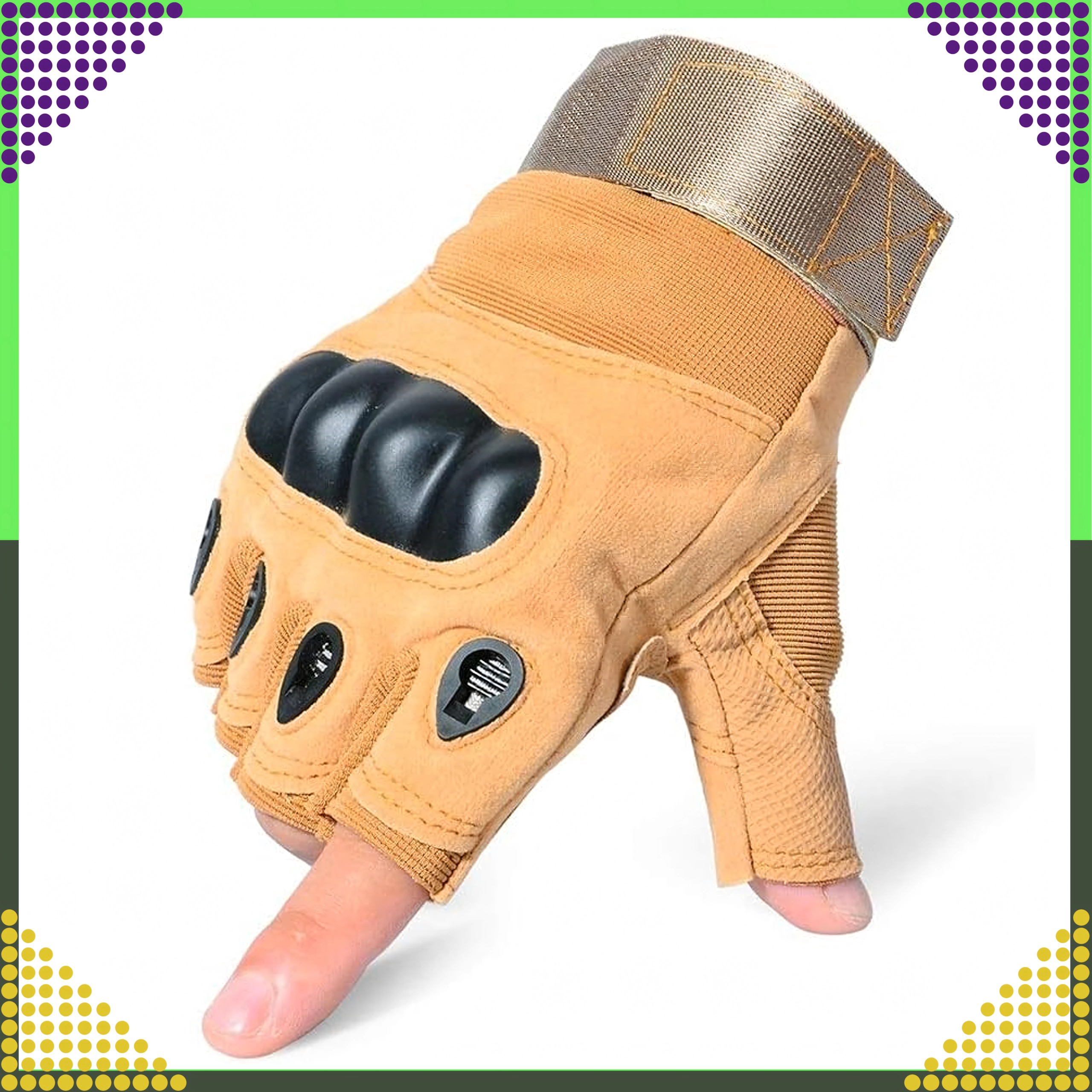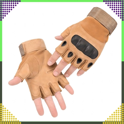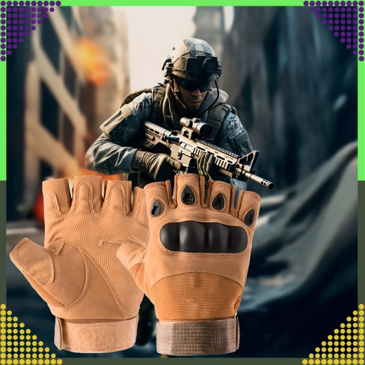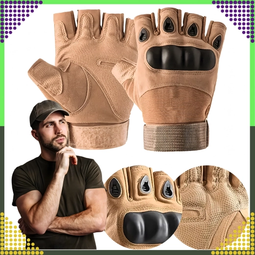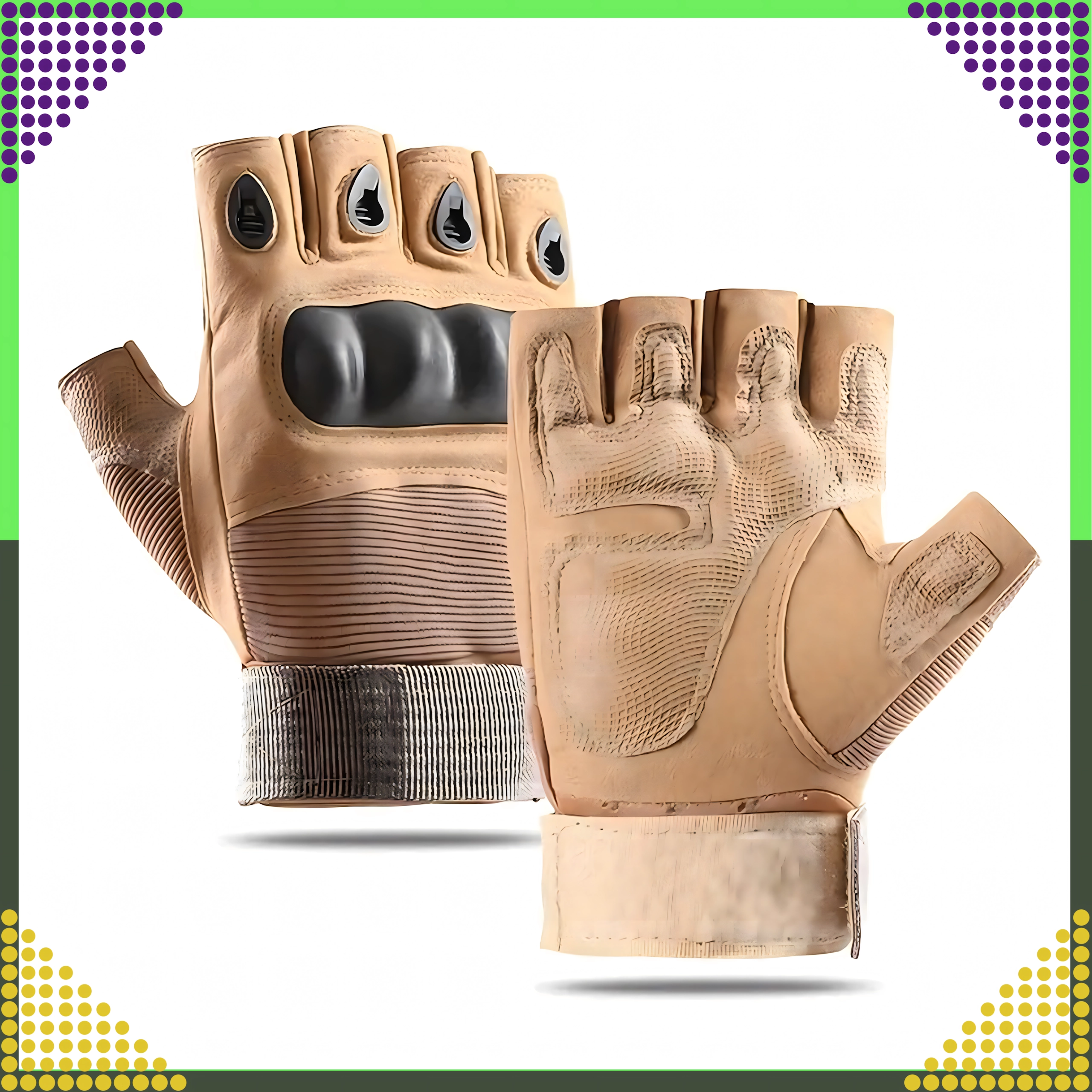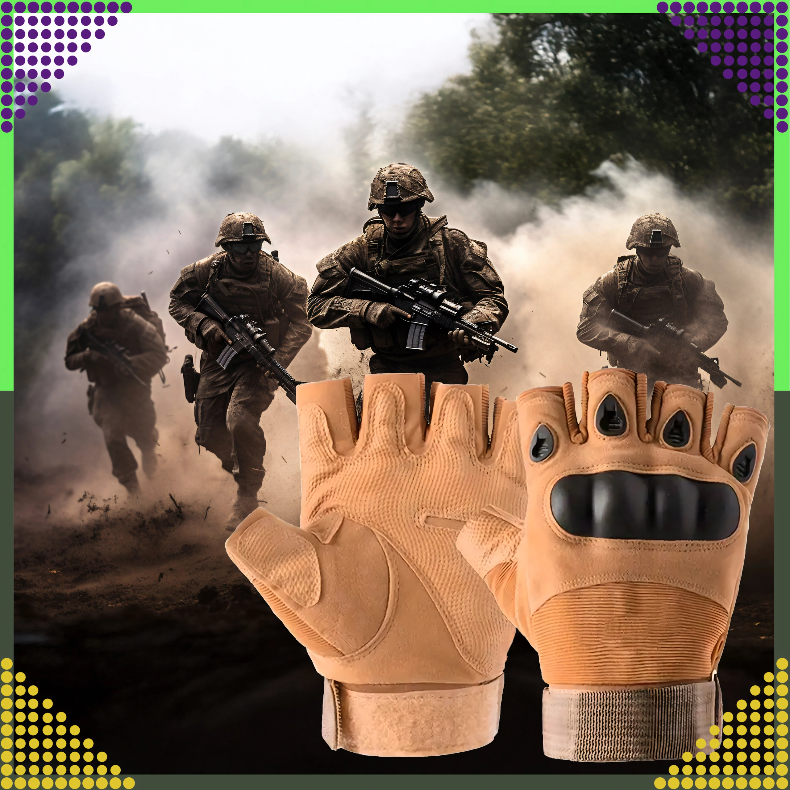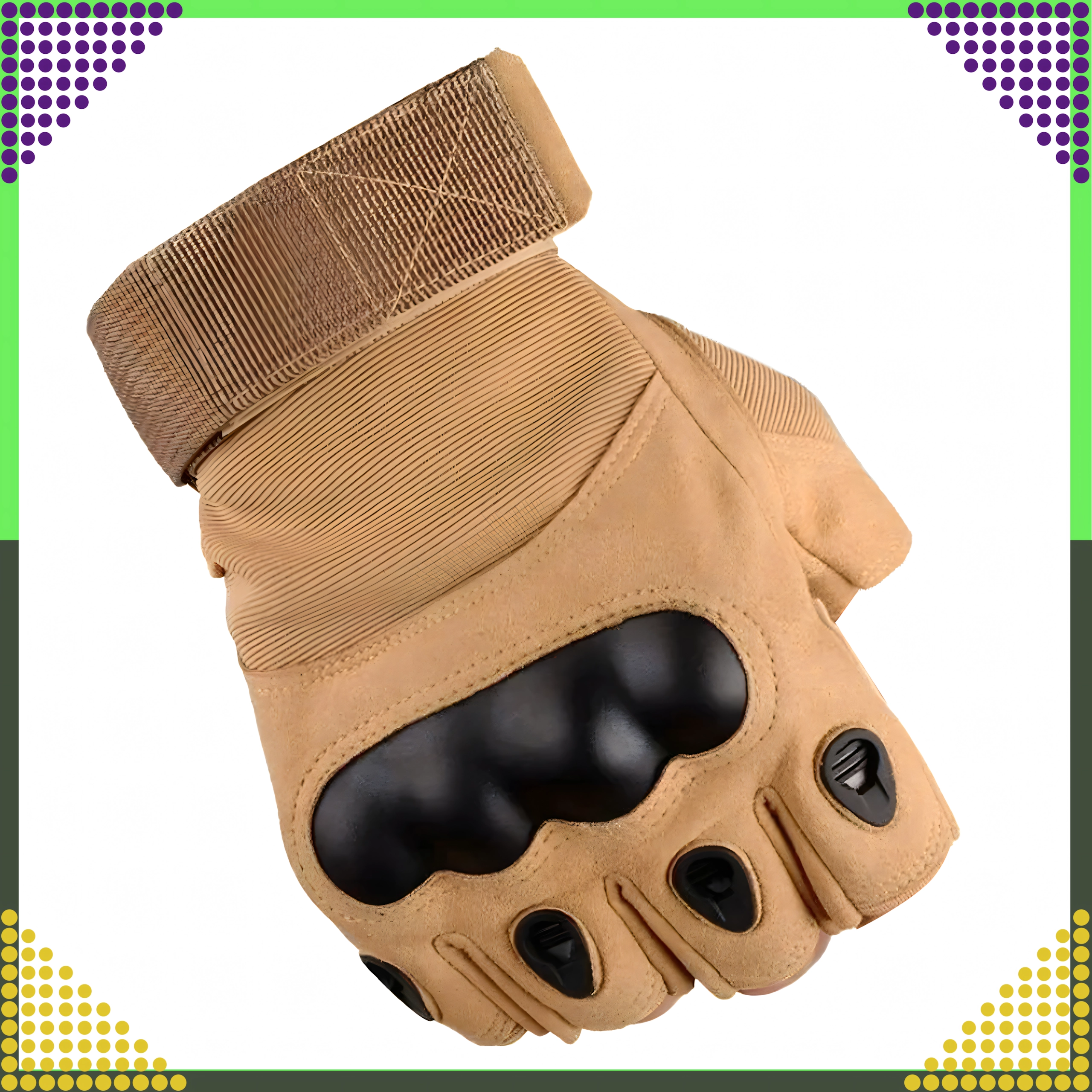 Tactische vingerloze handschoenen combineren duurzaamheid en comfort voor veeleisend gebruik. De harde knokkelversteviging beschermt tegen schokken en schaafwonden, terwijl de gewatteerde, antislip handpalm zorgt voor een zekere grip op gereedschap, stuur of wapen. Open vingertoppen bieden maximale gevoeligheid en controle.