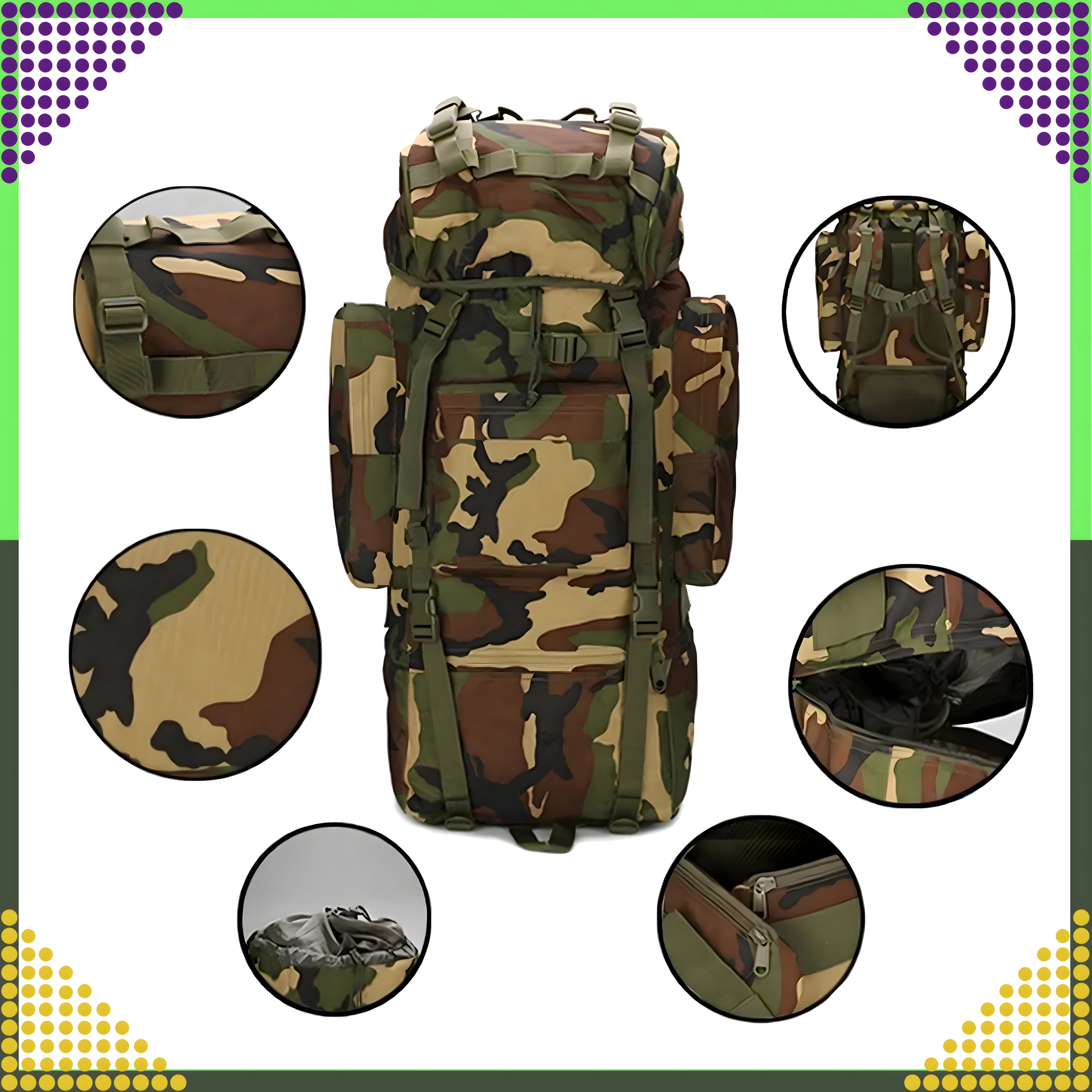 Zoek je een betrouwbare rugzak voor in de bergen, op de camping of voor langere tochten in de natuur? Deze tactische rugzak met een capaciteit van 65 l combineert hoge duurzaamheid, draagcomfort en een praktische indeling. Het hoofdcompartiment met sleeve wordt aangevuld met voor- en zijvakken met rits, zodat je het belangrijkste snel bij de hand hebt.