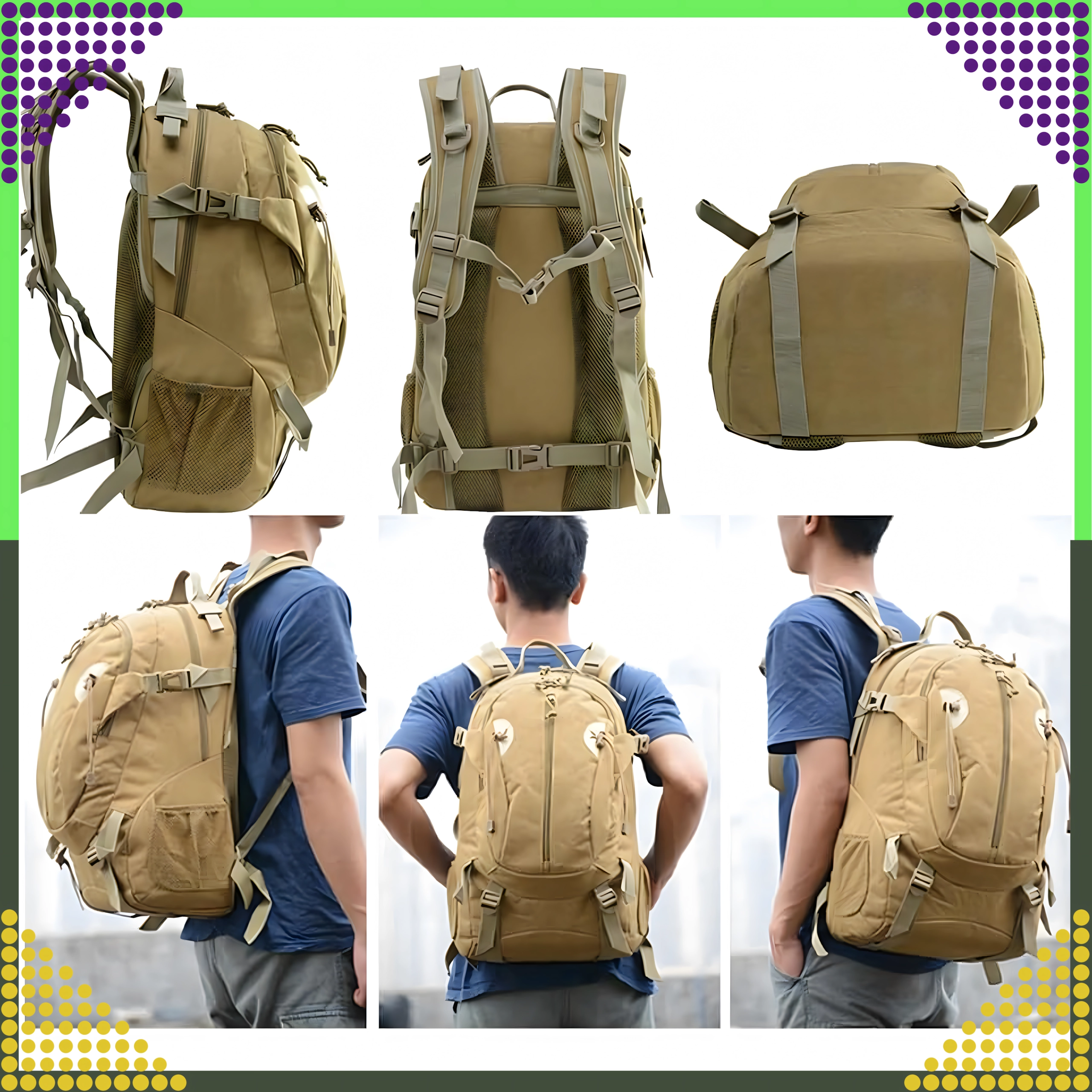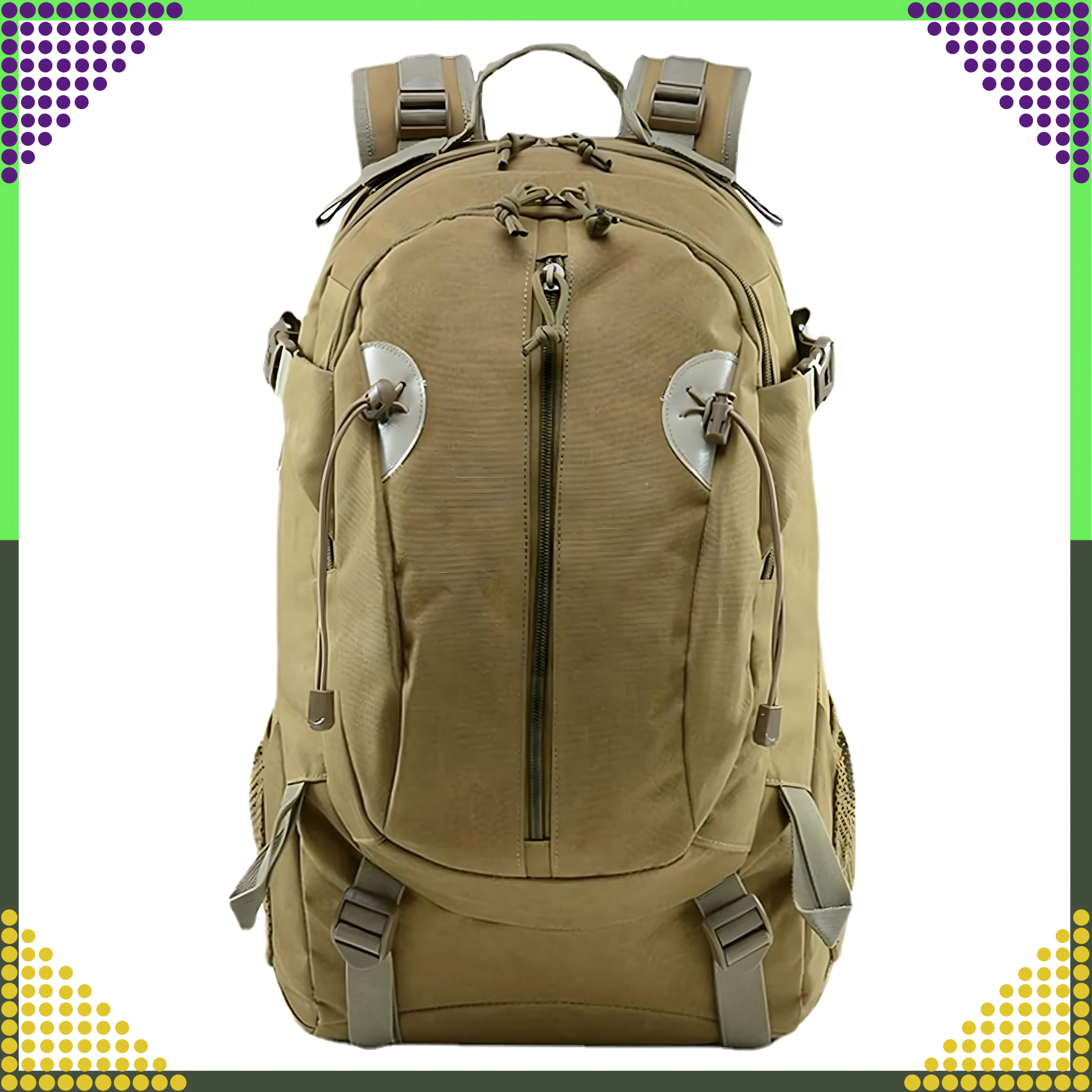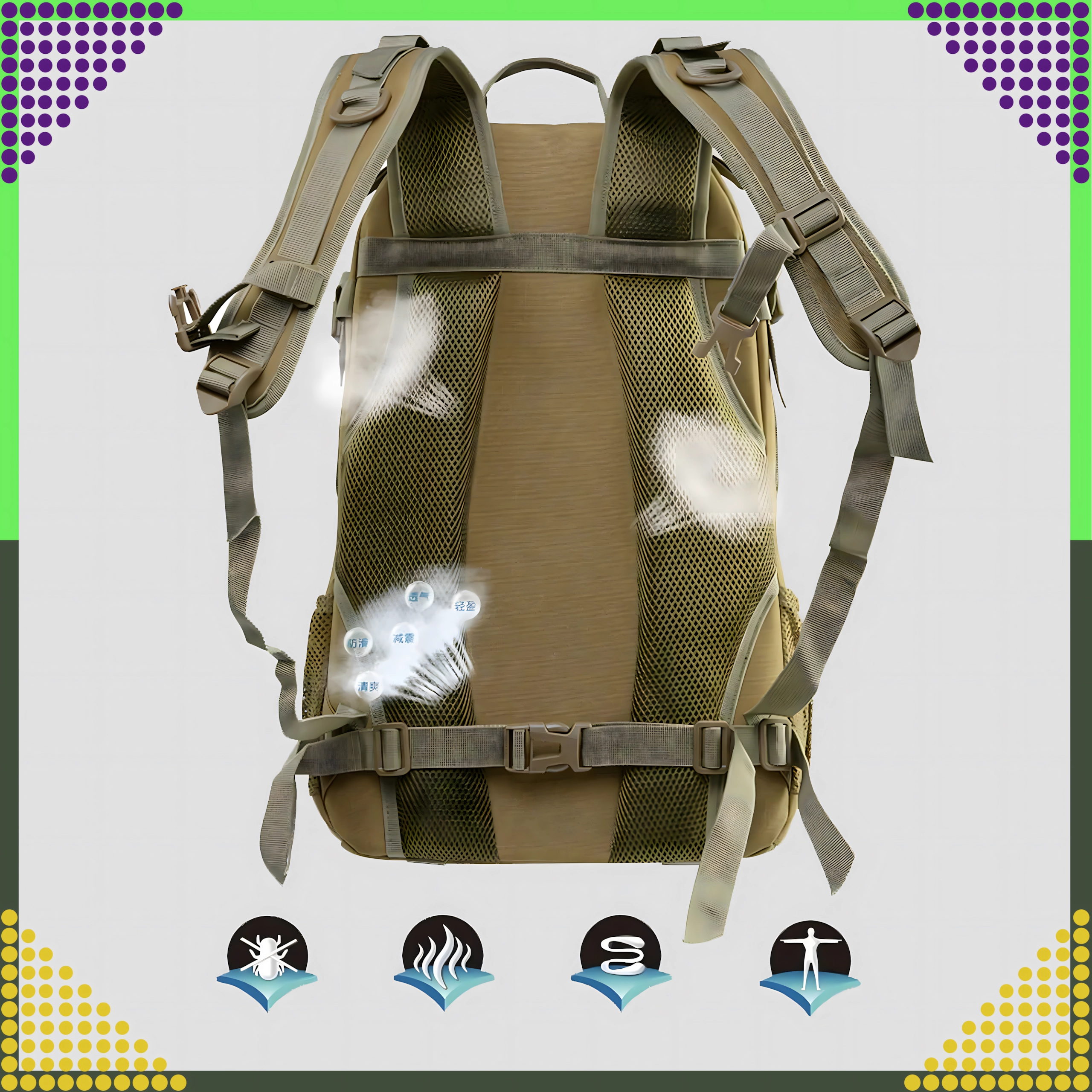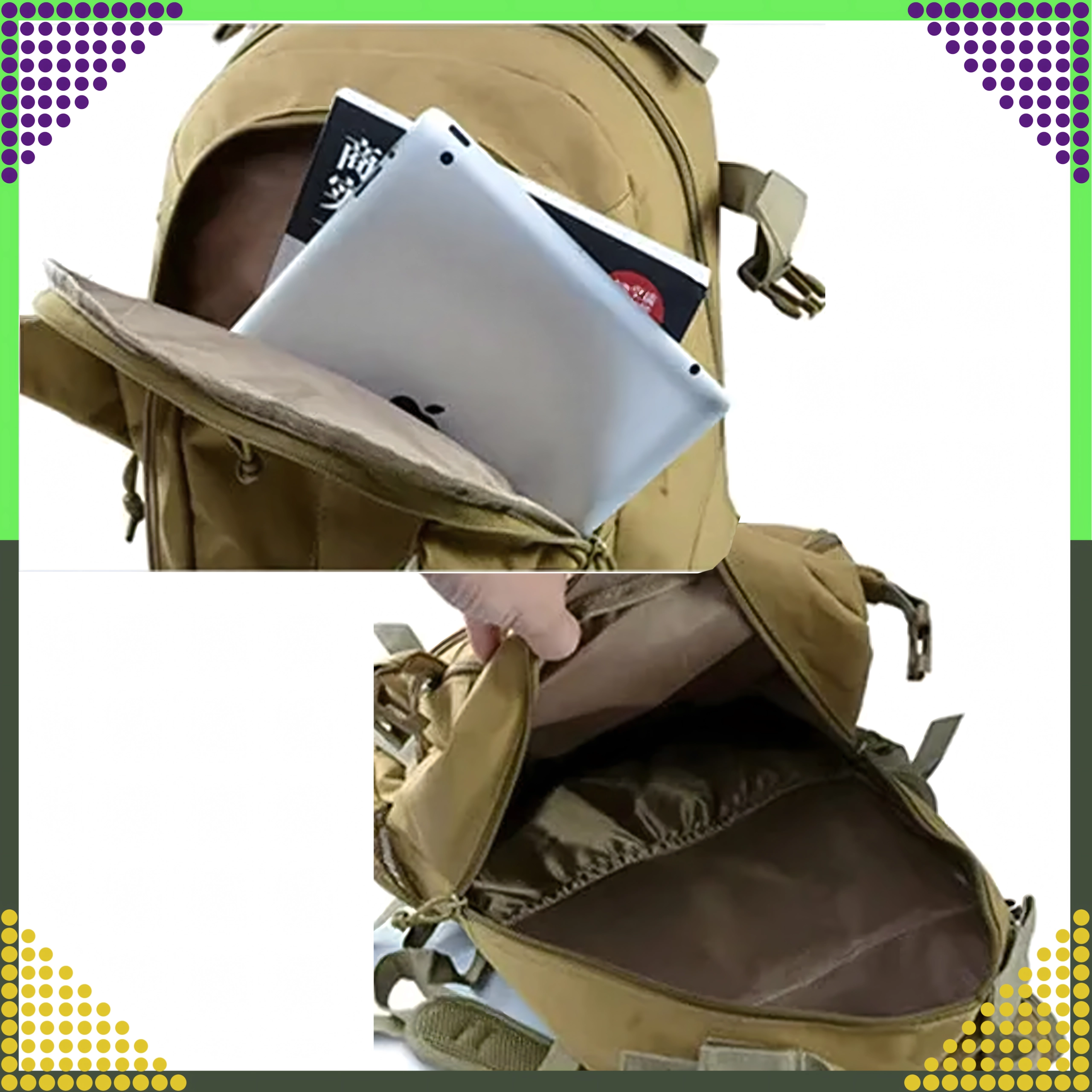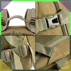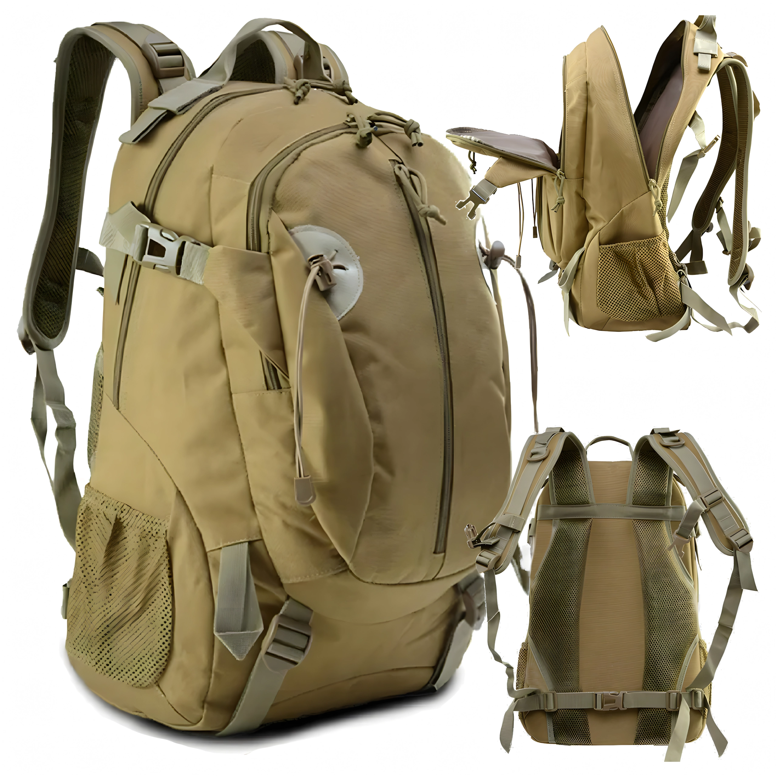 Deze tactische rugzak in de universele kleur khaki is ontworpen voor betrouwbaar dagelijks gebruik in de natuur en in de stad. De duurzame 900D polyester stof met interne PVC-laminering verhoogt de waterbestendigheid en beschermt de inhoud tegen vocht. Het gevoerde rugpand en de schouderbanden met ventilatiesysteem zorgen voor comfort, ook bij langer dragen.