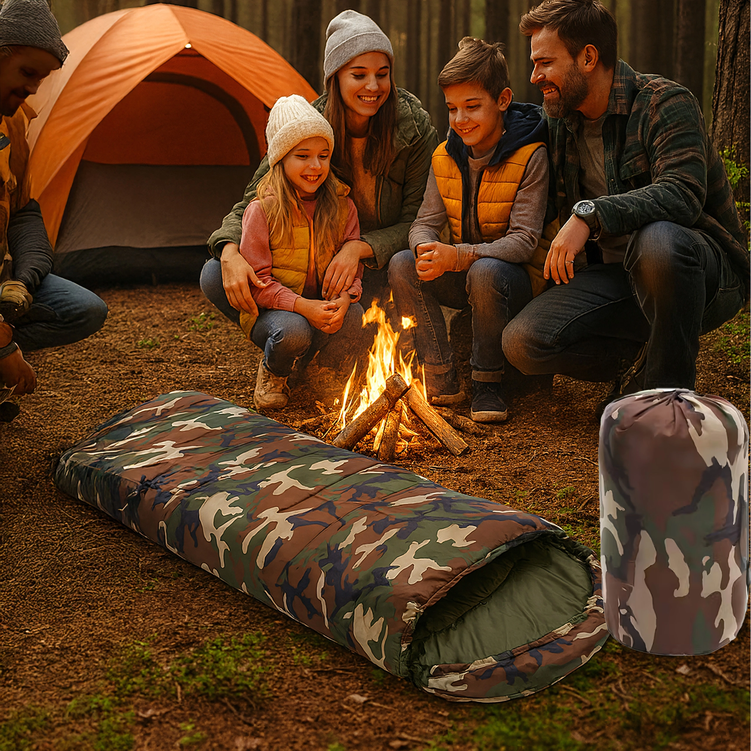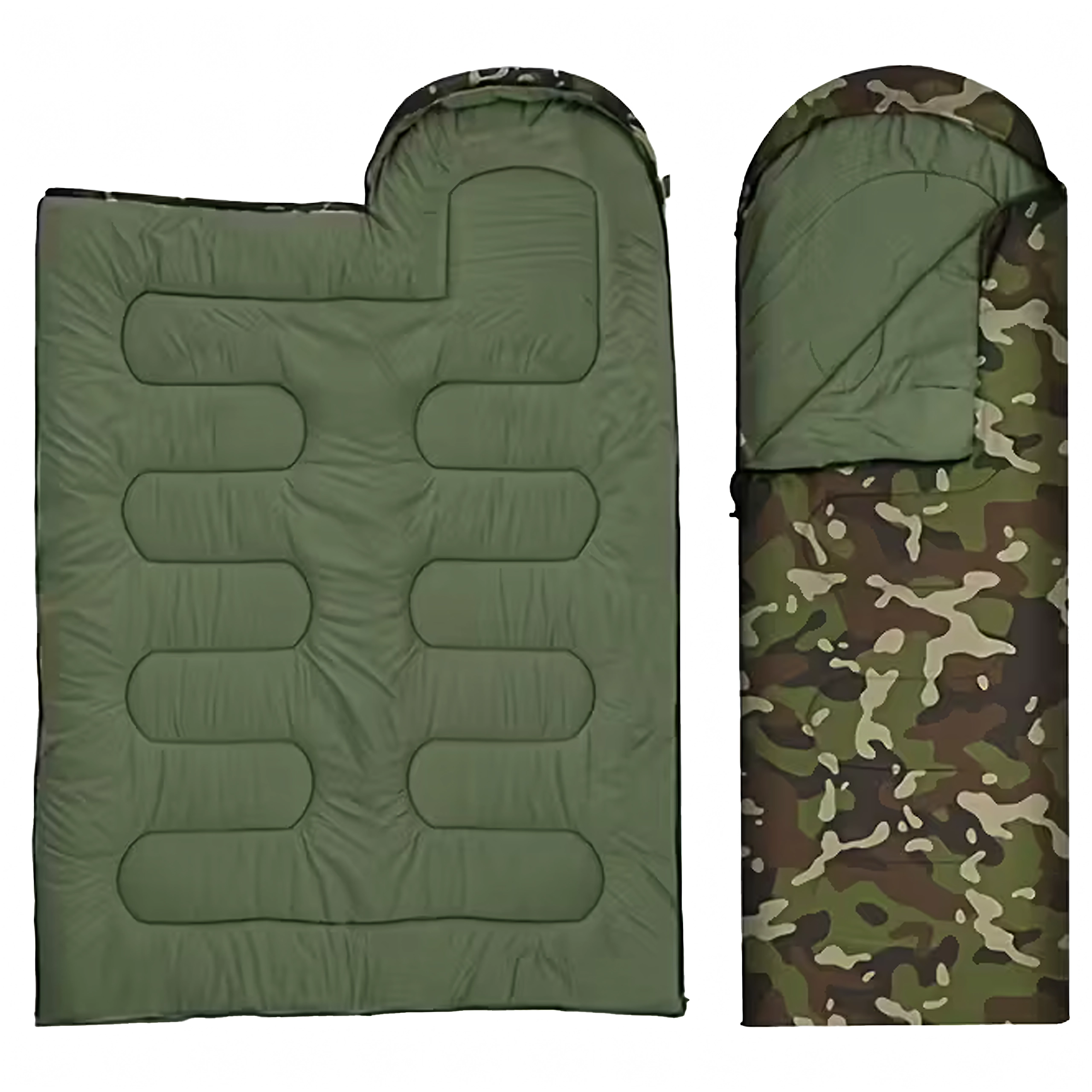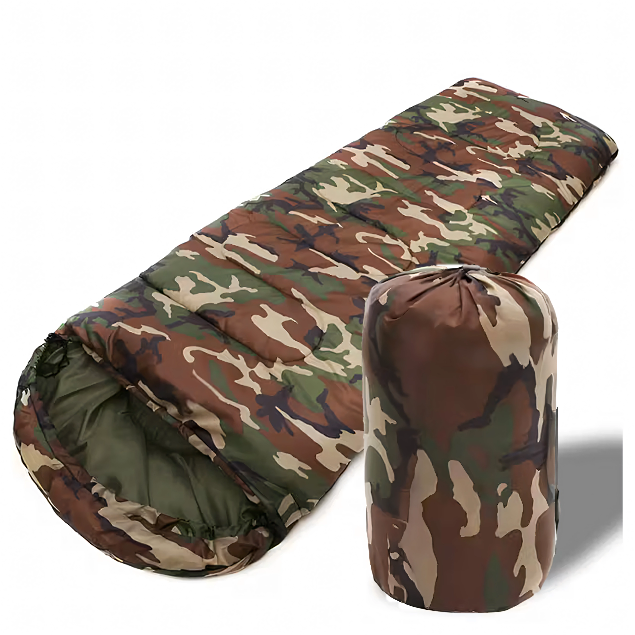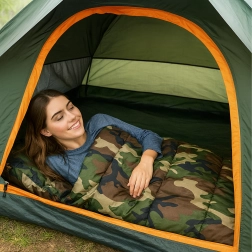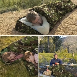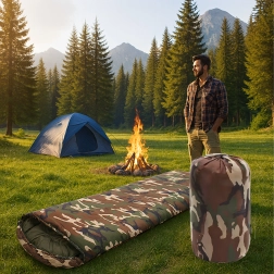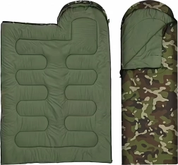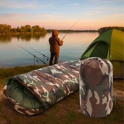 Zoek je een veelzijdige slaapzak voor buiten? Dit 2-in-1 model met mummievorm en capuchon biedt uitstekende thermische comfort, terwijl het camouflage/moro design perfect past in de buitenomgeving. Dankzij de kwaliteitsisolatie en het stiksel houdt hij de hele nacht warmte vast en na openen verandert hij in een comfortabele deken.