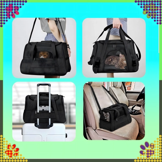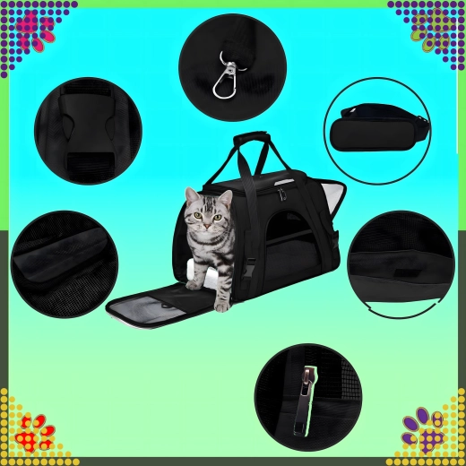 Praktische en lichte transportbox voor huisdieren van duurzaam polyester zorgt voor comfort en veiligheid tijdens het reizen. Dankzij de compacte afmetingen 44 × 28 × 25 cm is hij ideaal voor in de auto en het ov, gemakkelijk schoon te maken, neemt geen geuren op en is vlek- en weerbestendig.