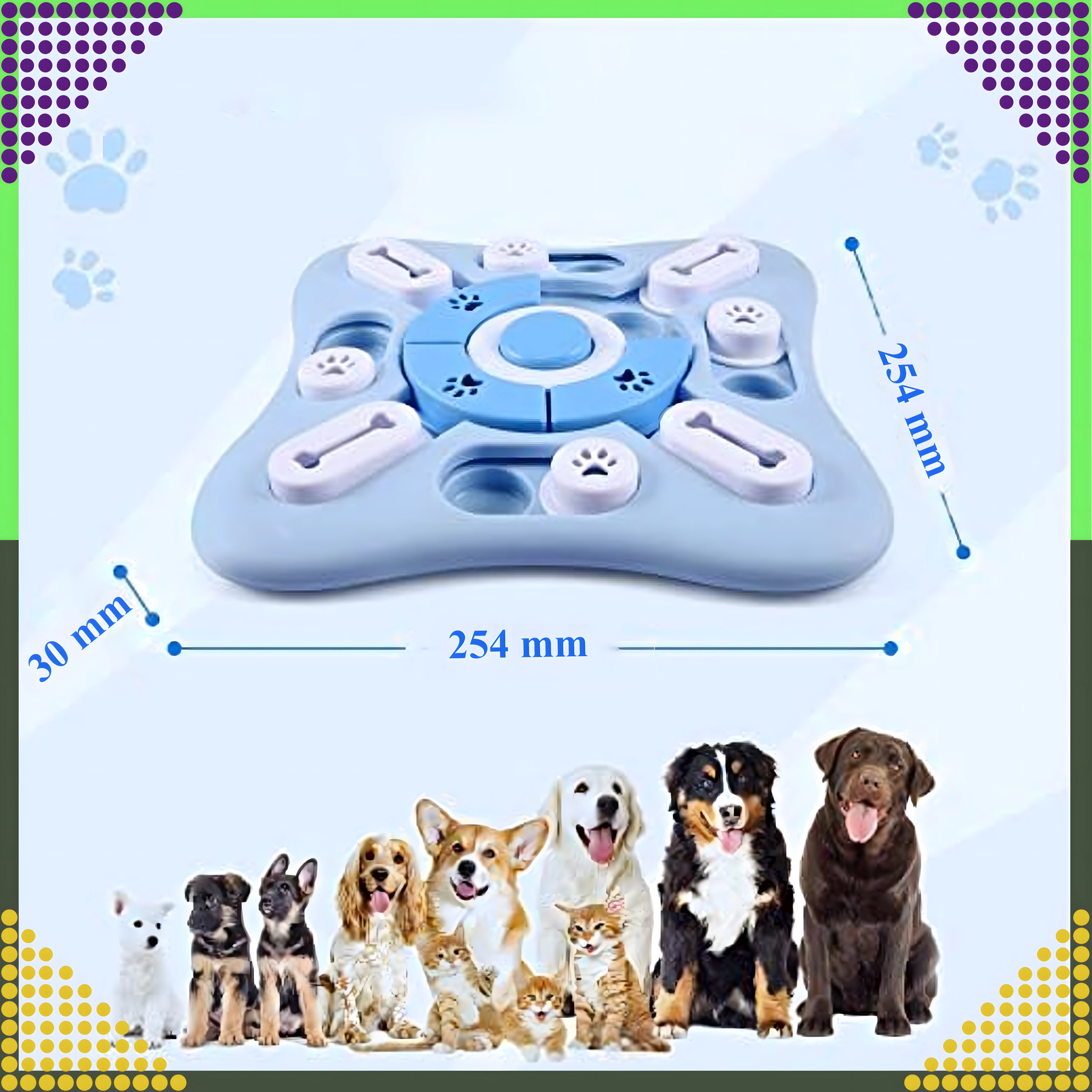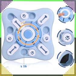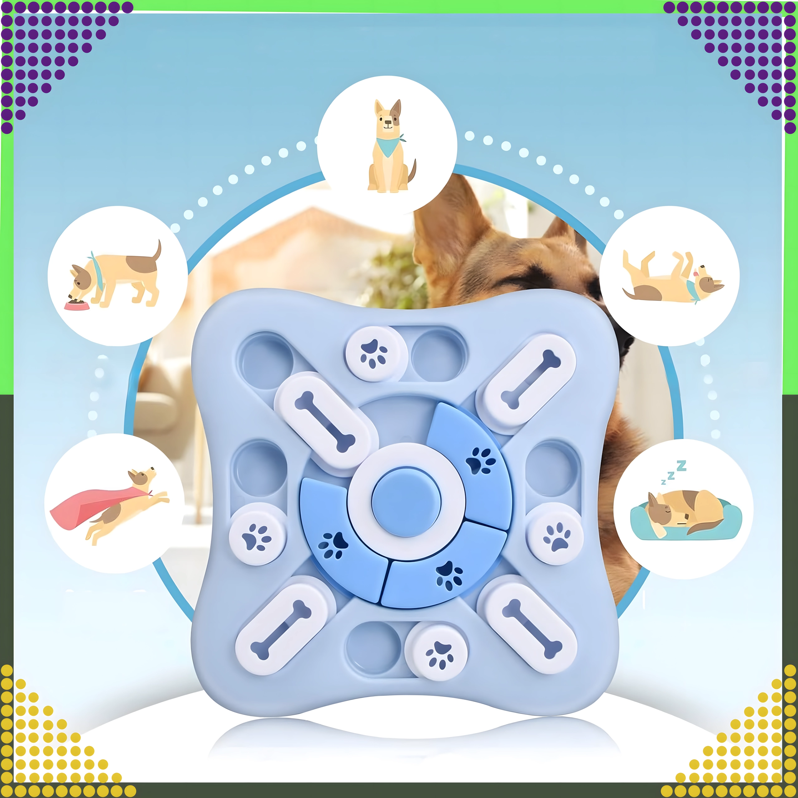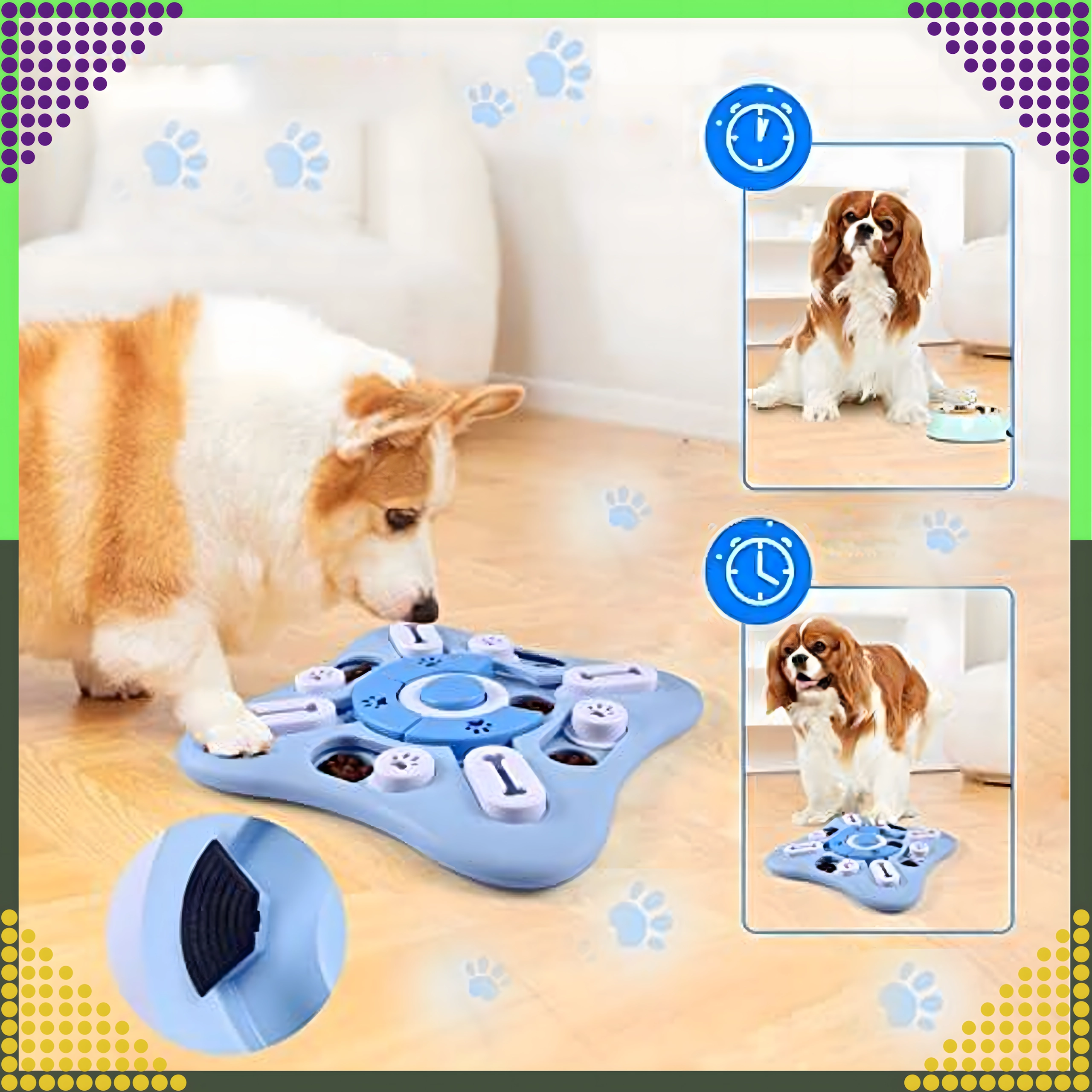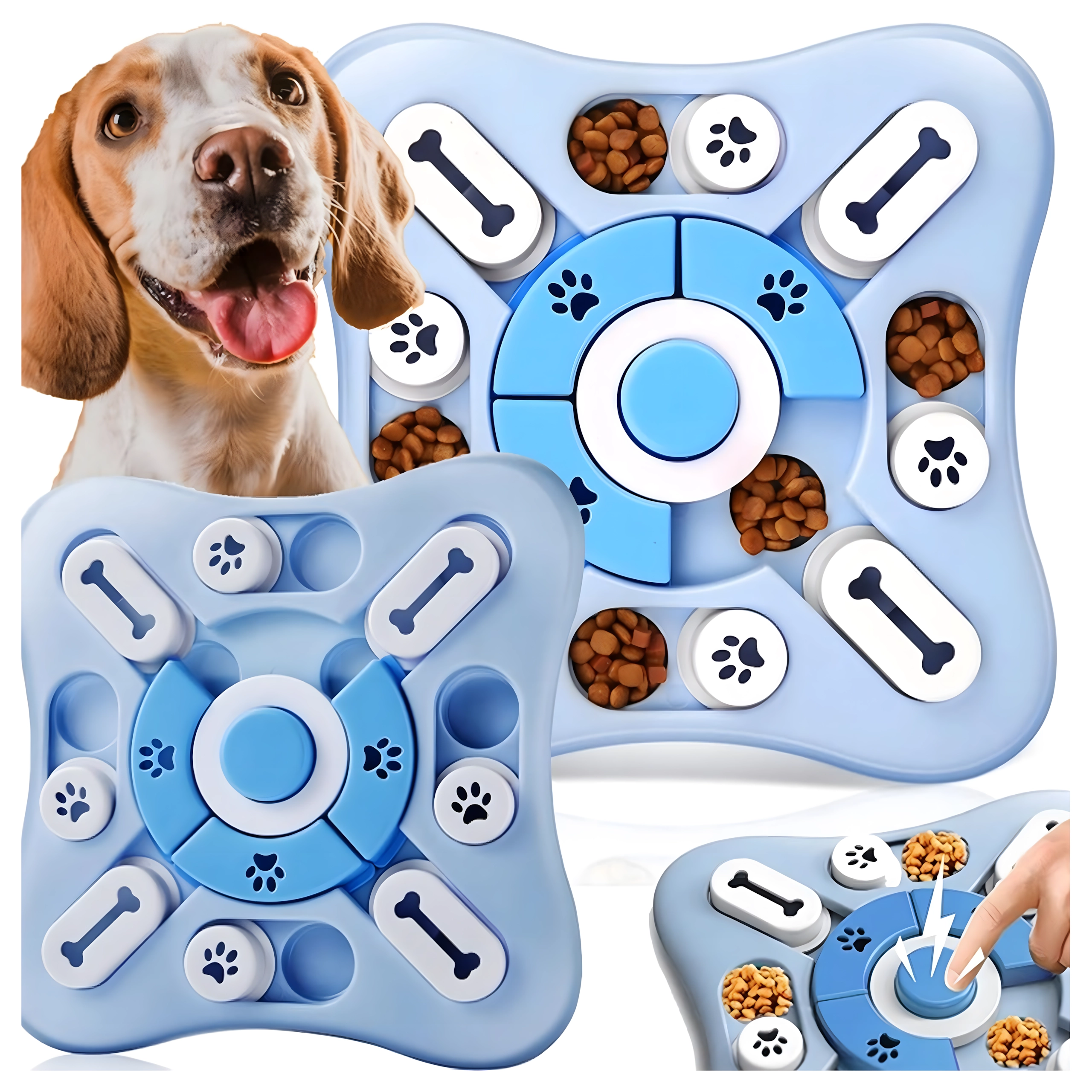 Dankzij de doordachte constructie met anti-slip voetjes en eenvoudige reiniging is het ideaal voor dagelijks gebruik. Het centrale piepertje verhoogt de motivatie om te spelen en de verschuifbare snack-schuilplaatsen met poot- en botmotief zijn intuïtief met de poot te bedienen.