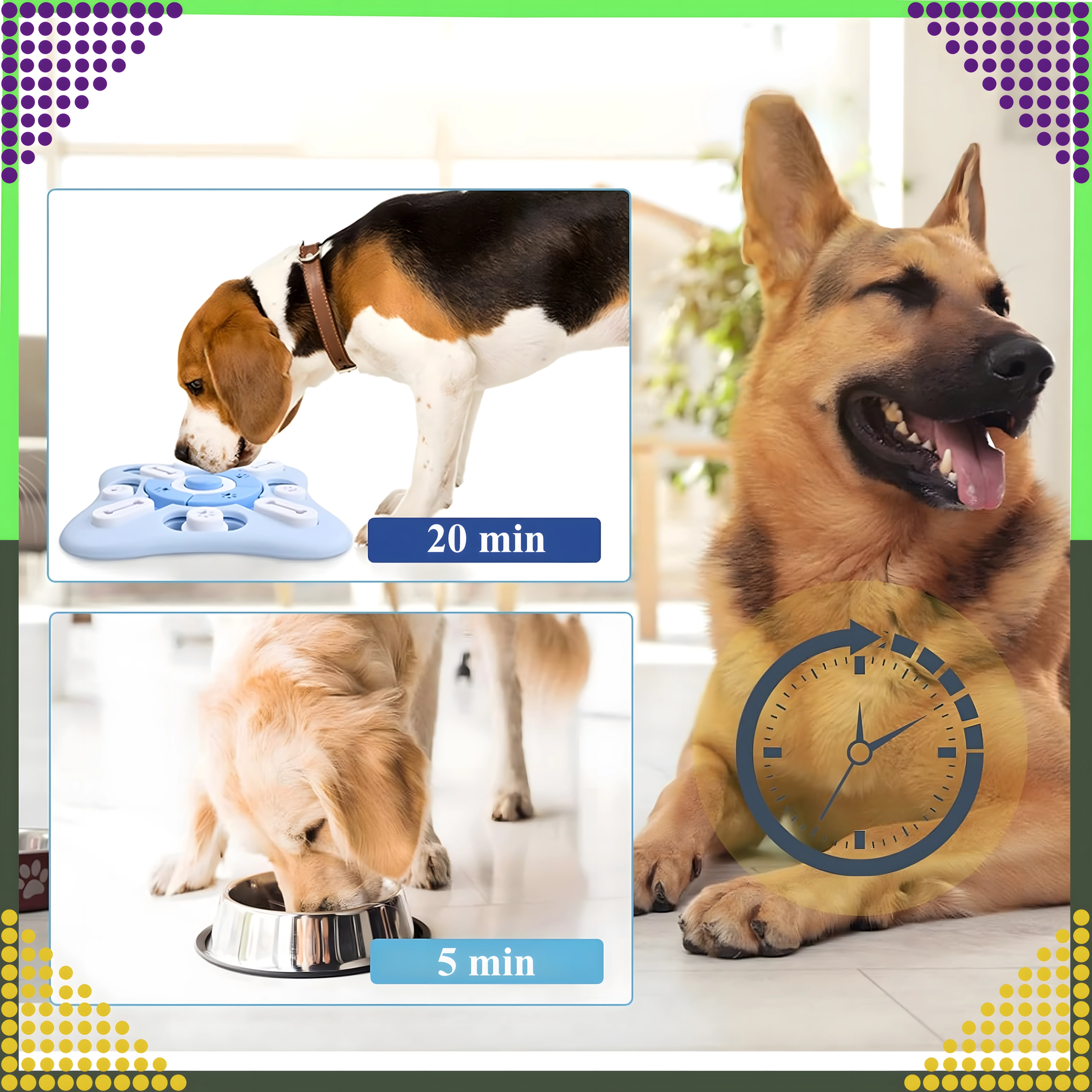 Educatief hondenspeelgoed zorgt voor zinvolle fun, ook tijdens het voeren. De hond zoekt snacks in schuifvakjes, traint de concentratie en benut zijn natuurlijke instinct. Vertragende elementen helpen schrokken te beperken, wat een positief effect kan hebben op de spijsvertering en het algemene comfort van je huisdier.