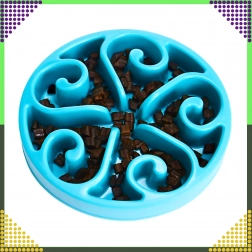 Deze slowfeed-voerbak is ontworpen zodat het dier rustig kan eten zonder te schrokken. Verhoogde kanaaltjes en schotjes verdelen brokken of natvoer in kleinere porties, waardoor de hond of kat het voedsel moet “opjagen” en in delen verwerken. Dit vertraagt het eettempo op natuurlijke wijze en ondersteunt een gezonde spijsvertering.