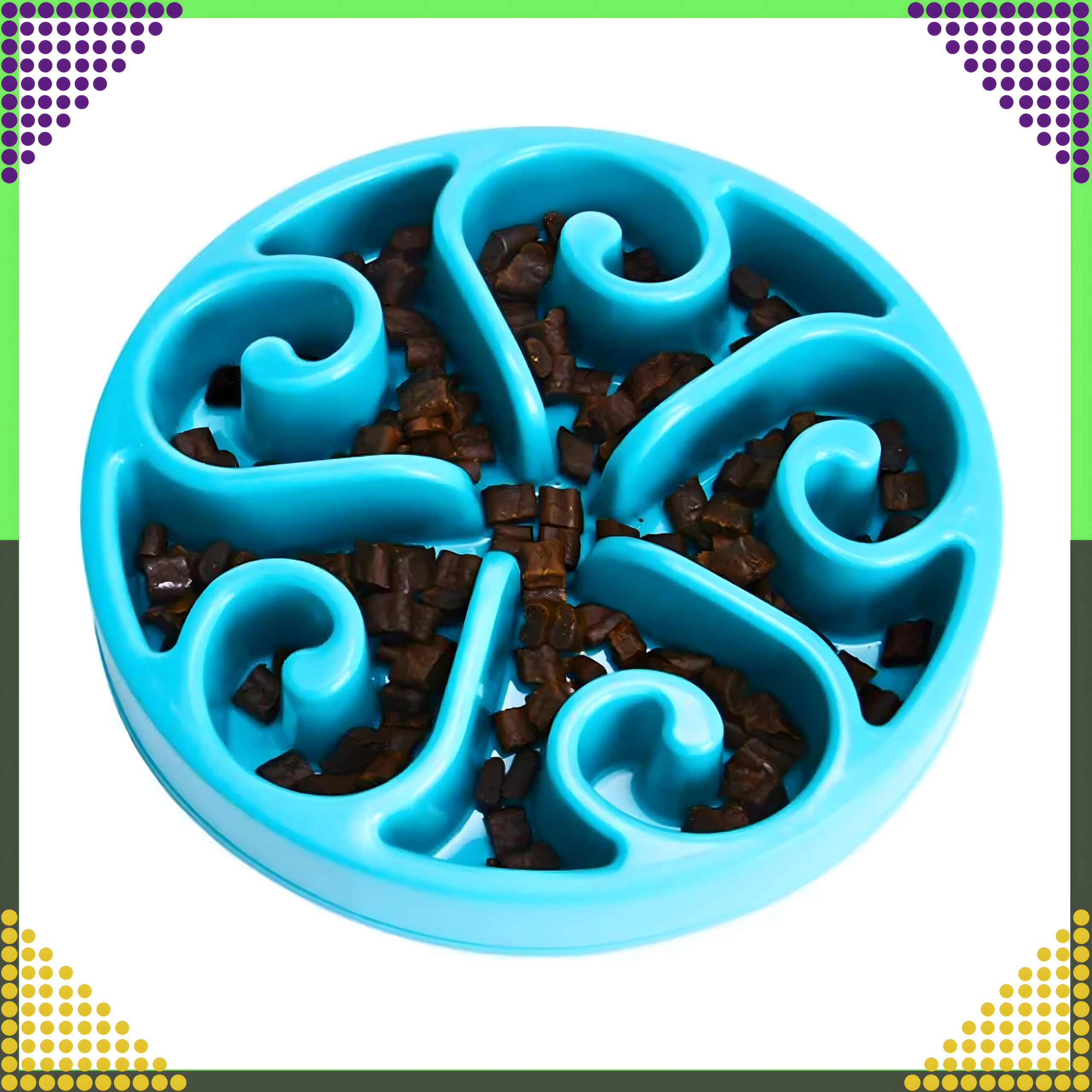 Verhoogde kanaaltjes en schotjes creëren een doolhof dat het dier dwingt langzamer te eten. Dit vermindert schrokken, ondersteunt een betere spijsvertering en verlaagt het risico op obesitas.