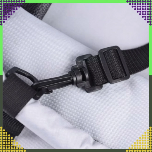 De interne riem met karabijnhaak wordt aan het harnas van je huisdier bevestigd en beperkt zijn beweging tijdens het rijden. Versterkte randen en een stevige bevestiging aan de stoel verhogen de stabiliteit.