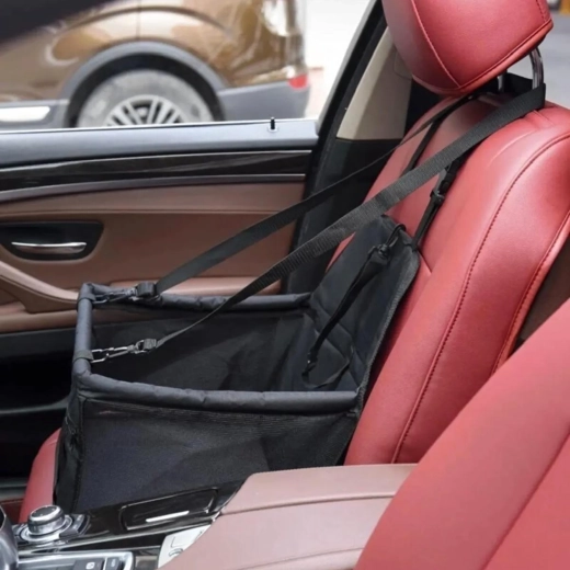 Praktisch autostoeltje voor kleine huisdieren houdt je hond of kat veilig en comfortabel tijdens het rijden. Dankzij het verhoogde ontwerp heeft het dier beter zicht, terwijl de verstelbare riemen en de interne gesp het veilig vastzetten. Snelle installatie, universele bevestiging aan de hoofdsteun, ademende mesh-zijkanten en waterafstotend materiaal zorgen voor een schone en rustige reis.