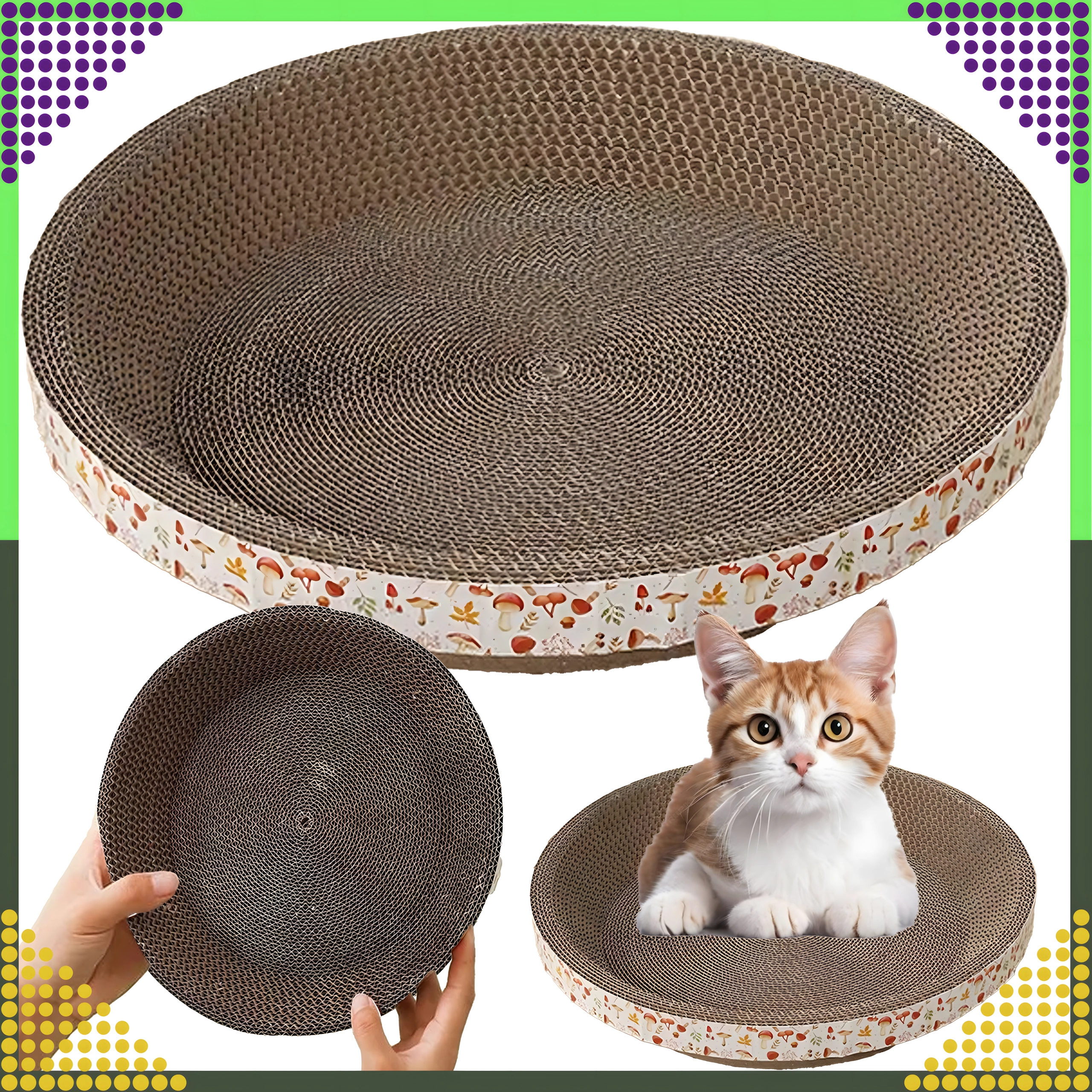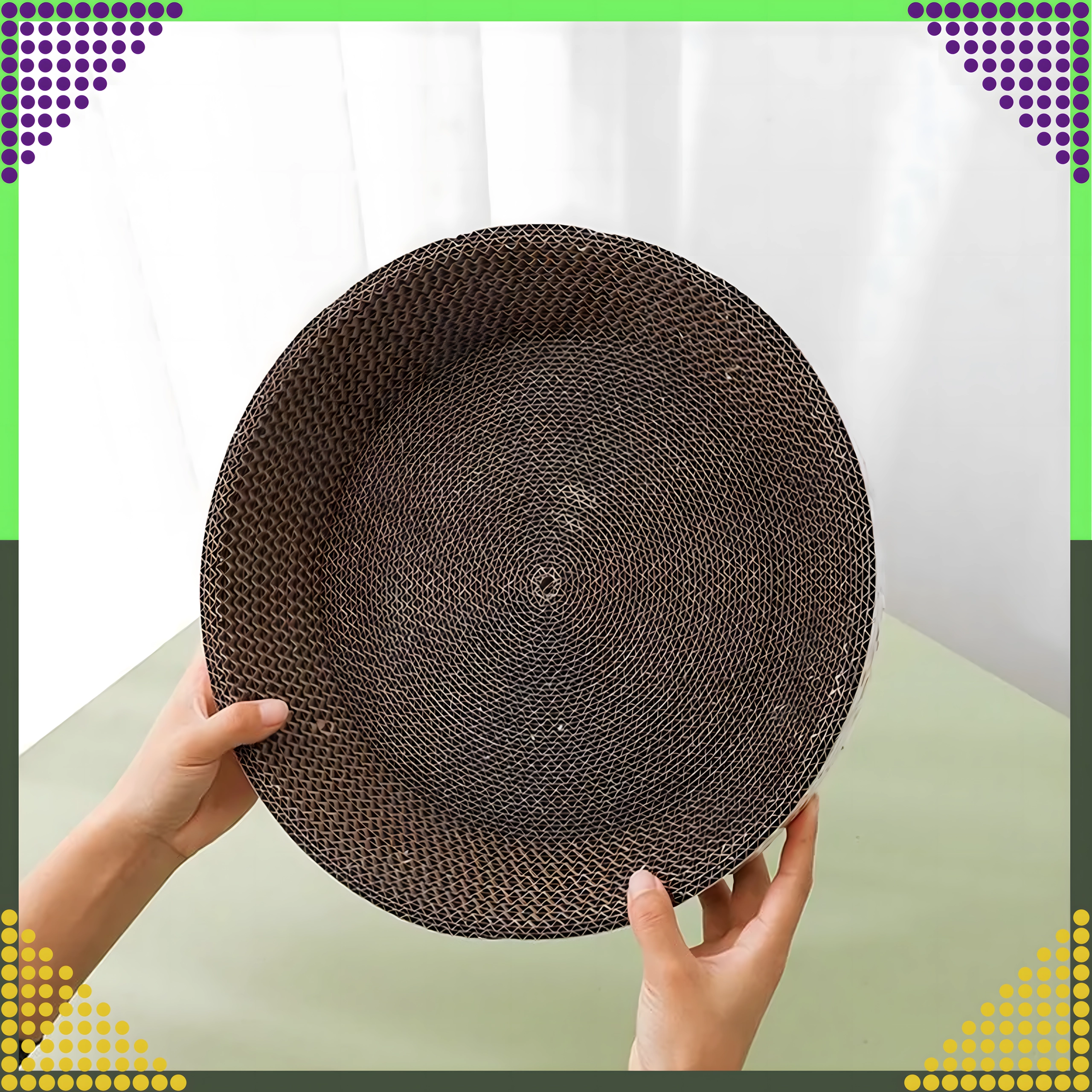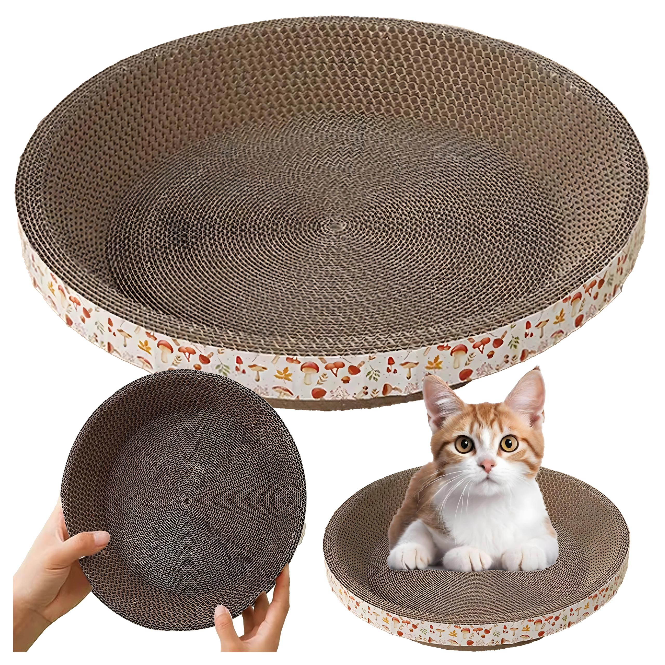 De ronde vorm met honingraatstructuur biedt je kat een plek om te krabben én comfortabel te rusten, waardoor je ruimte en kosten bespaart.