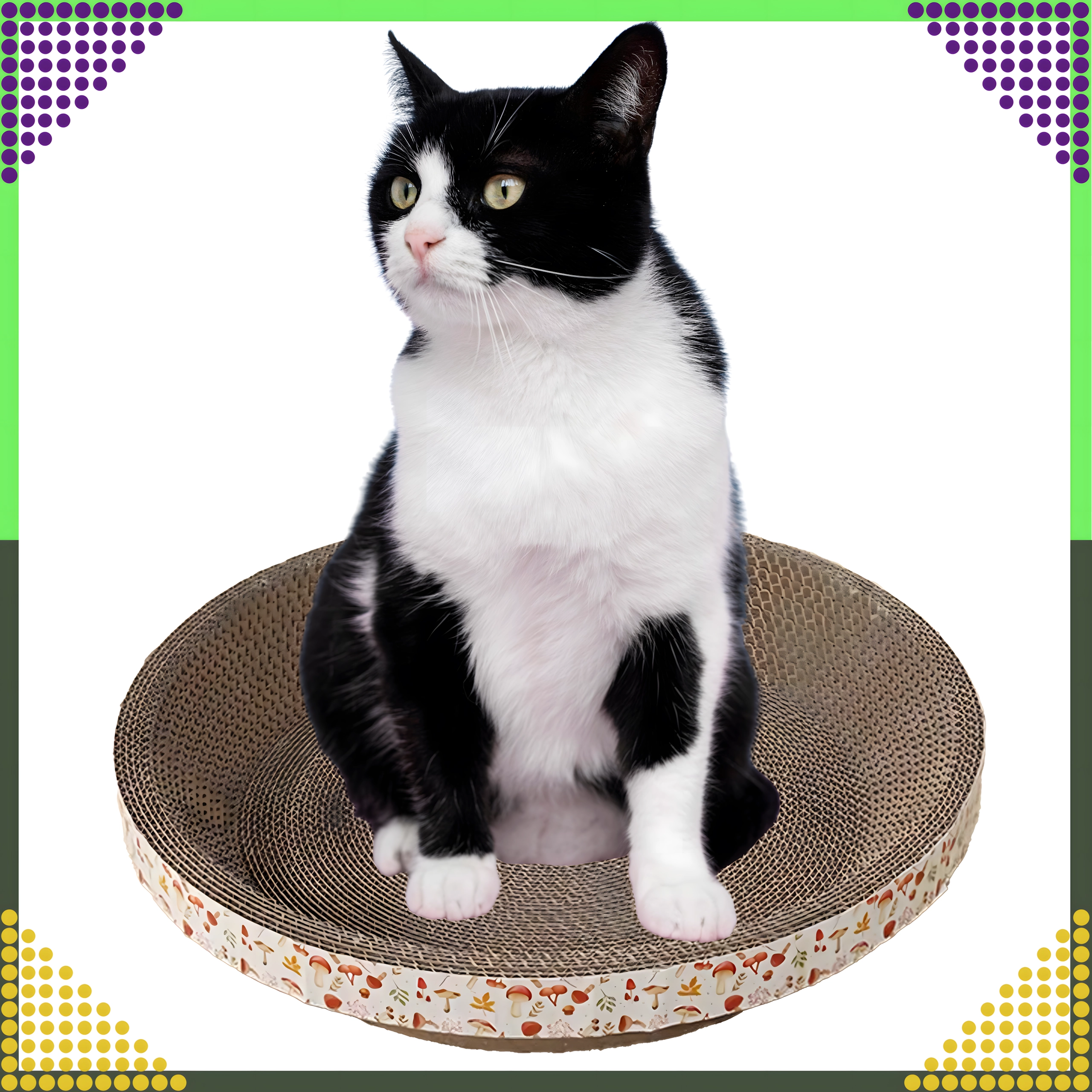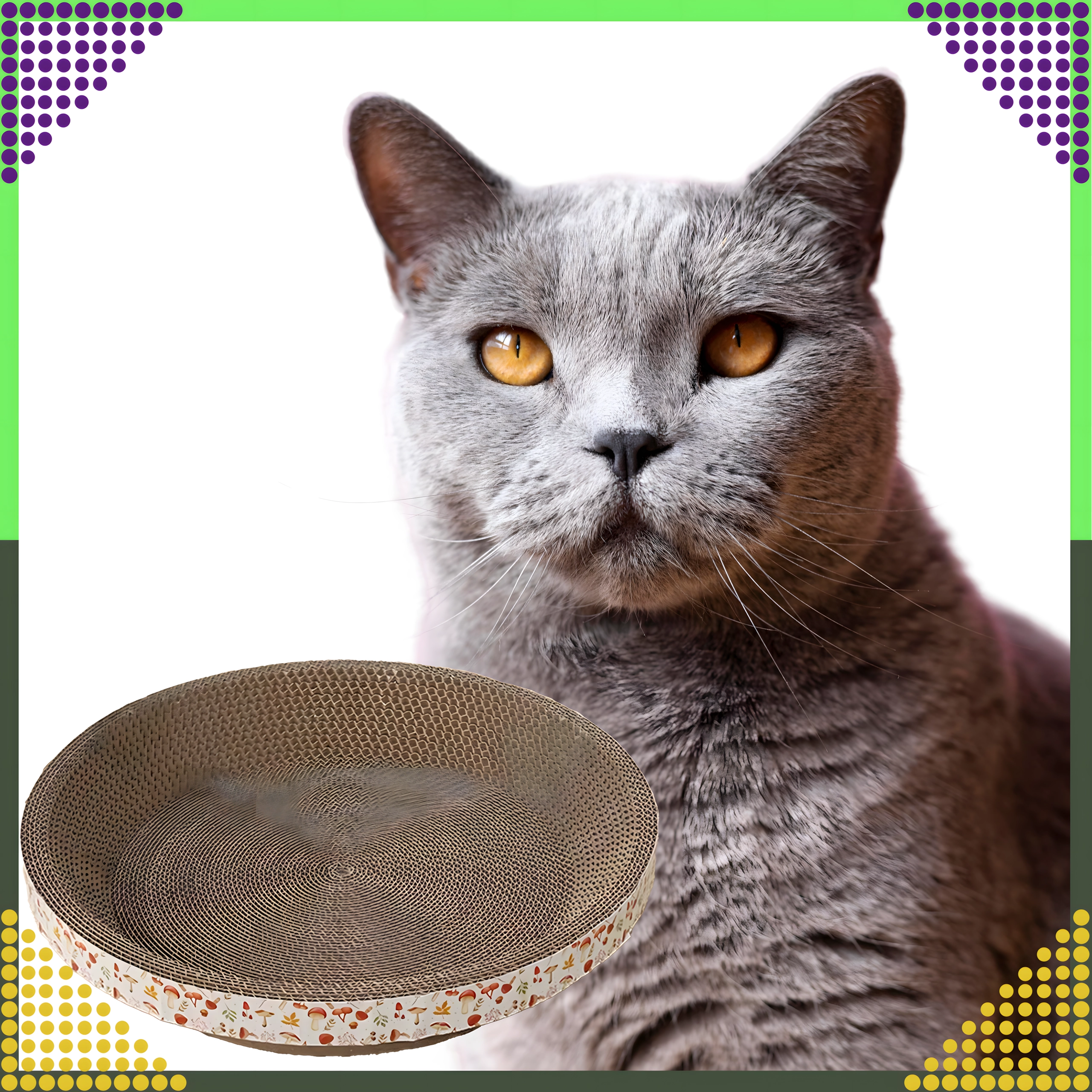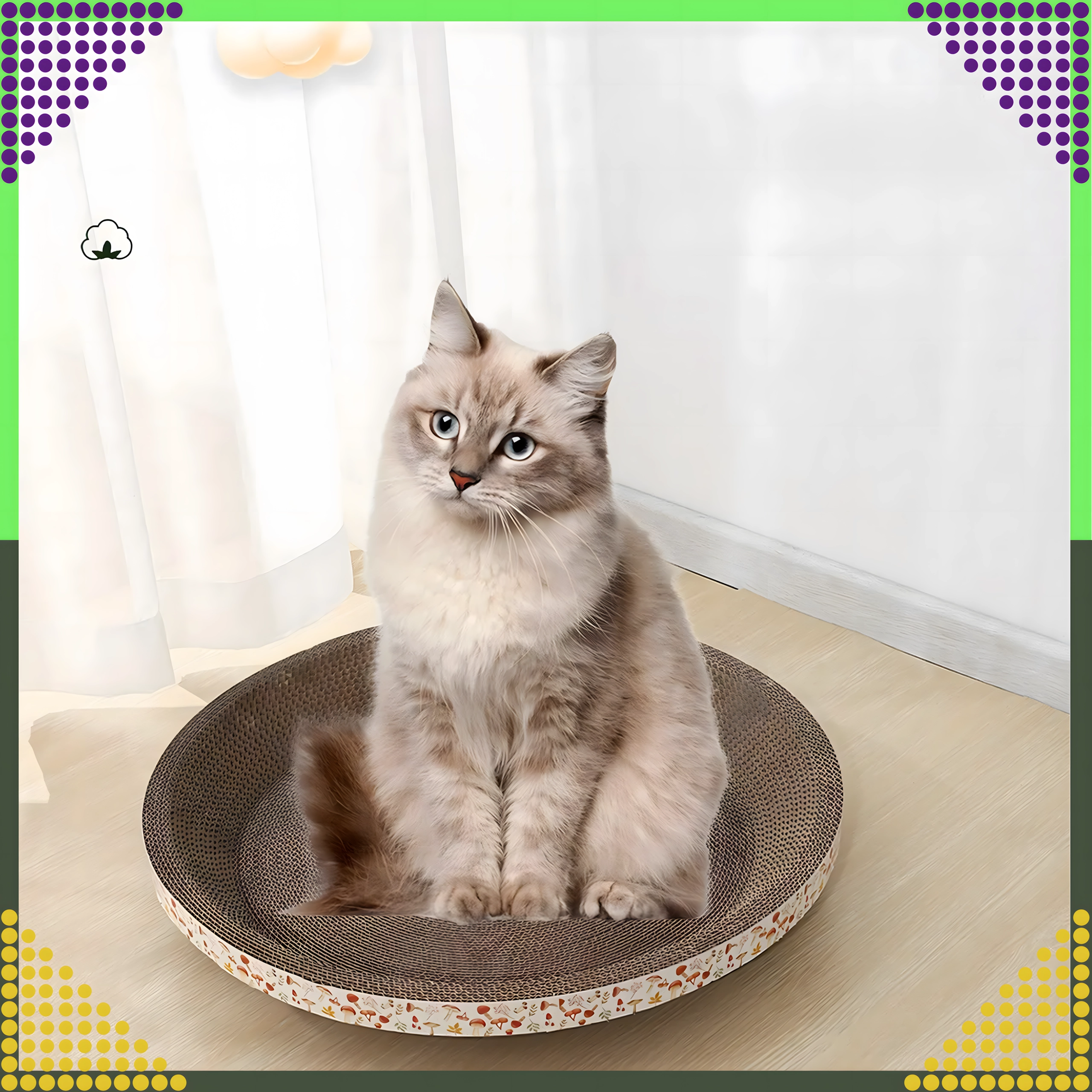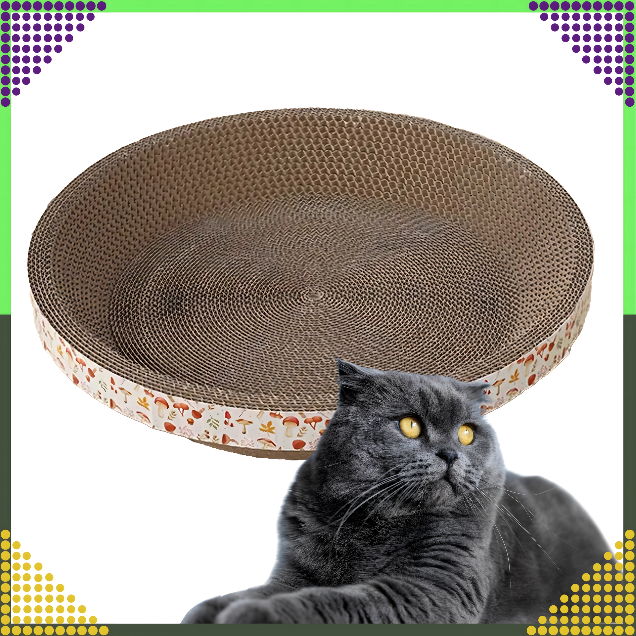 De ronde vorm met honingraatstructuur biedt je kat een plek om te krabben én comfortabel te rusten, waardoor je ruimte en kosten bespaart.