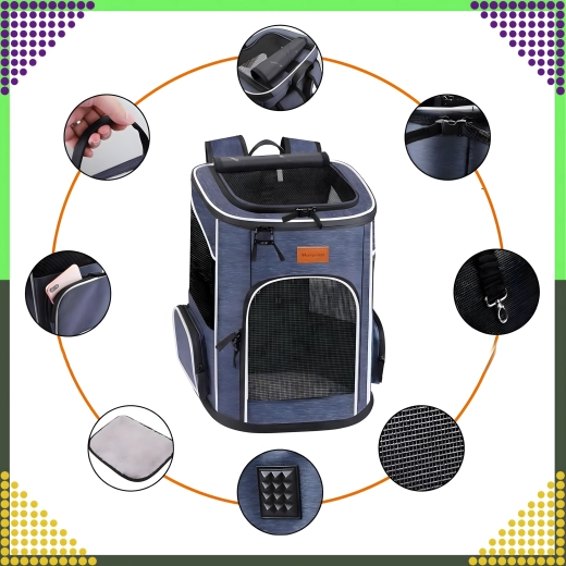 De moderne rugzak voor huisdieren combineert een duurzame constructie met comfort voor dier en eigenaar. Dankzij de gaasramen heeft je huisdier goed zicht en toegang tot frisse lucht, terwijl de verstelbare schouder- en borstriemen jou comfortabel dragen zonder druk op de rug.