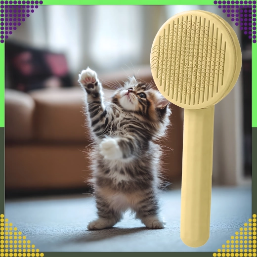 De ingebouwde knop voor snelle reiniging laat binnen een seconde vastgehouden haren uit de borstels los – zonder trekken en zonder rommel. De borstel is geschikt voor kortharige en langharige huisdieren, helpt effectief bij het uitkammen van klitten en vermindert de hoeveelheid haar in huis.