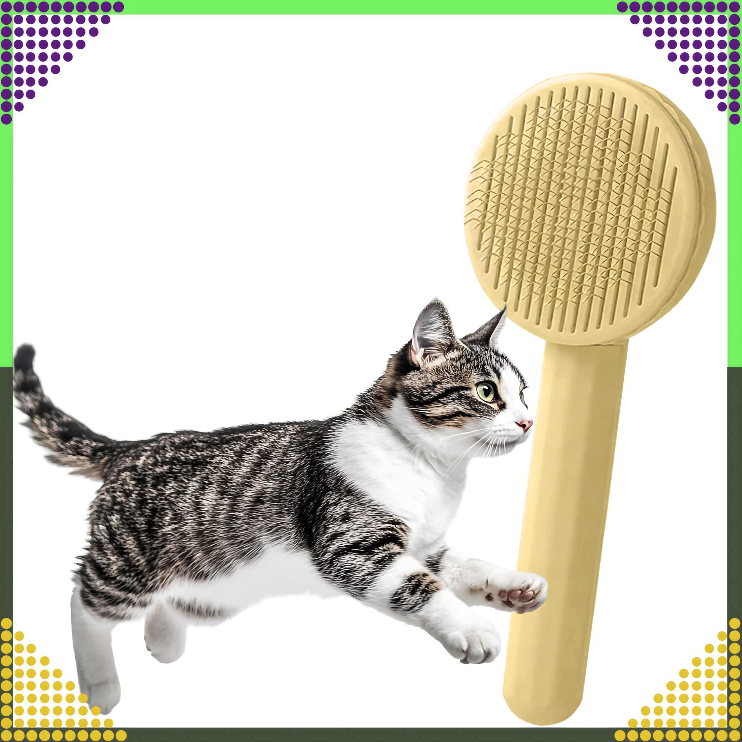 De zelfreinigende vachtborstel maakt de dagelijkse verzorging van hond en kat makkelijker. Dichte, fijne draadpinnen met afgeronde uiteinden dringen zacht door de vacht, verwijderen losse haren en masseren licht de huid, wat glans en een gezonde vacht bevordert. De ergonomische handgreep ligt comfortabel in de hand en maakt nauwkeurig borstelen zonder moeite mogelijk.