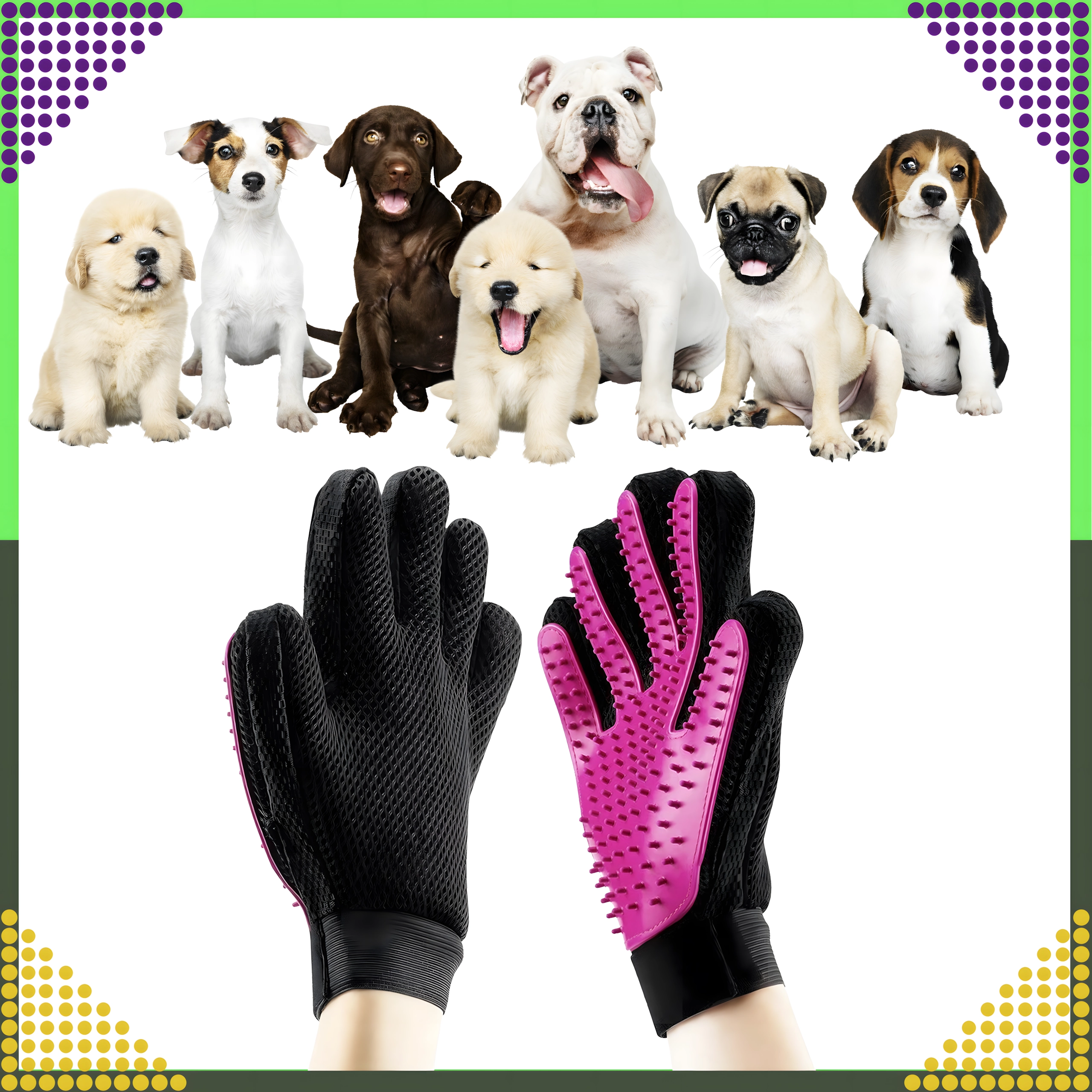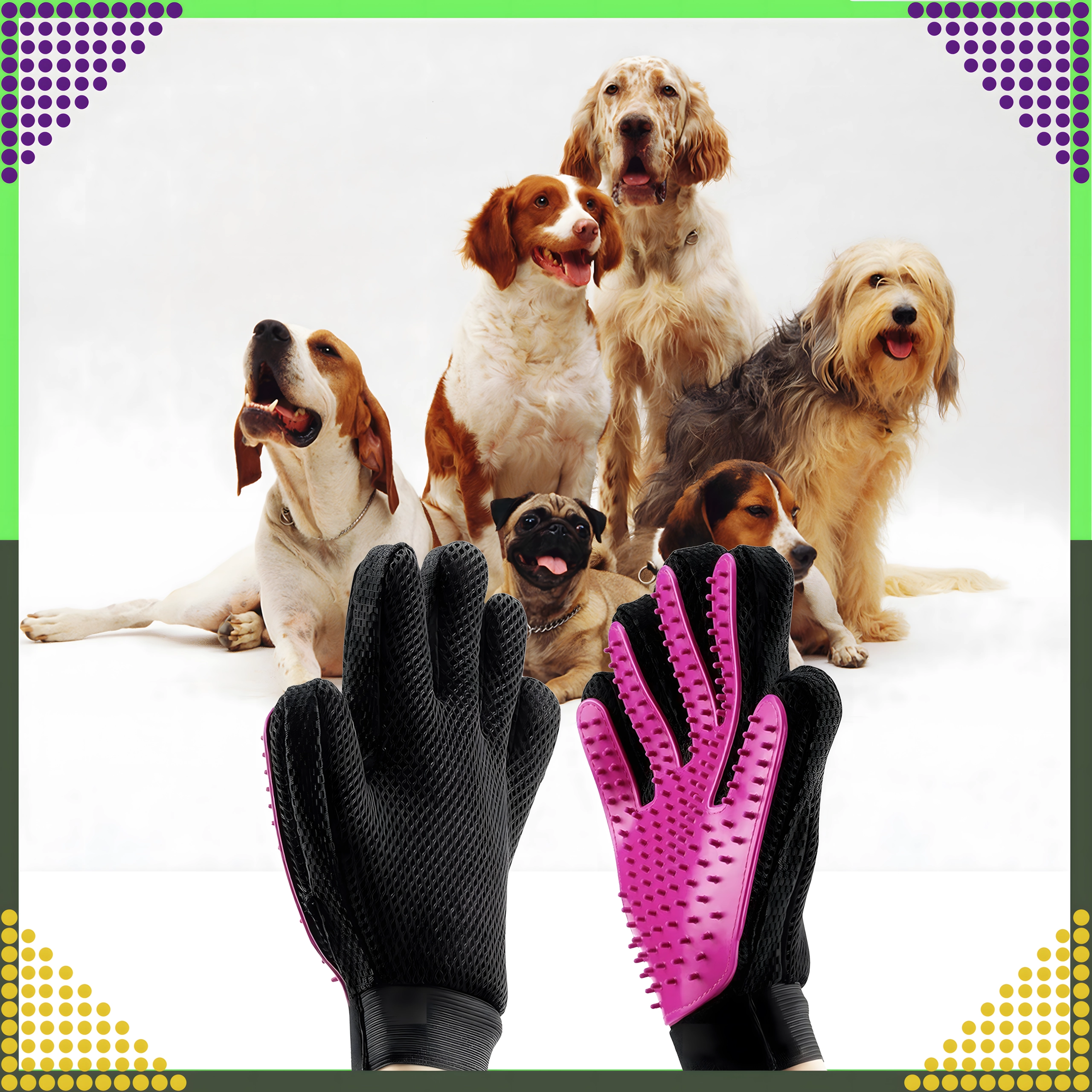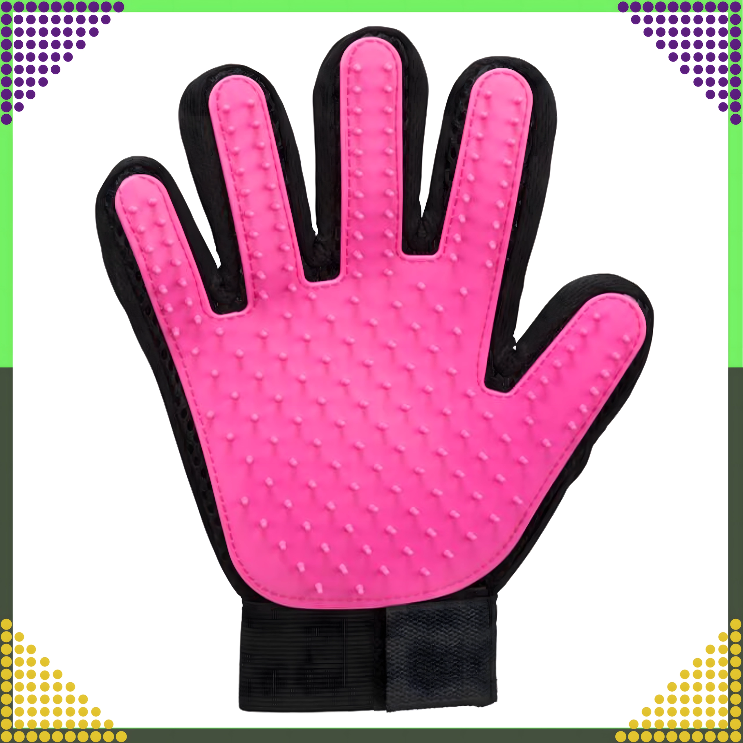 Ontdek een eenvoudige manier om de vacht van je huisdier schoon en glanzend te houden, zonder stress. De handschoen met zachte siliconen puntjes vangt losse haren effectief op tijdens het aaien en geeft tegelijk een prettige massage die de doorbloeding van de huid stimuleert en de natuurlijke glans van de vacht ondersteunt.