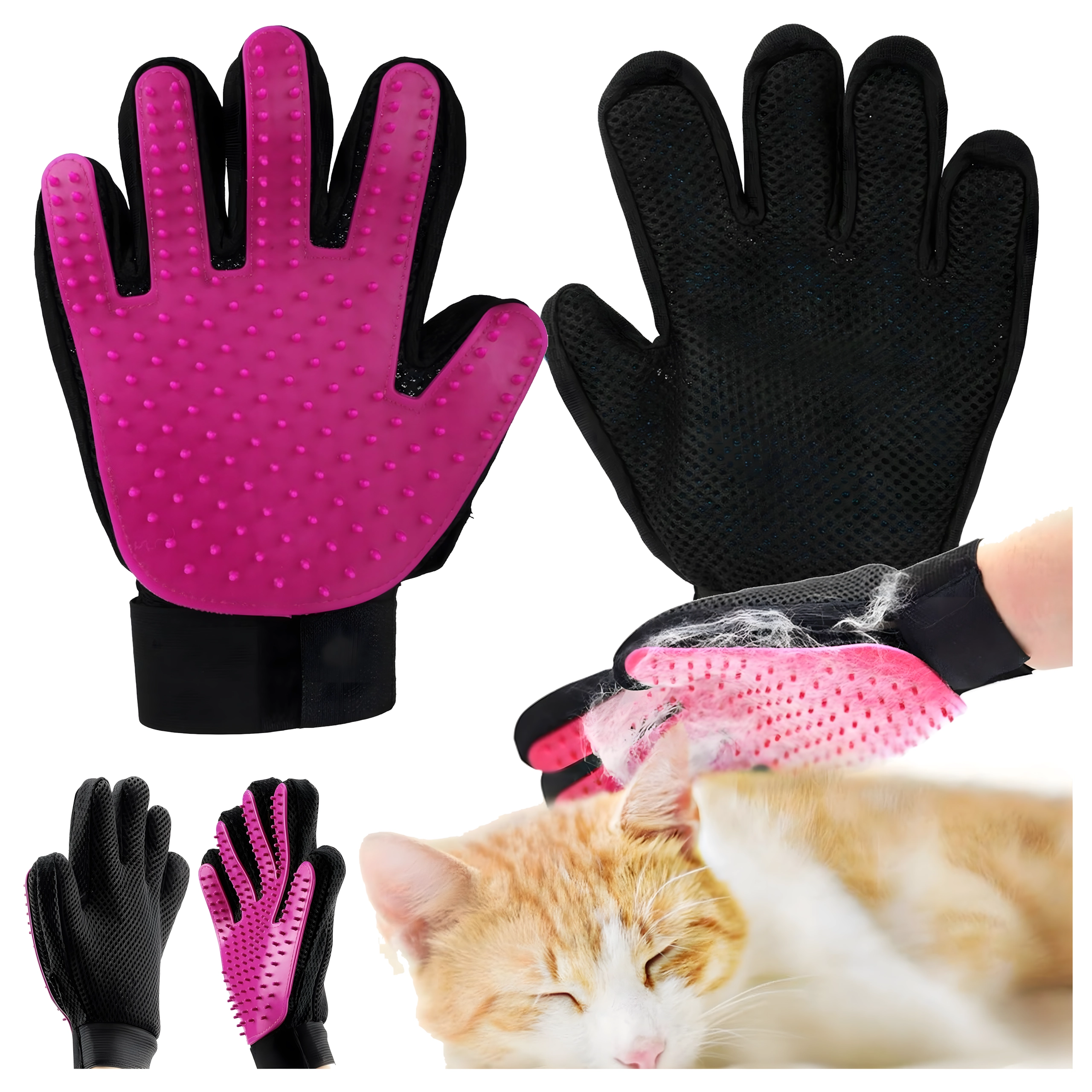 Zachte siliconen puntjes verzamelen losse haren voorzichtig in plukjes zonder trekken of huidirritatie. Ideaal voor dagelijkse verzorging en gevoelige huisdieren.