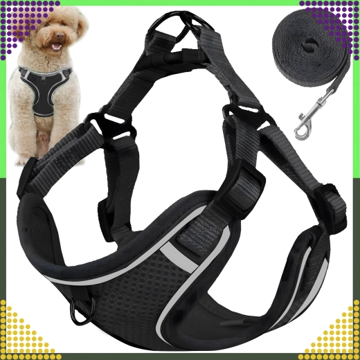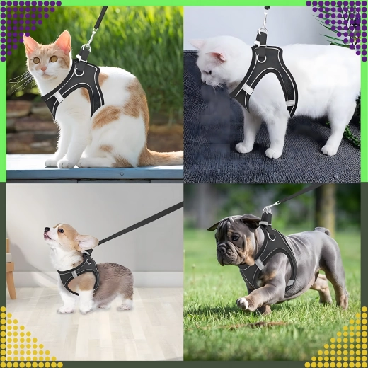 Licht en comfortabel harnas voor uw huisdier van ademende, zachte mesh met reflecterende elementen voor extra veiligheid. Dankzij het niet-trekkende ontwerp en de sluiting op de rug is het gemakkelijk aan te trekken en wordt druk op de nek beperkt. Inclusief lijn van 150 cm.
