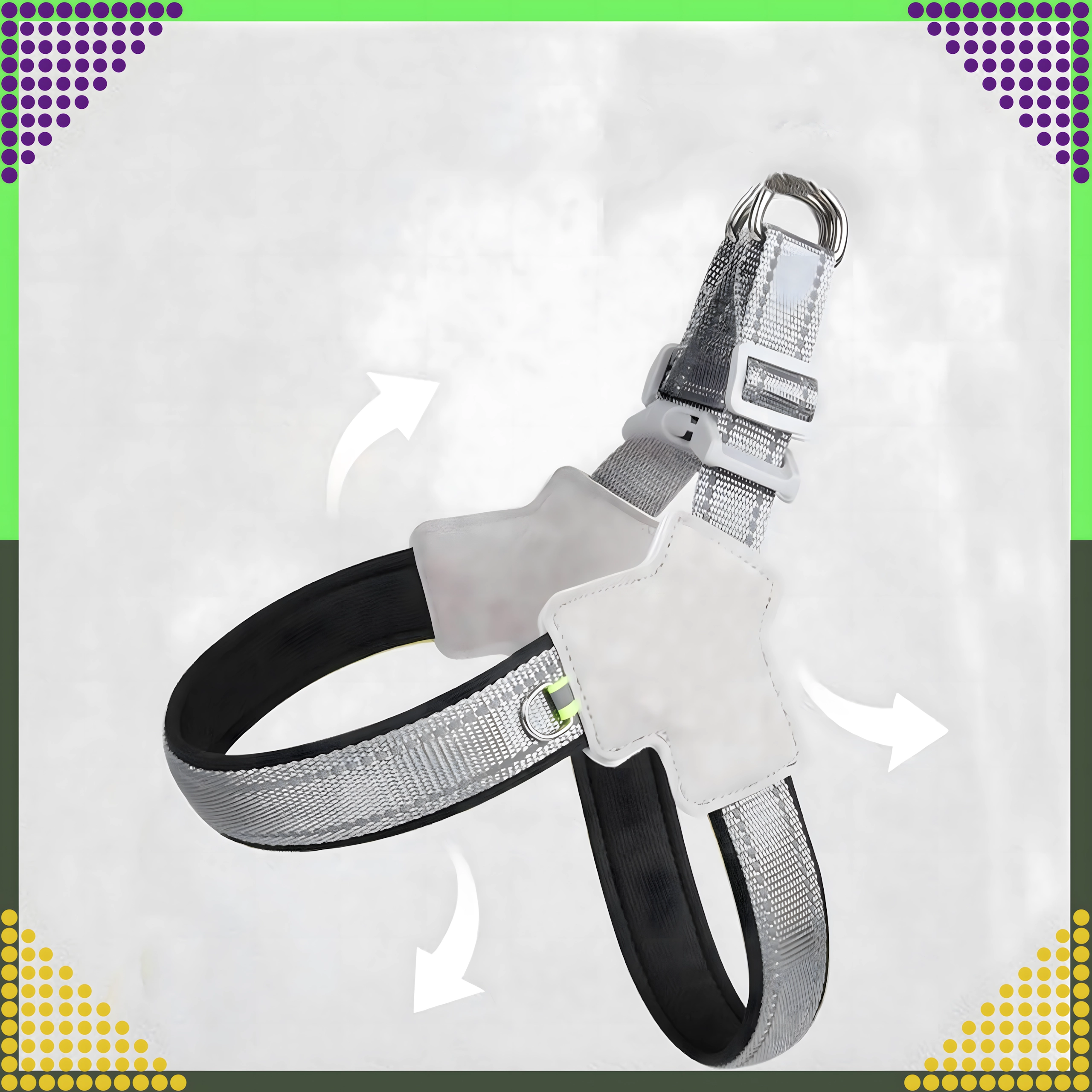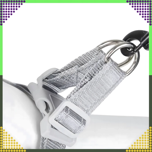 Het tuigje is gemaakt van duurzame, slijtvaste materialen met een zachte voering voor comfort de hele dag. Reflecterende elementen zorgen voor betere zichtbaarheid na het donker. Volledig verstelbare banden en een veiligheidssluiting met dubbele vergrendeling houden alles stevig op zijn plaats, terwijl dubbele metalen D-ringen een zekere bevestiging van de lijn bieden.