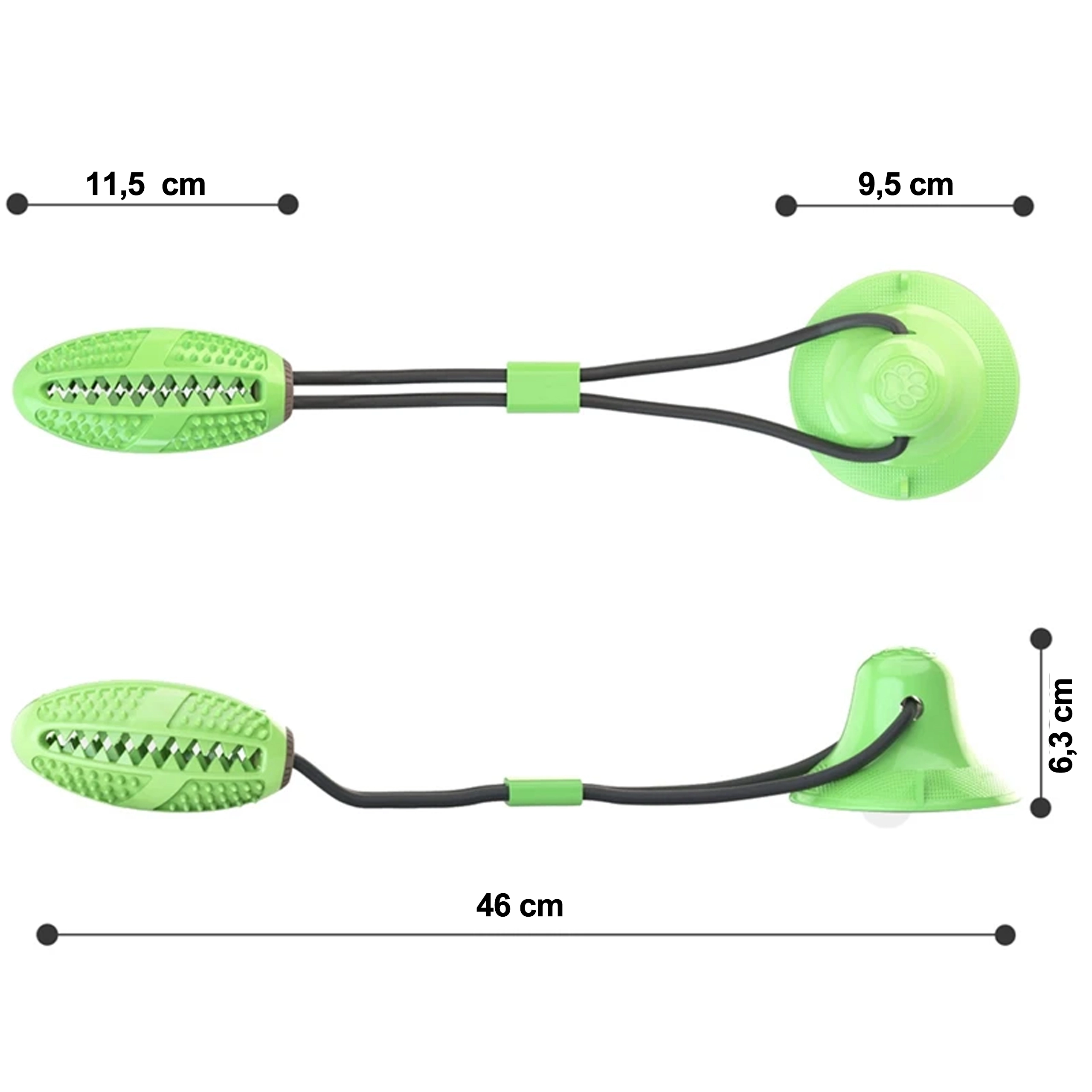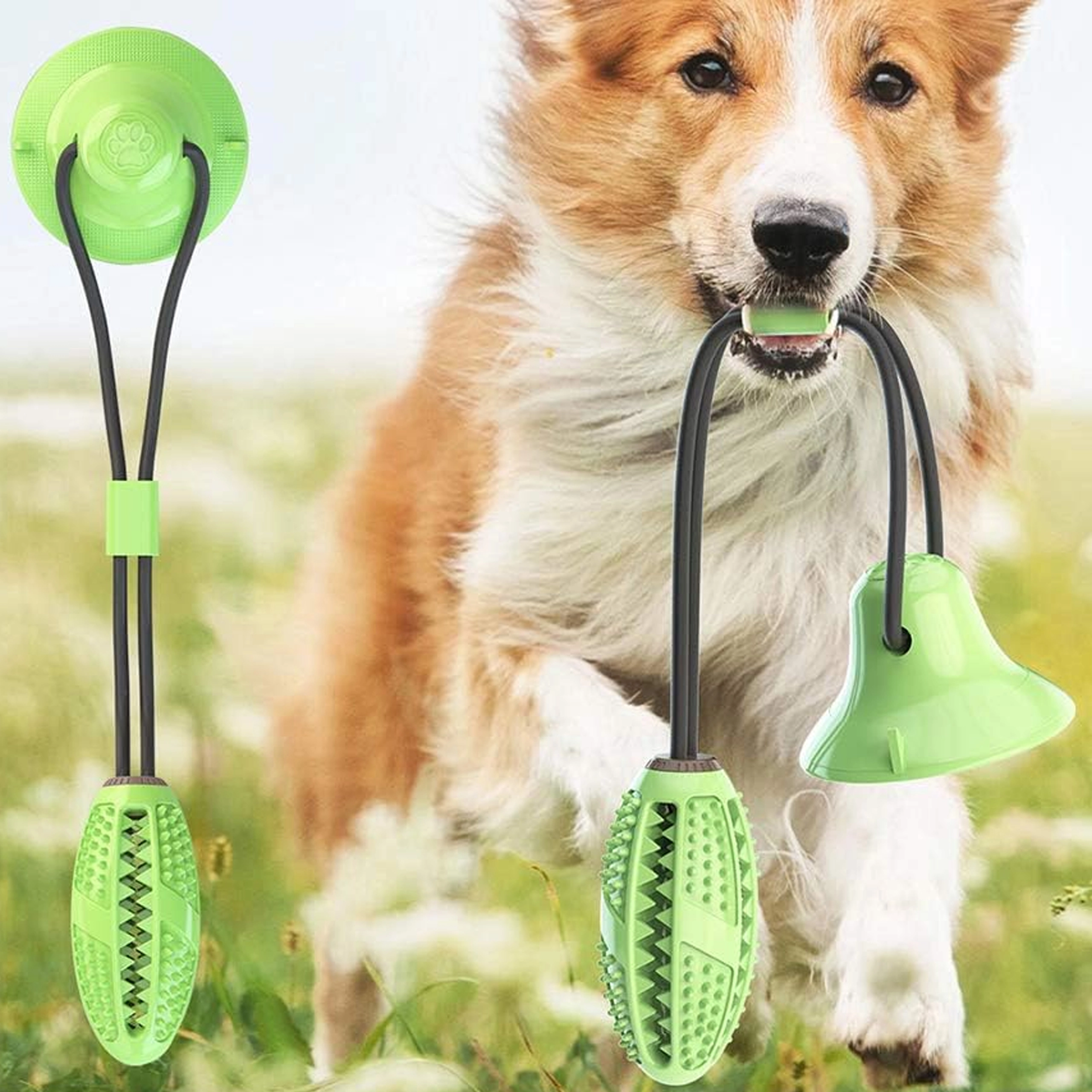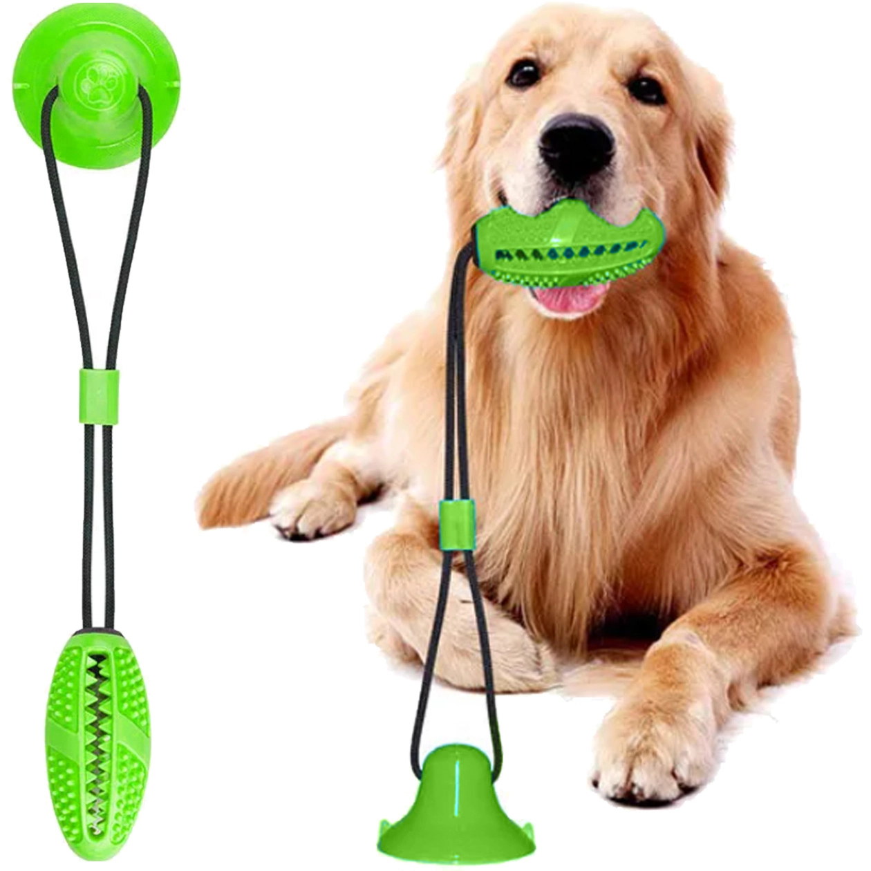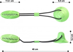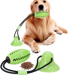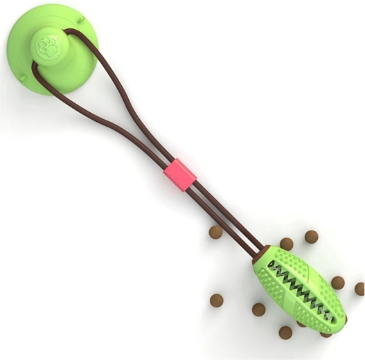 Het interactieve kauwspeelgoed met zuignap is ontworpen voor de natuurlijke kauwbehoefte en mentale stimulatie van de hond. De sterke zuignap hecht op gladde oppervlakken en maakt zelfstandig trekken en sleuren mogelijk, terwijl het duurzame touw en de flexibele verbinding zorgen voor veilig en langdurig speelplezier. Het getextureerde oppervlak met puntjes en ribbels reinigt de tanden, masseert het tandvlees en helpt tandsteen te verminderen tijdens het kauwen.