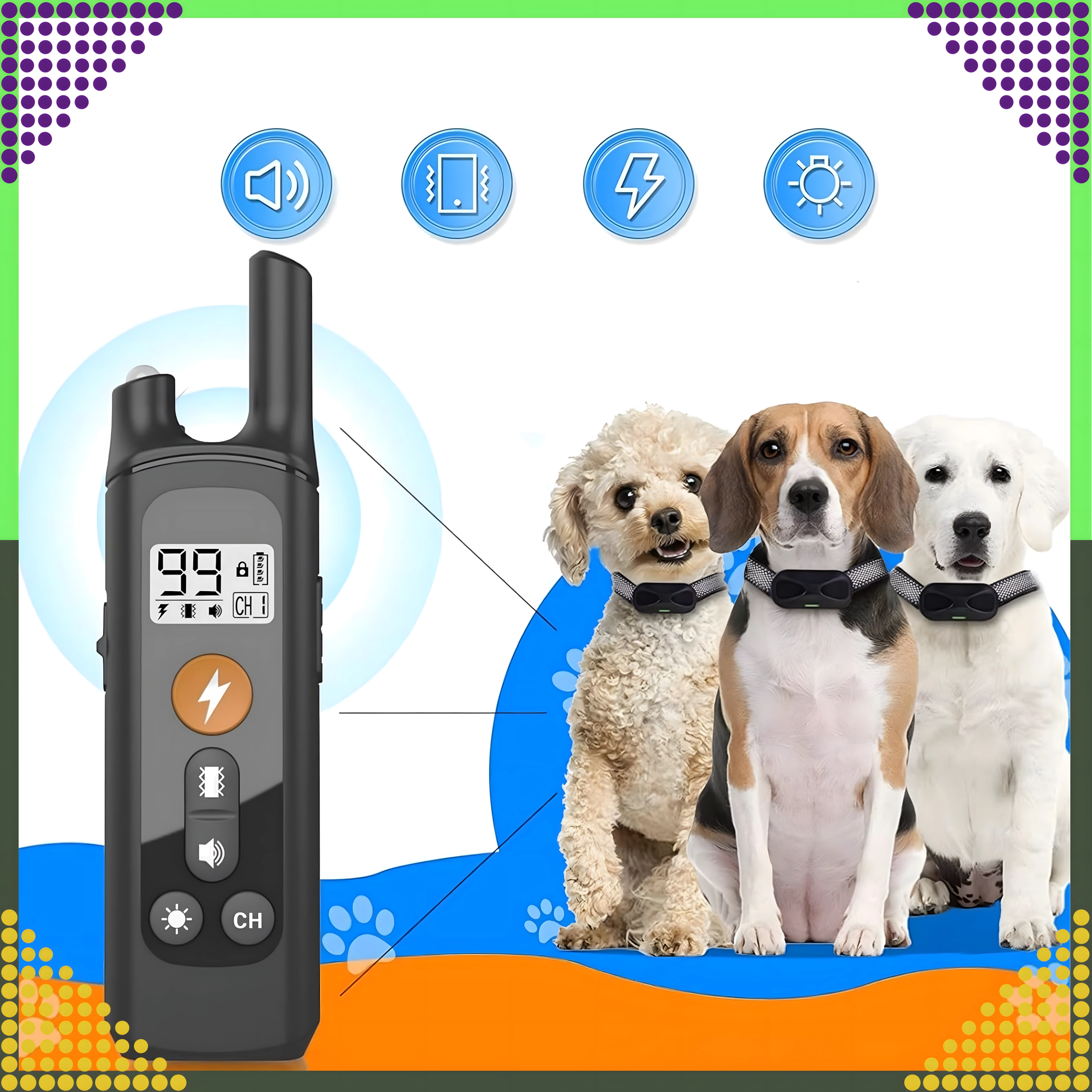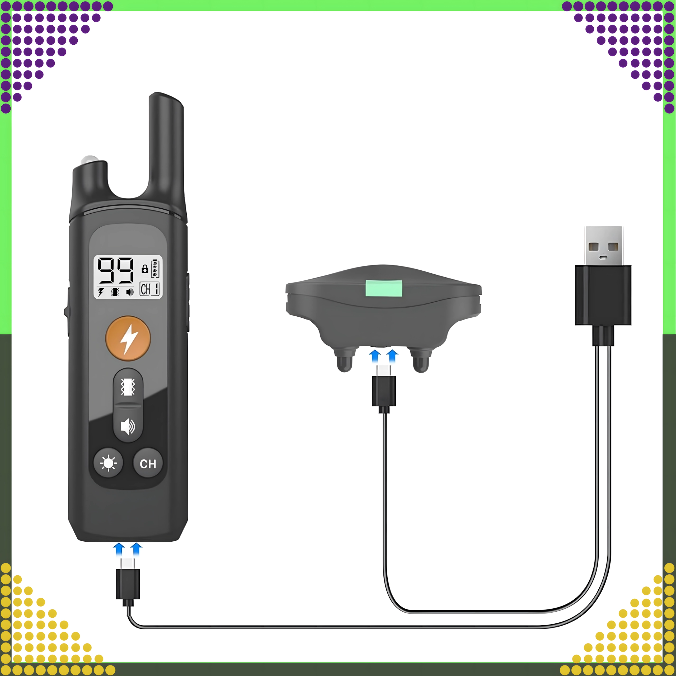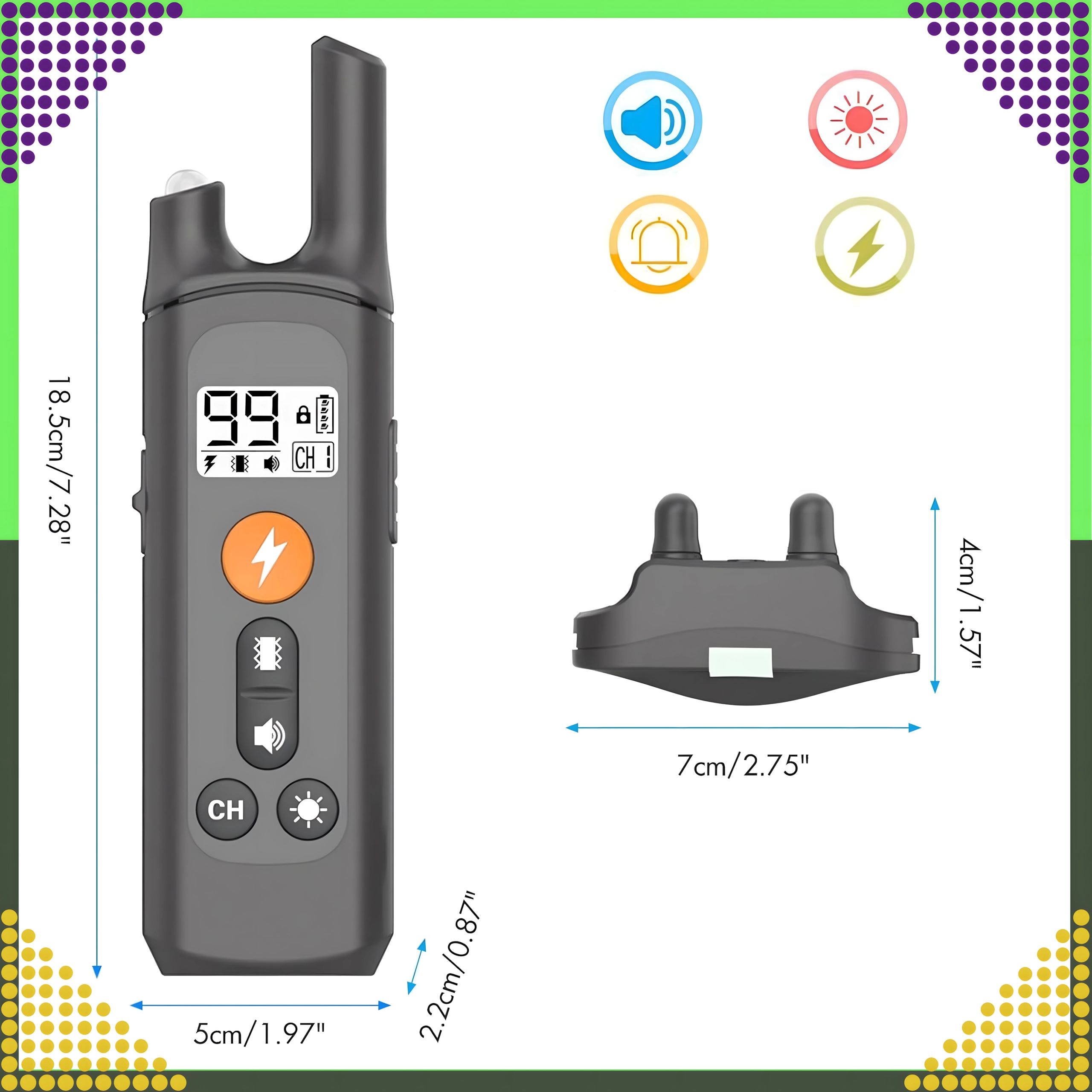 Stroomimpuls, vibratie, licht en geluid helpen blaffen, weglopen of springen te corrigeren. Het niveau kan worden aangepast aan de gevoeligheid van de hond.