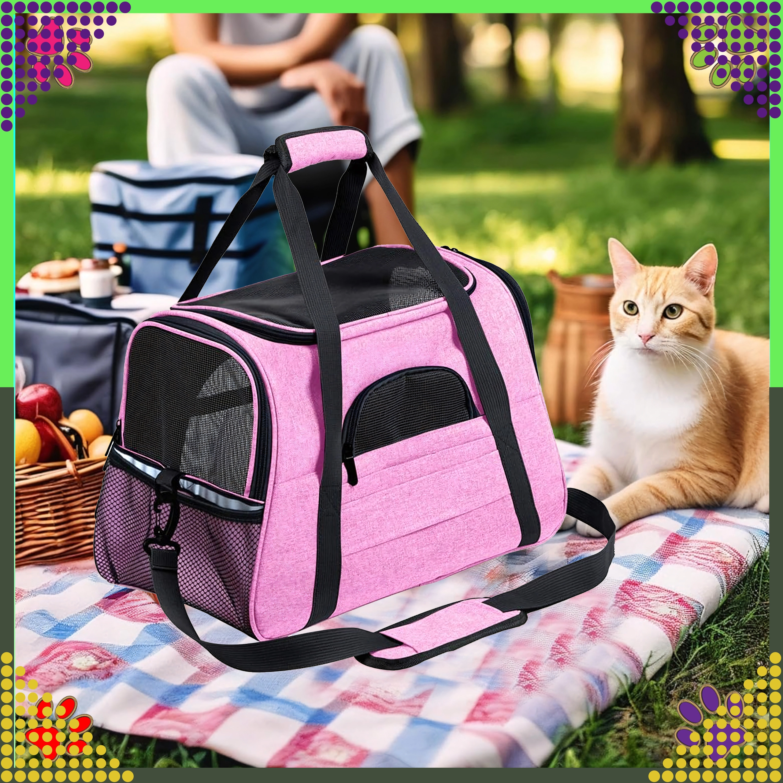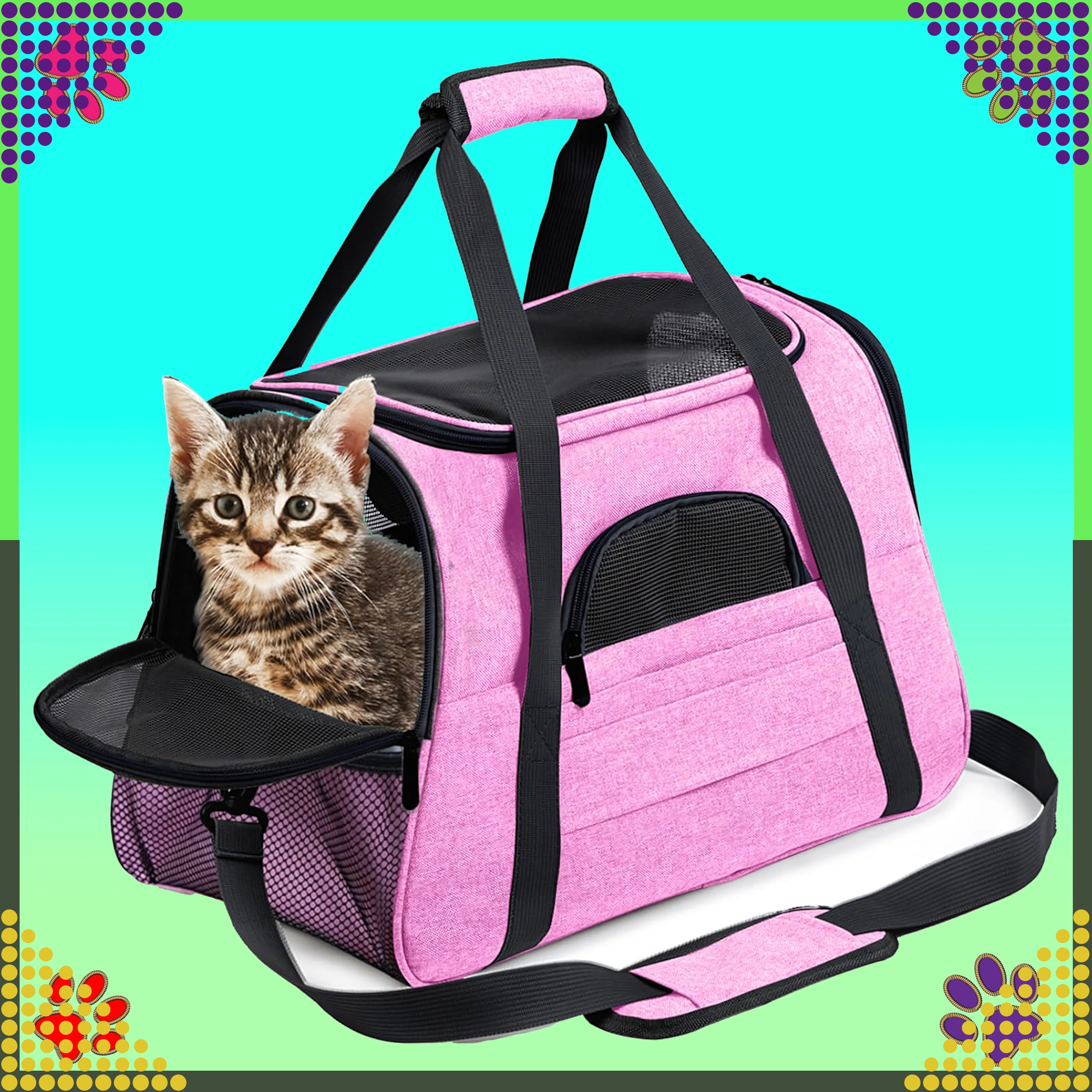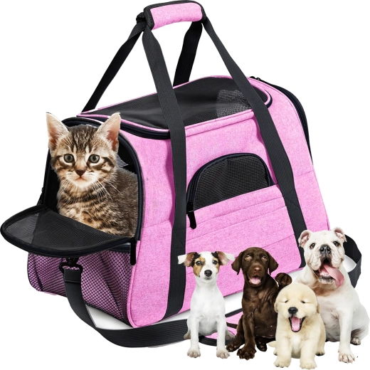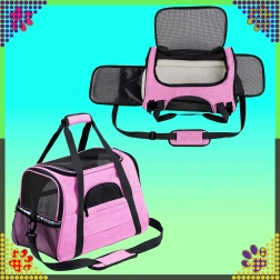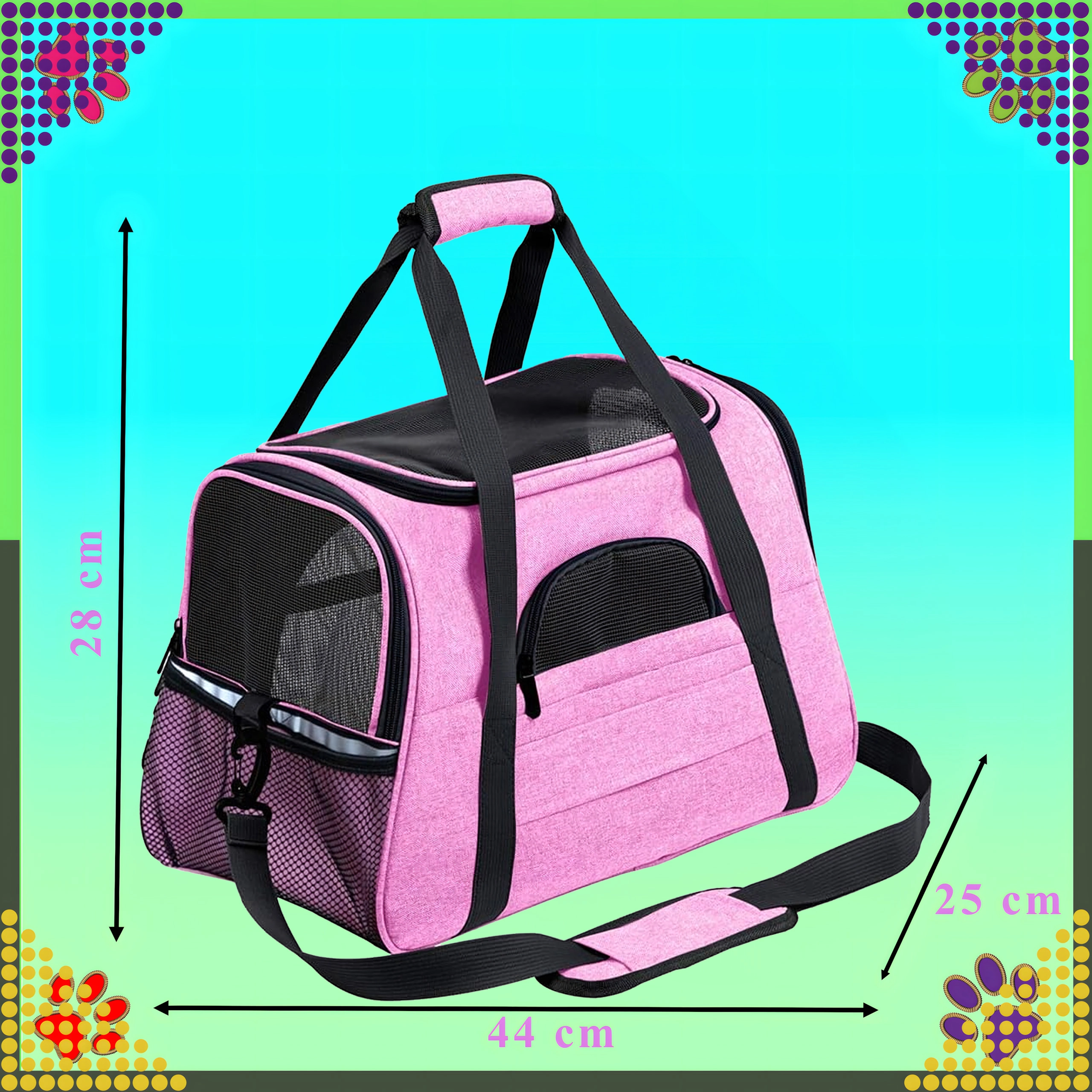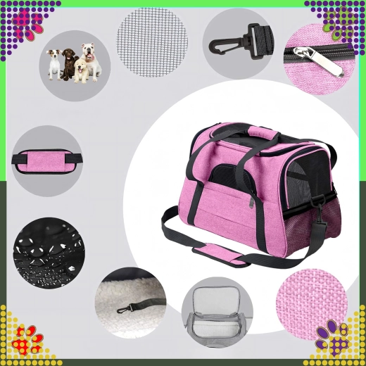 De praktische draagtas voor dieren combineert comfort, veiligheid en eenvoudig onderhoud. Dankzij de hoogwaardige polyester is hij vlek- en slijtvast, neemt hij geen onaangename geuren op en behoudt hij zijn uiterlijk, zelfs bij veelvuldig gebruik. De roze uitvoering zal liefhebbers van stijl aanspreken en biedt het dier een rustige omgeving tijdens de reis.