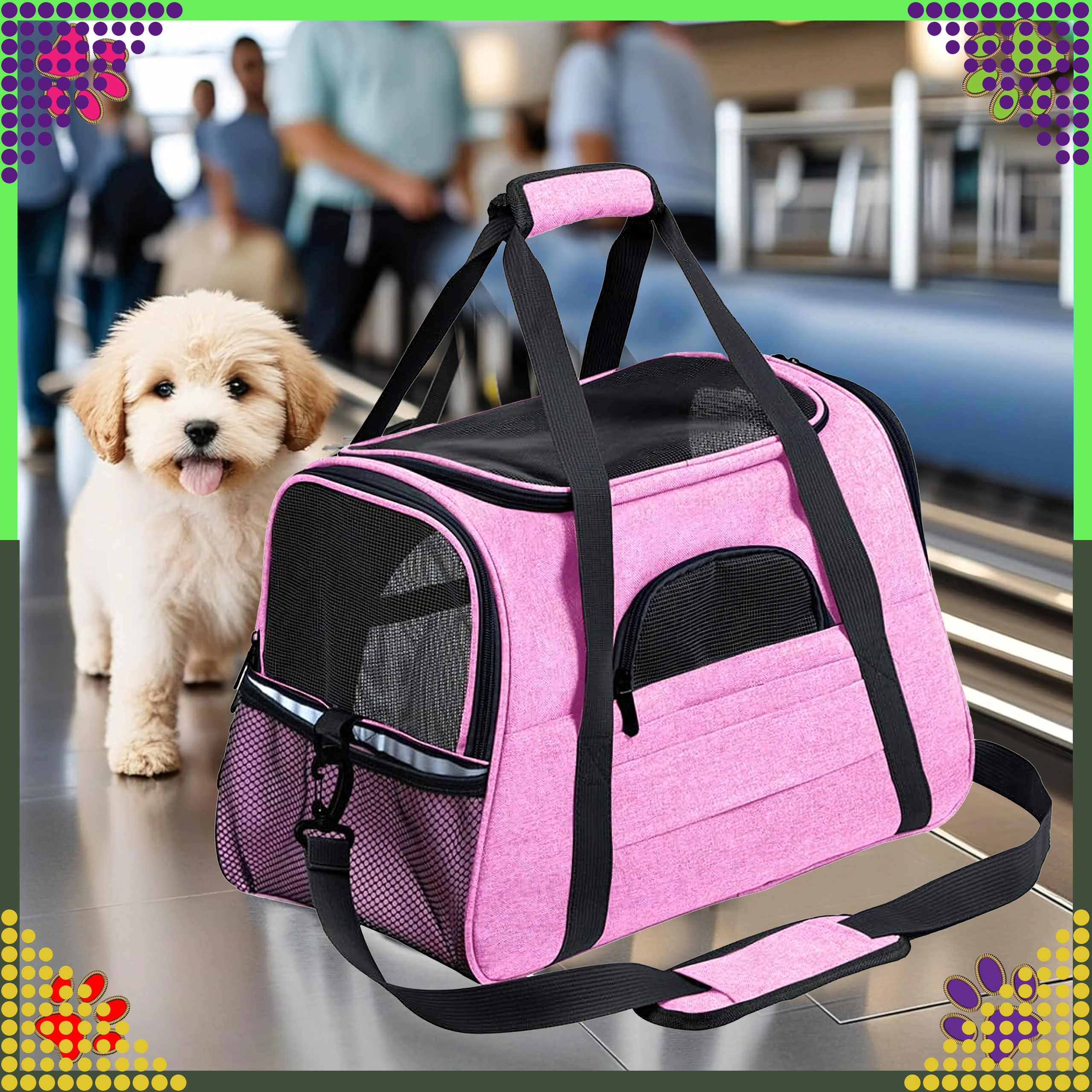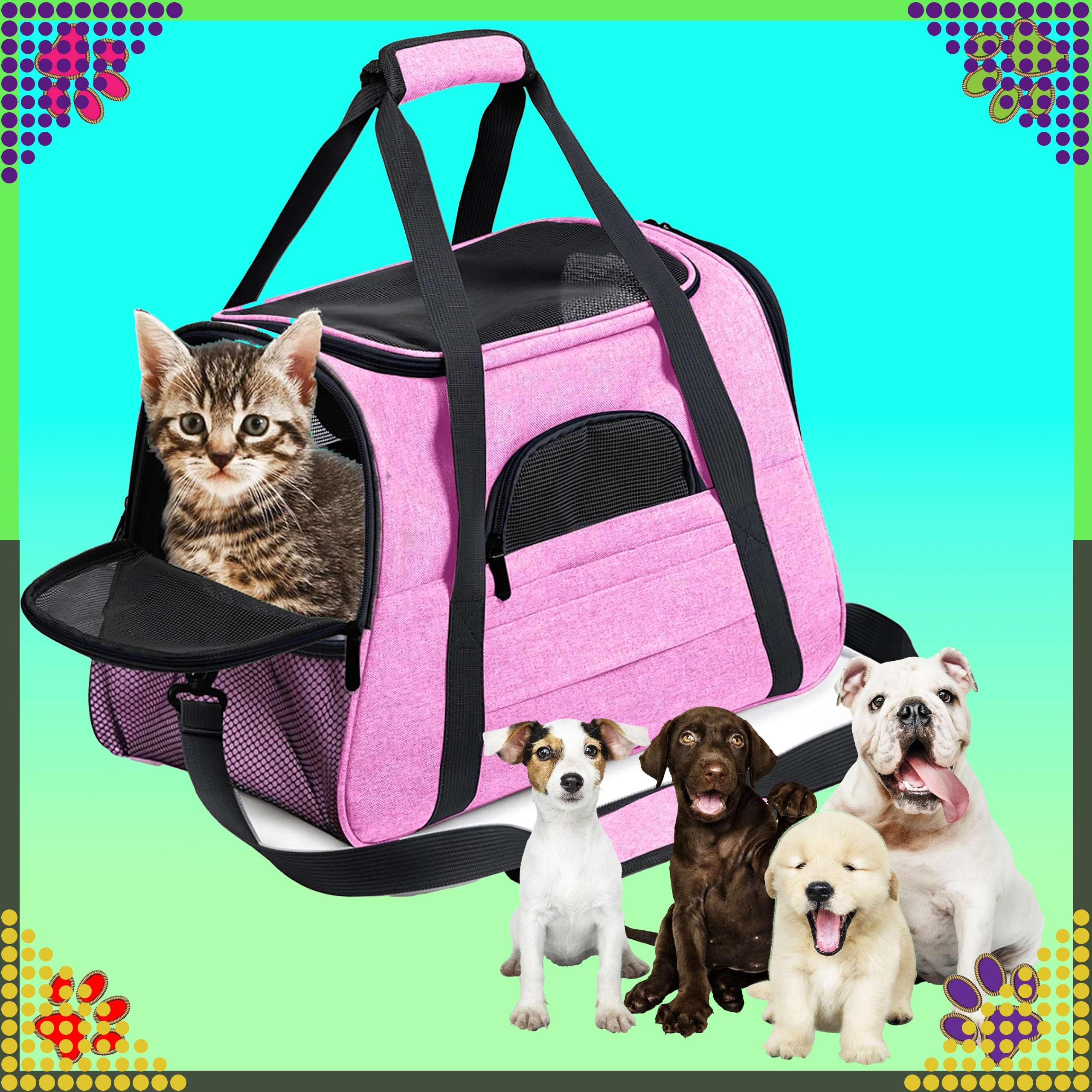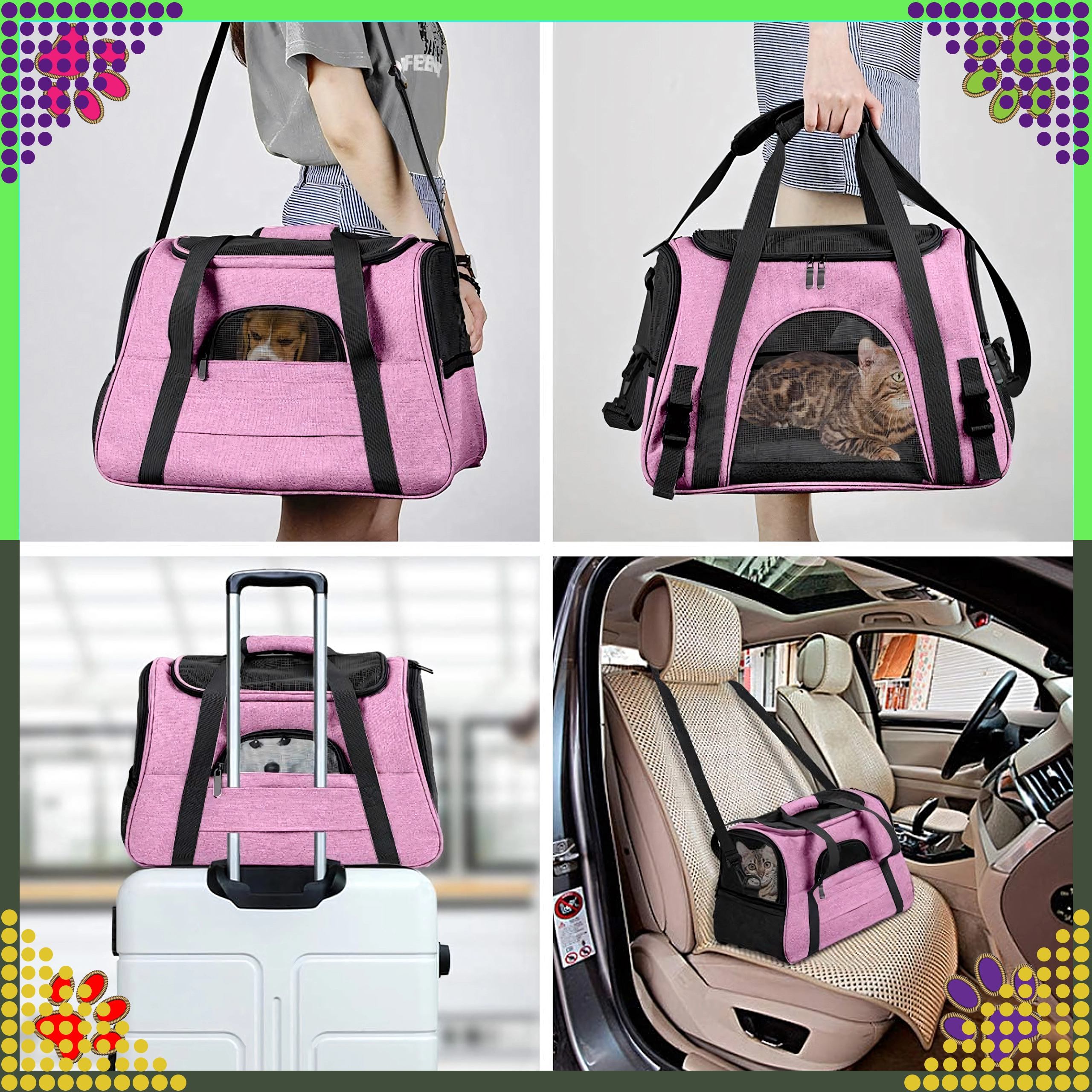 De praktische draagtas voor dieren combineert comfort, veiligheid en eenvoudig onderhoud. Dankzij de hoogwaardige polyester is hij vlek- en slijtvast, neemt hij geen onaangename geuren op en behoudt hij zijn uiterlijk, zelfs bij veelvuldig gebruik. De roze uitvoering zal liefhebbers van stijl aanspreken en biedt het dier een rustige omgeving tijdens de reis.