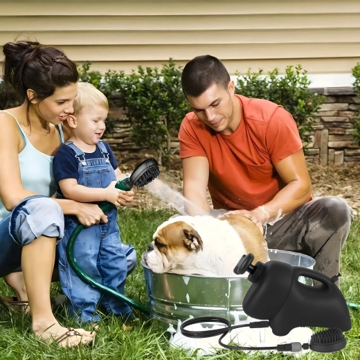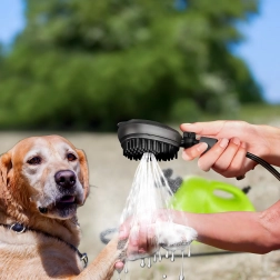 Neem hem overal mee naartoe – in de tuin, op vakantie of na een wandeling in het park. De compacte behuizing met handgreep, de duurzame slang en de praktische borstelkop maken het tot een universele mobiele douche voor de reinheid en het comfort van je huisdier.
