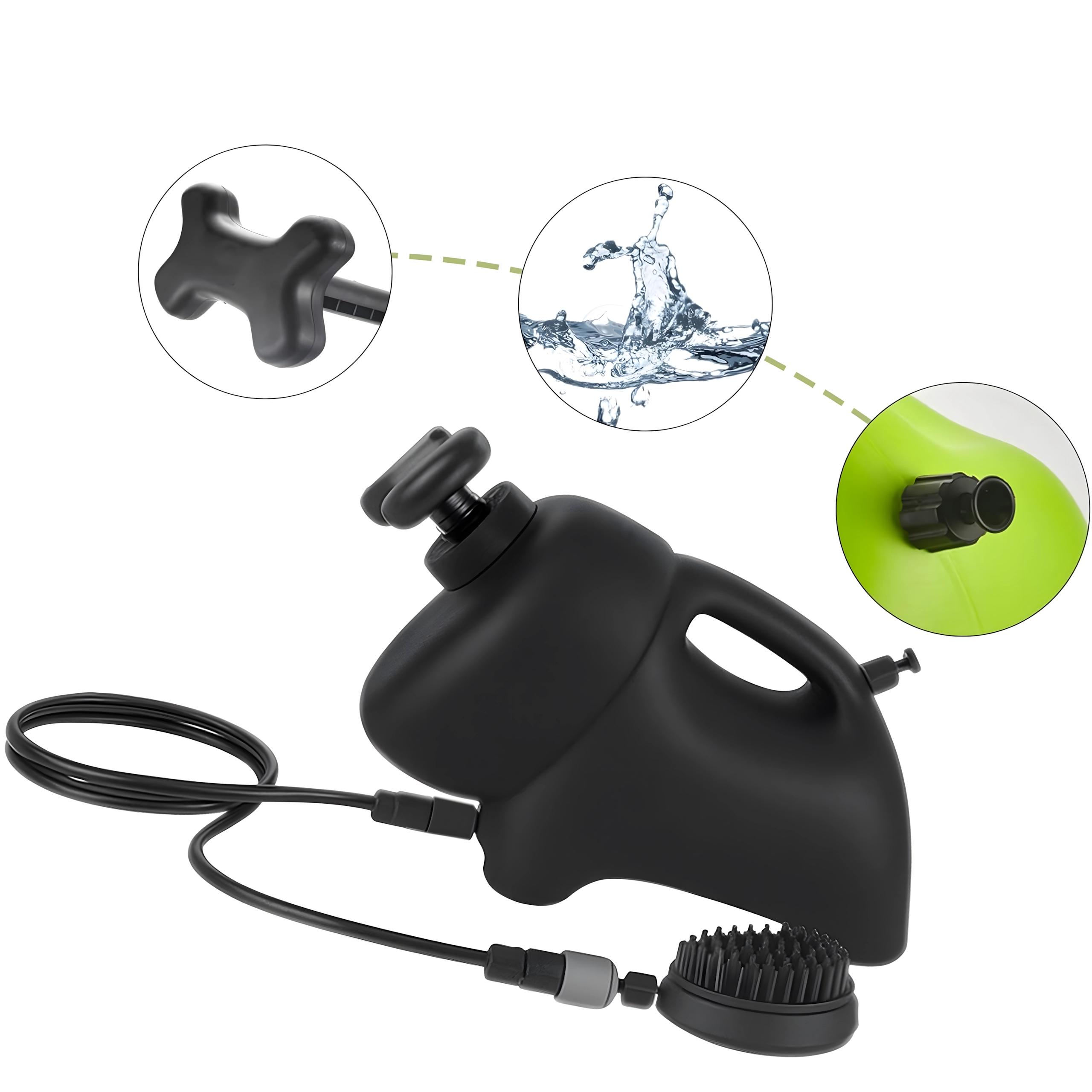 Dankzij de thermisch geïsoleerde tank blijft het water tot 2,5 uur op een aangename temperatuur. De lange slang en ergonomische handgreep zorgen voor eenvoudige straalregeling en comfortabel wassen van pootjes, buik en dichte vacht. Het apparaat werkt zonder elektriciteit, is stil en is niet alleen ideaal voor huisdieren, maar ook voor het snel afspoelen van fietsen, kinderwagens en schoeisel.
