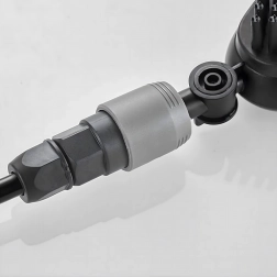 Licht tanksysteem met geïntegreerd handvat en snelkoppelingen voor comfortabel gebruik buiten en onderweg, zonder stroomvoorziening.