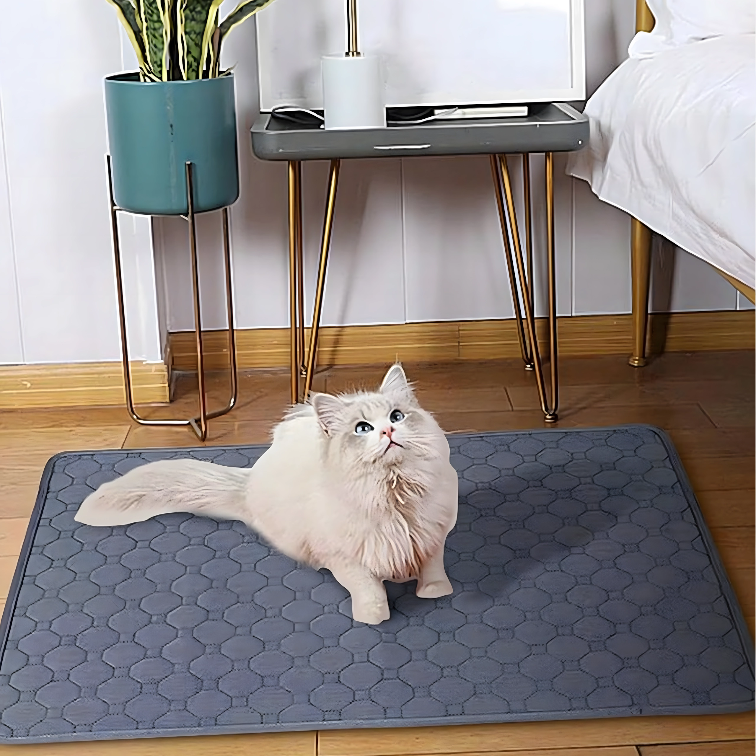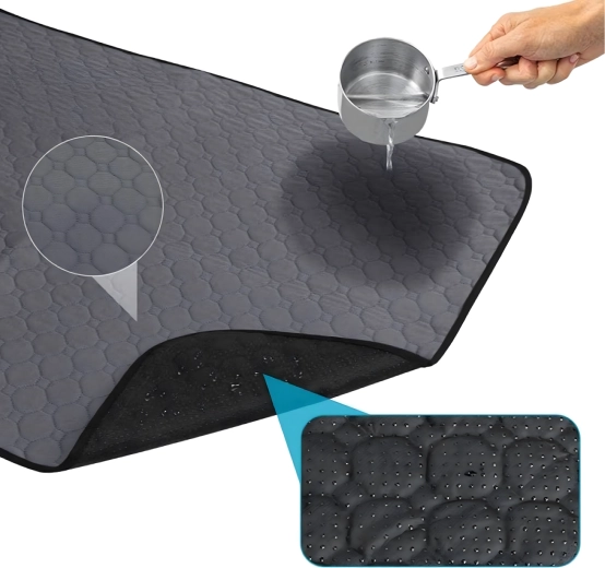 De herbruikbare mat voor honden en katten combineert comfort, hygiëne en bescherming van vloeren en meubels. De meerlaagse constructie neemt vocht snel op en laat het niet door naar de vloer, terwijl het zachte bovenmateriaal prettig is om op te liggen en voor dagelijks gebruik.