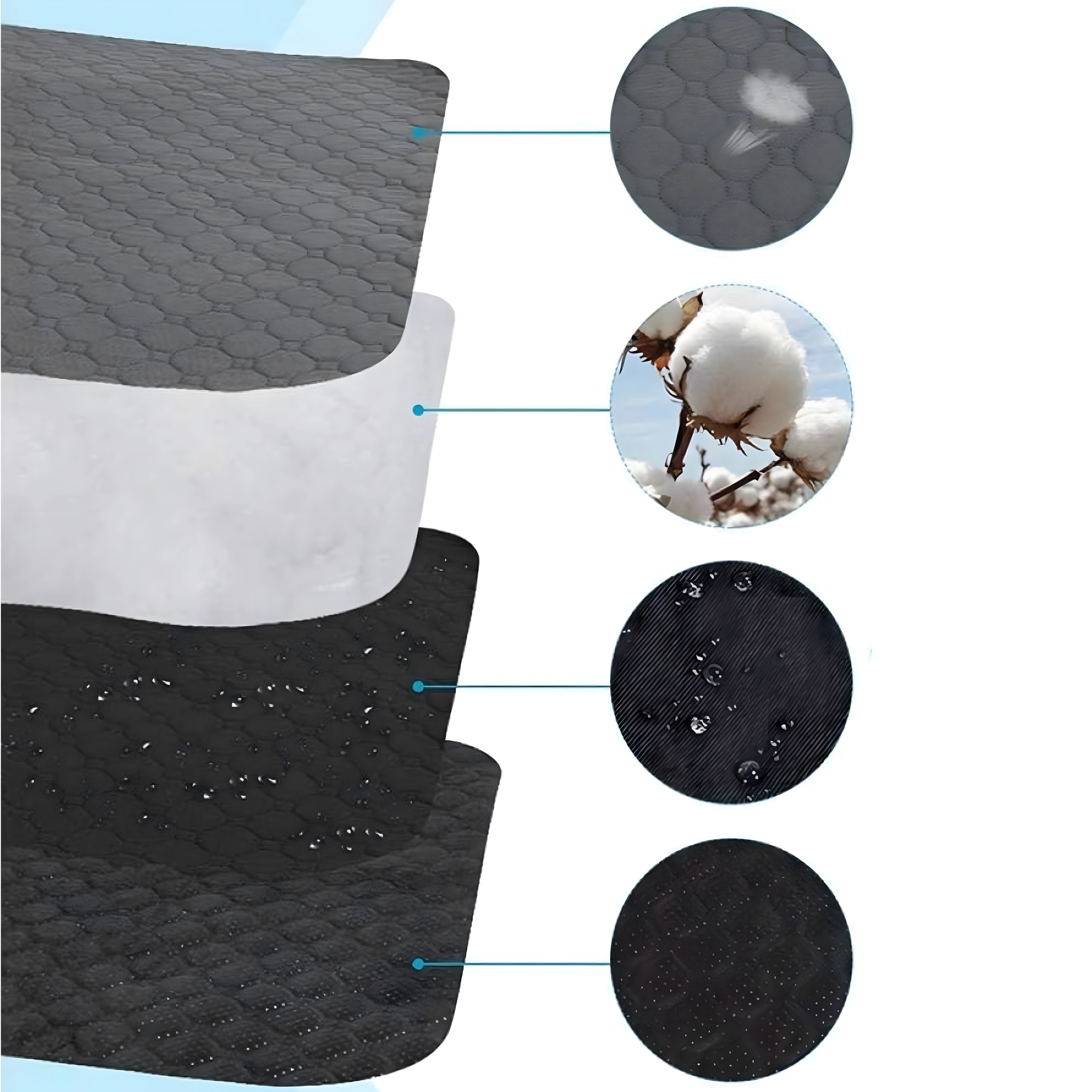De speciale meerlagige structuur neemt vocht snel op en voorkomt doorlekken naar de vloer of meubels. Ideaal voor zindelijkheidstraining en dagelijkse bescherming van het huishouden.