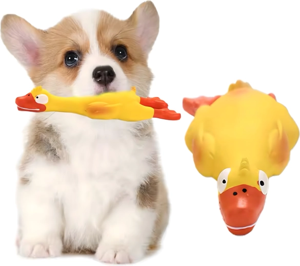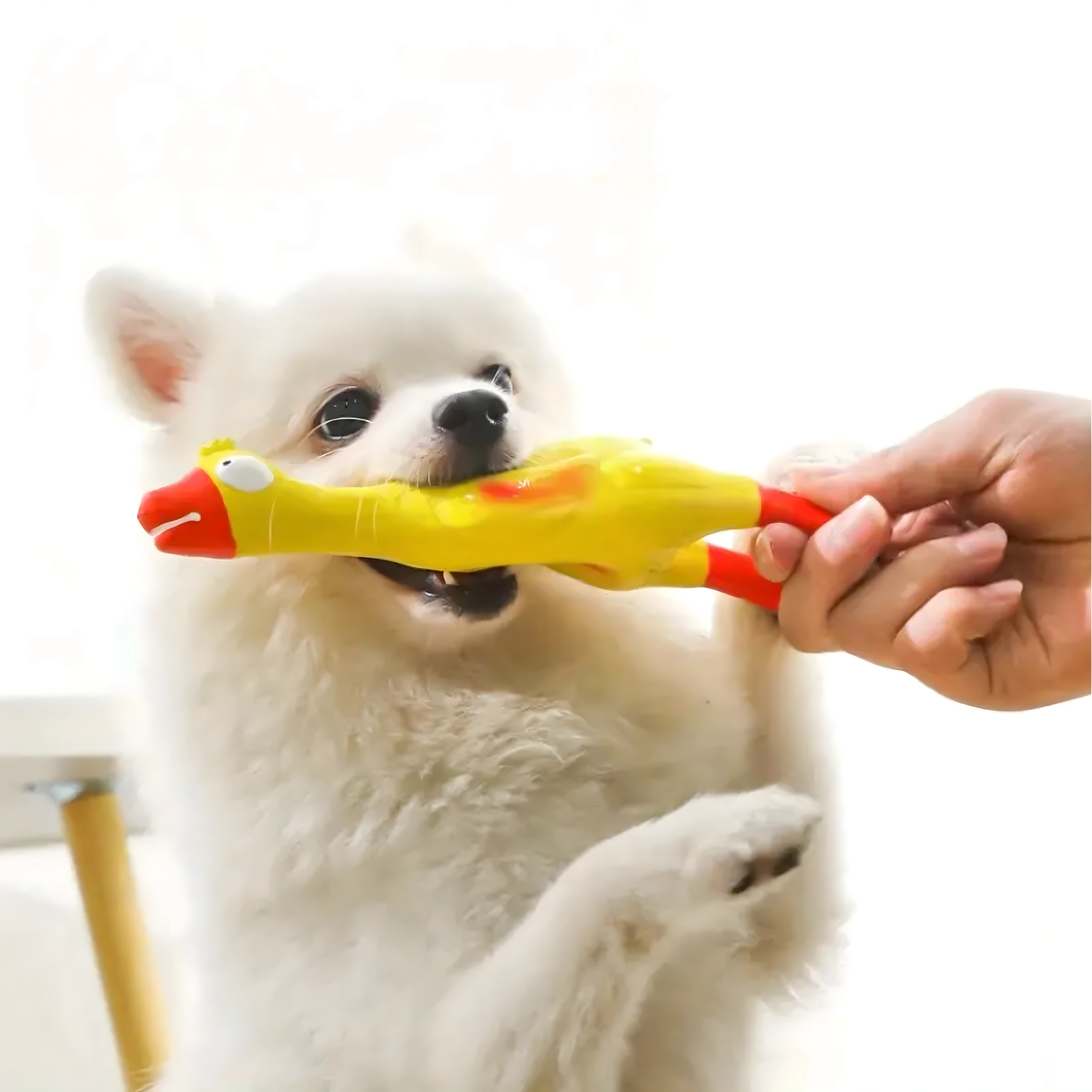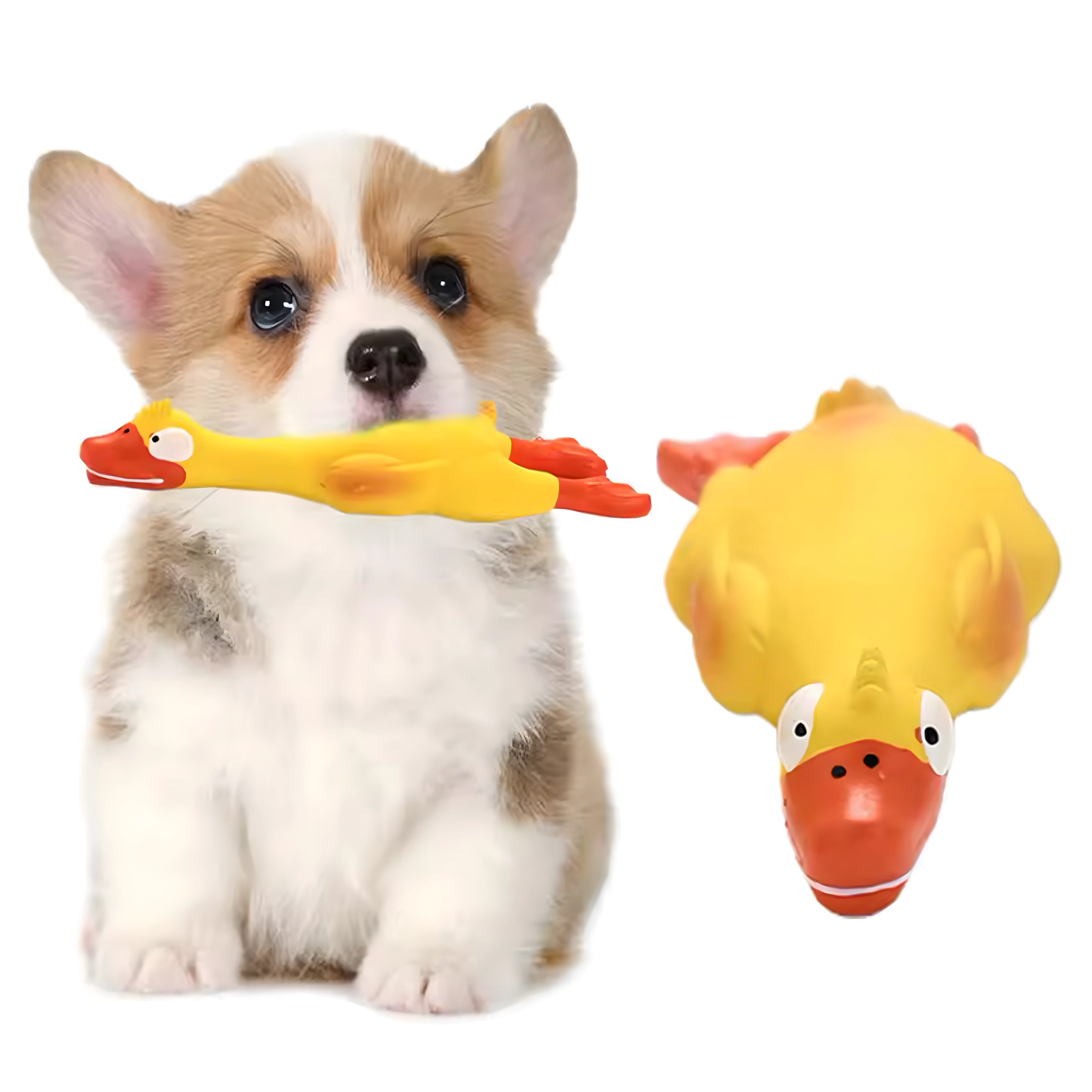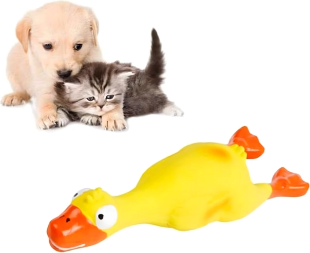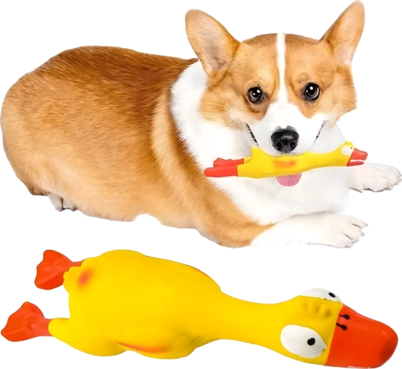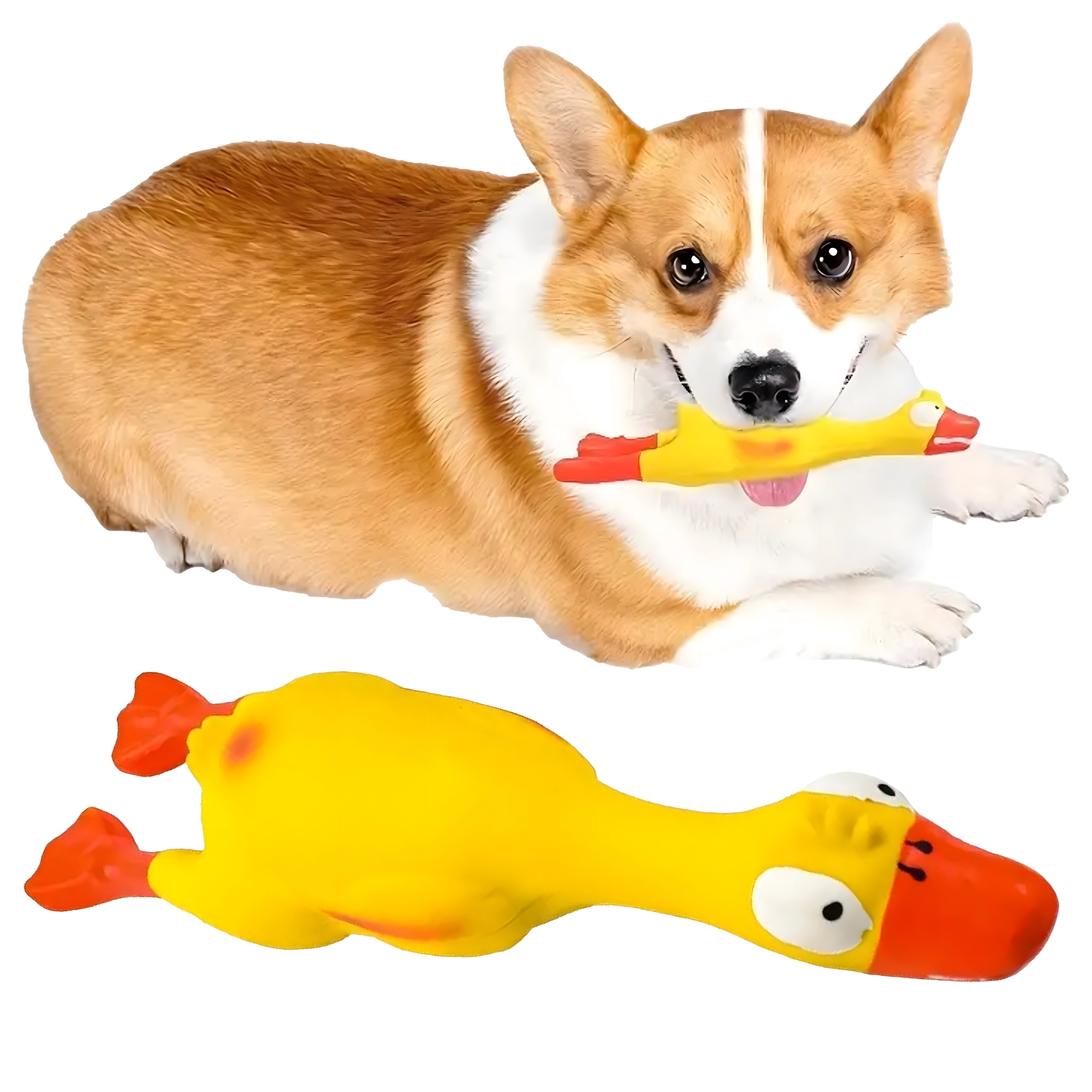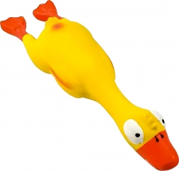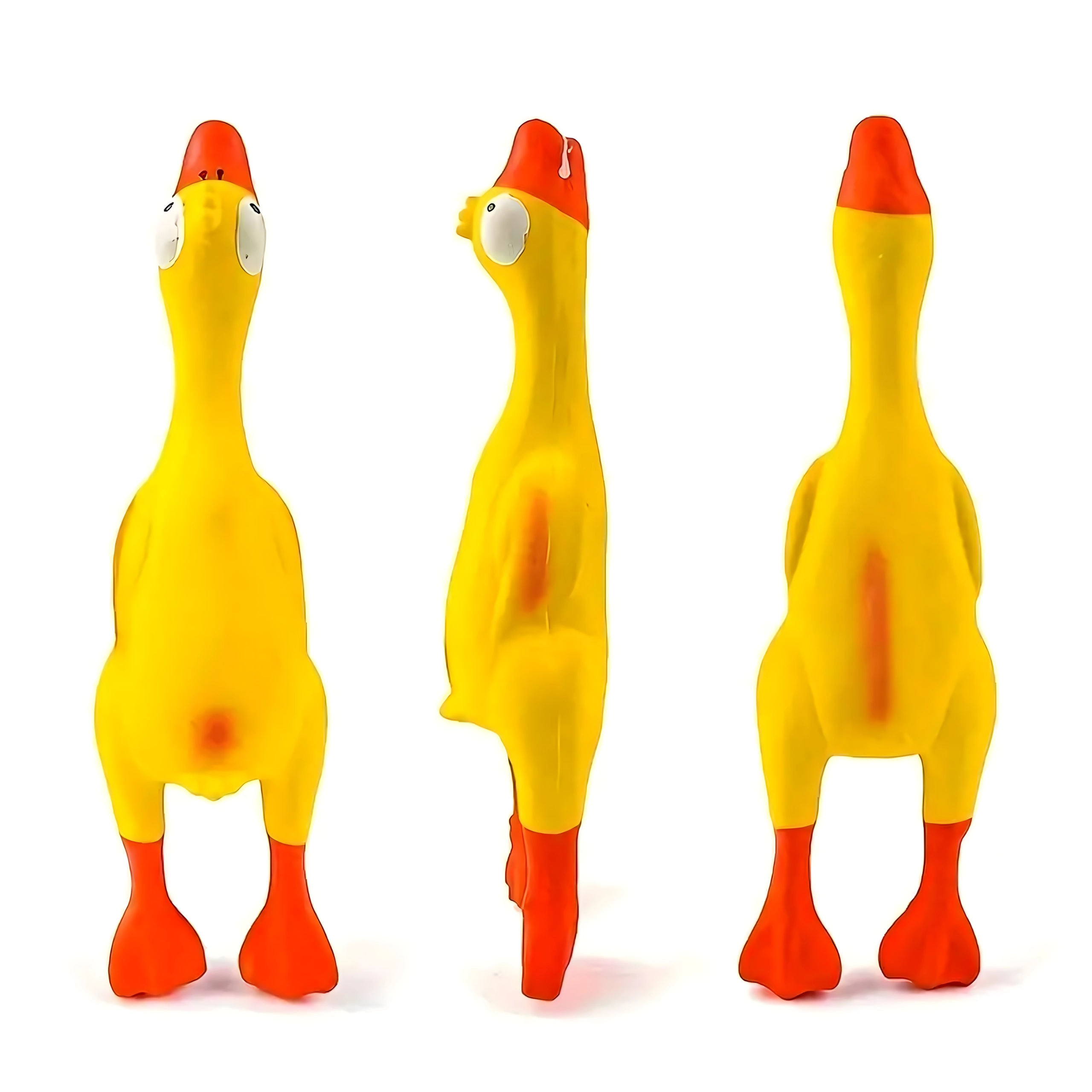 De piepende rubberen kip van 22 cm is een veelzijdig speeltje voor dagelijks plezier, binnen en buiten. De felgele kleur met oranje snavel en pootjes is goed zichtbaar in het gras en op de vloer, en de pieper binnenin moedigt elk huisdier betrouwbaar aan om te spelen.