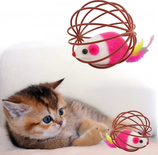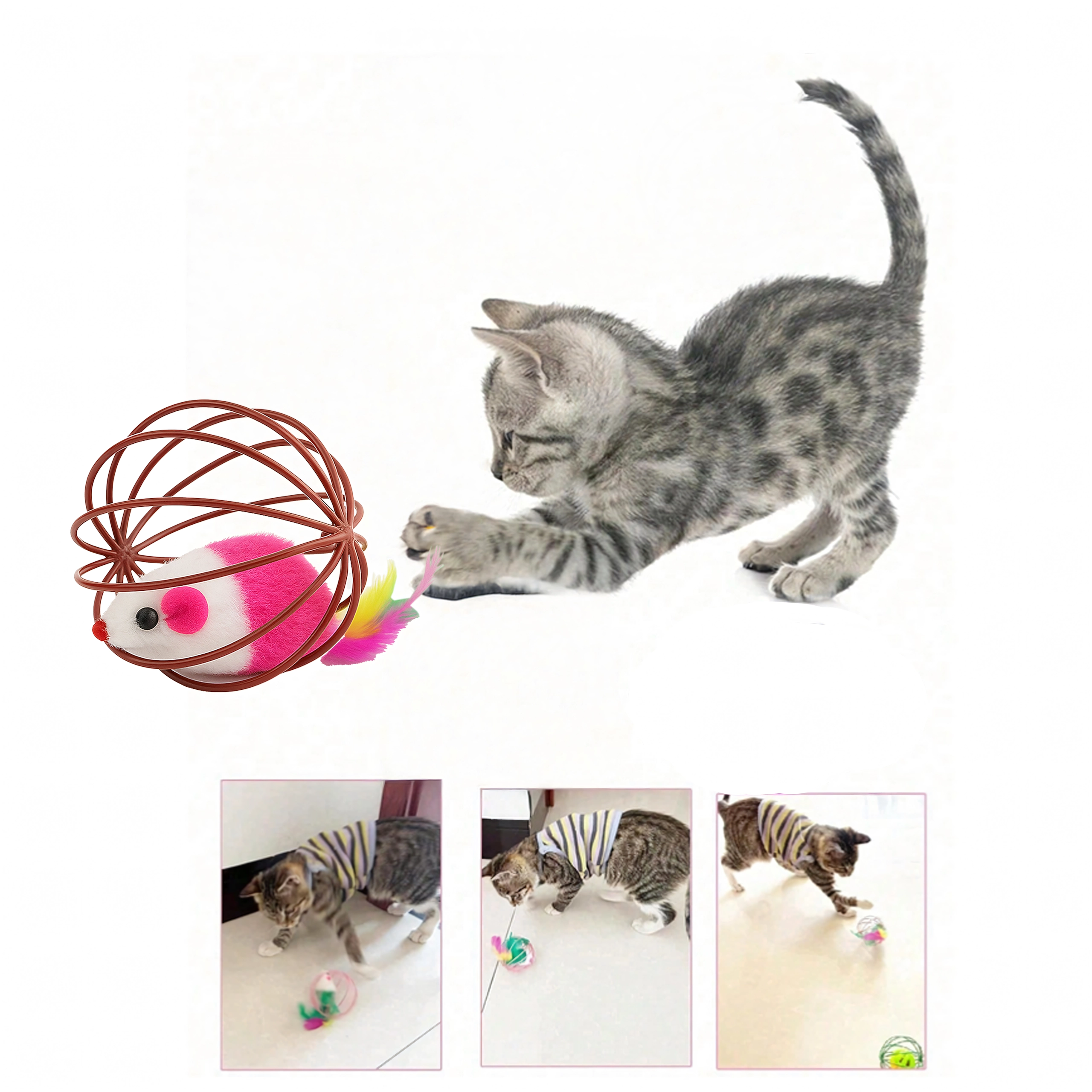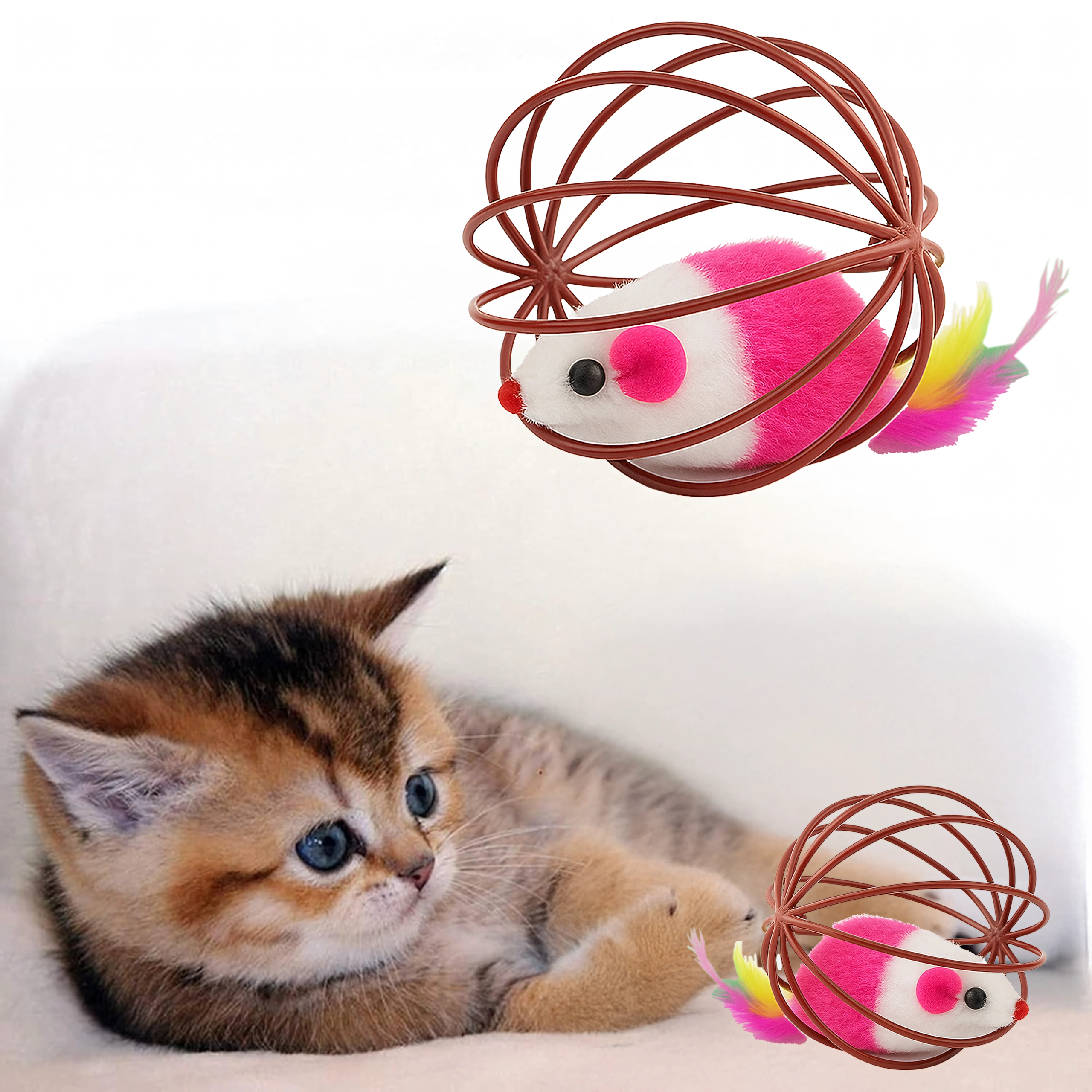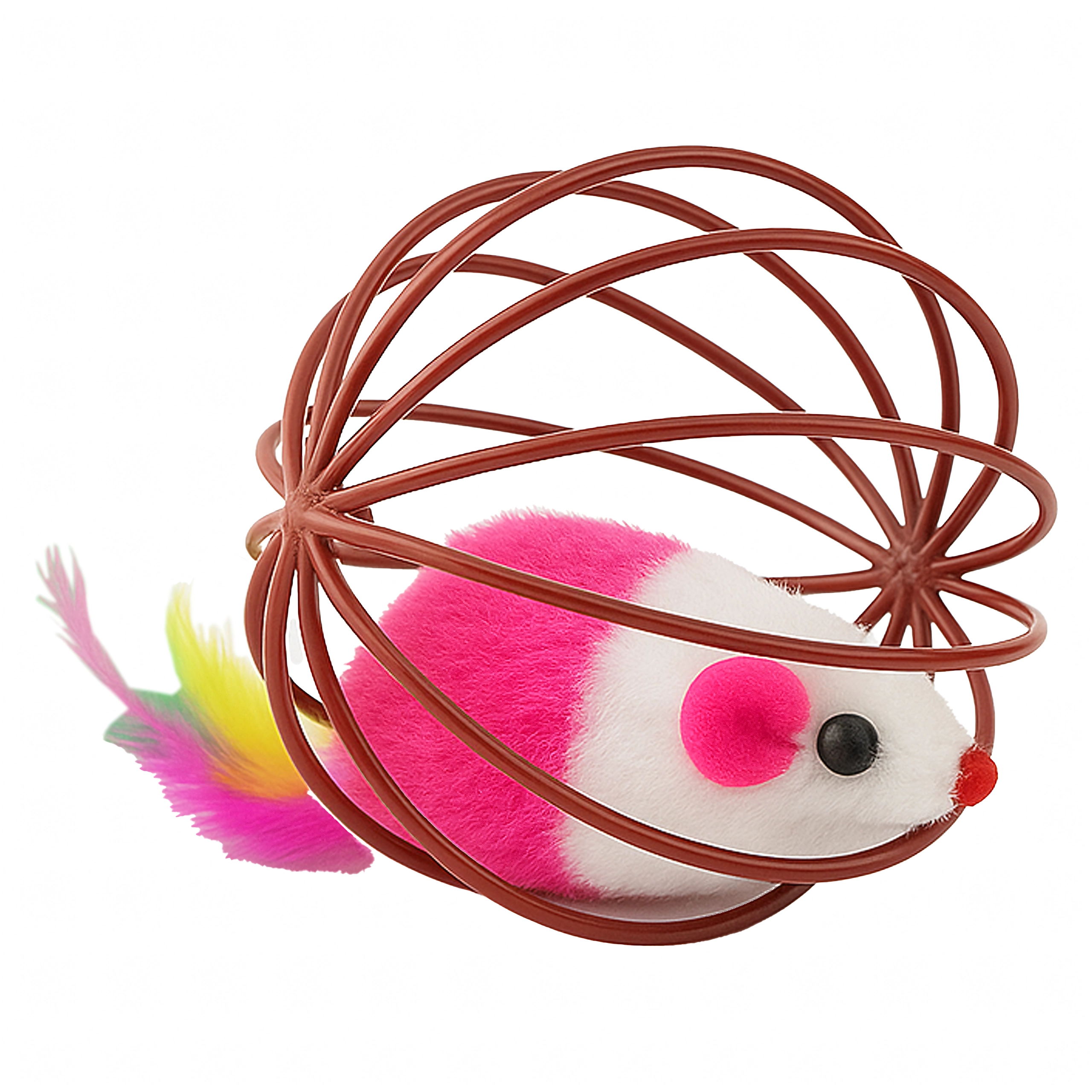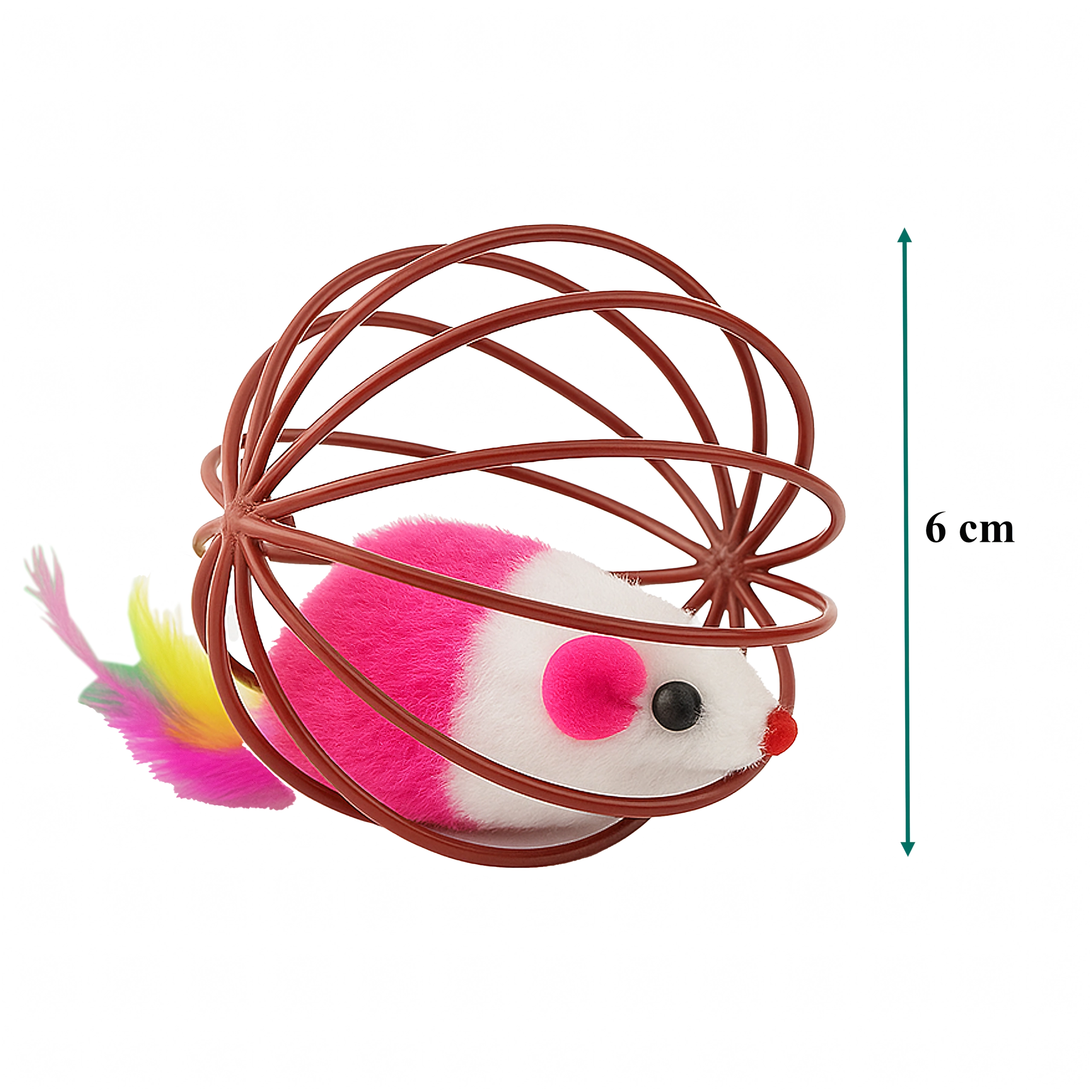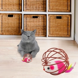 Dit slimme speeltje combineert een lichte draadbal die soepel over de vloer rolt met een pluchen muis binnenin. Tijdens het bewegen rammelt de muis zacht en de kleurrijke veren nodigen extra uit tot achtervolgen, aantikken en jagen. Ideaal voor kittens en volwassen katten die energie kwijt moeten en natuurlijk gedrag willen uiten.