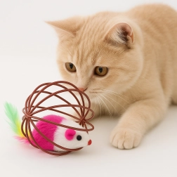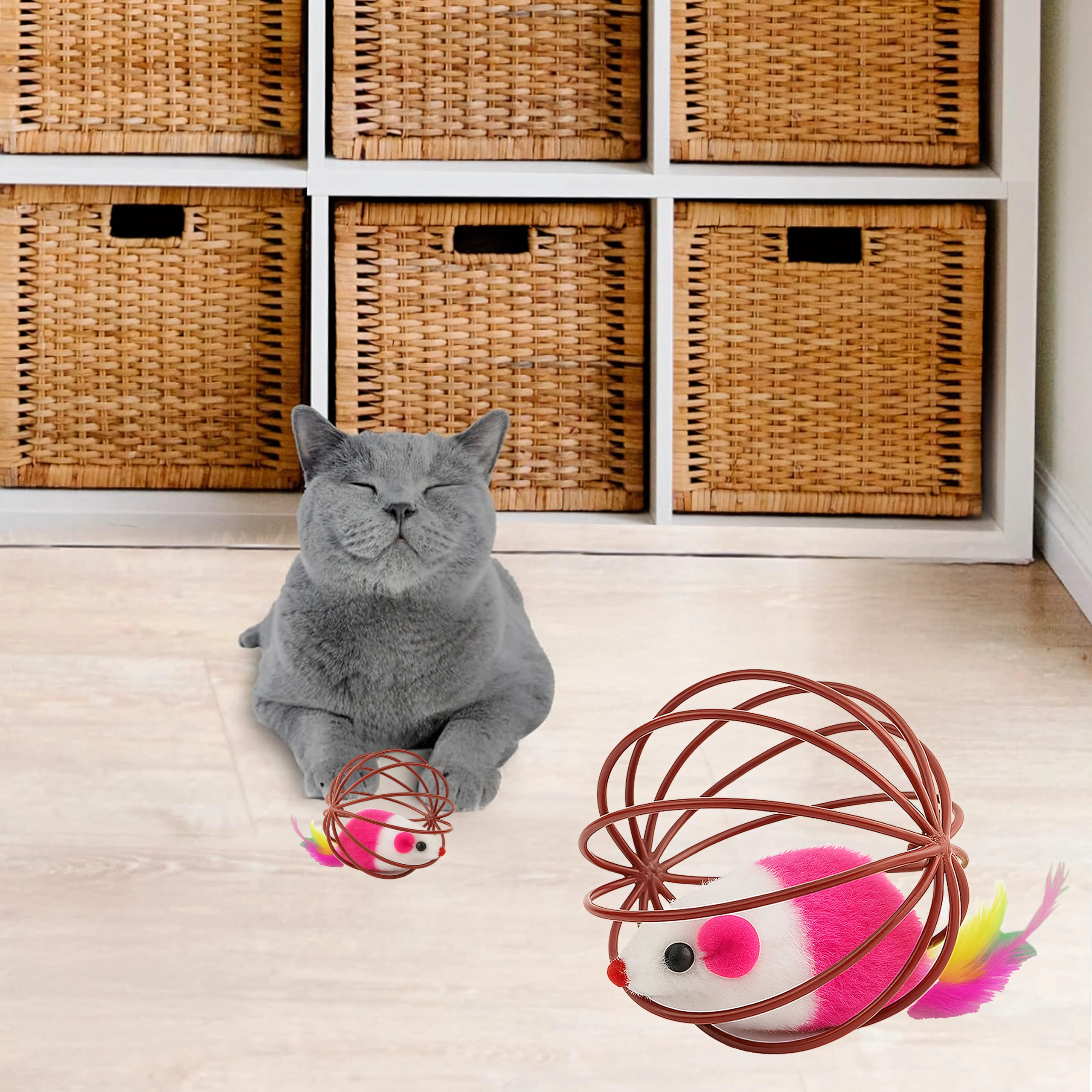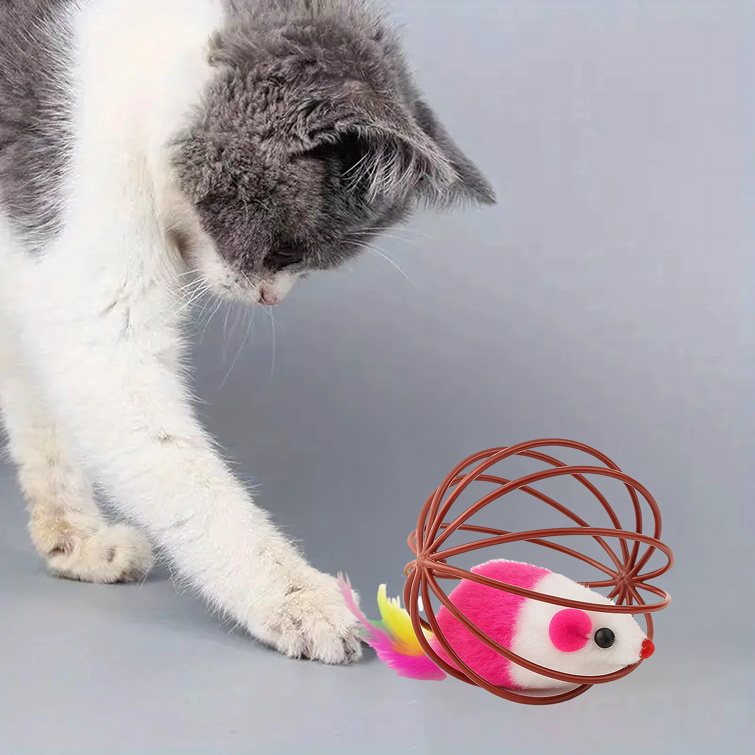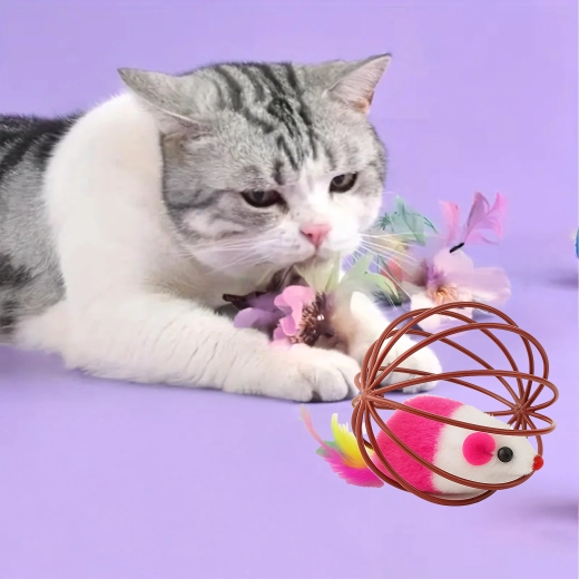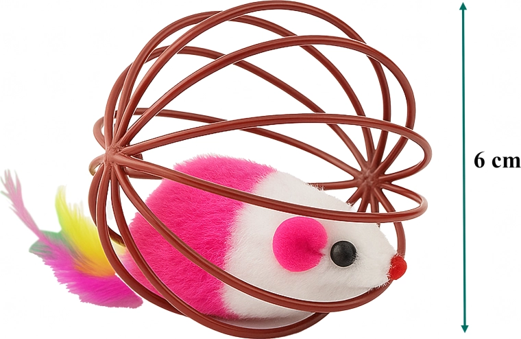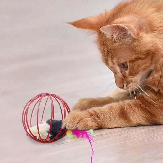 Dankzij de stevige draadconstructie rolt het speeltje gemakkelijk, terwijl de muis veilig binnen blijft. De open structuur maakt het voor de kat eenvoudig om het speeltje te grijpen en te verplaatsen, terwijl de zachte pluche en veren aantrekkelijke texturen bieden. Een uitstekende keuze voor zelfstandig spel en interactief spelen met het baasje.