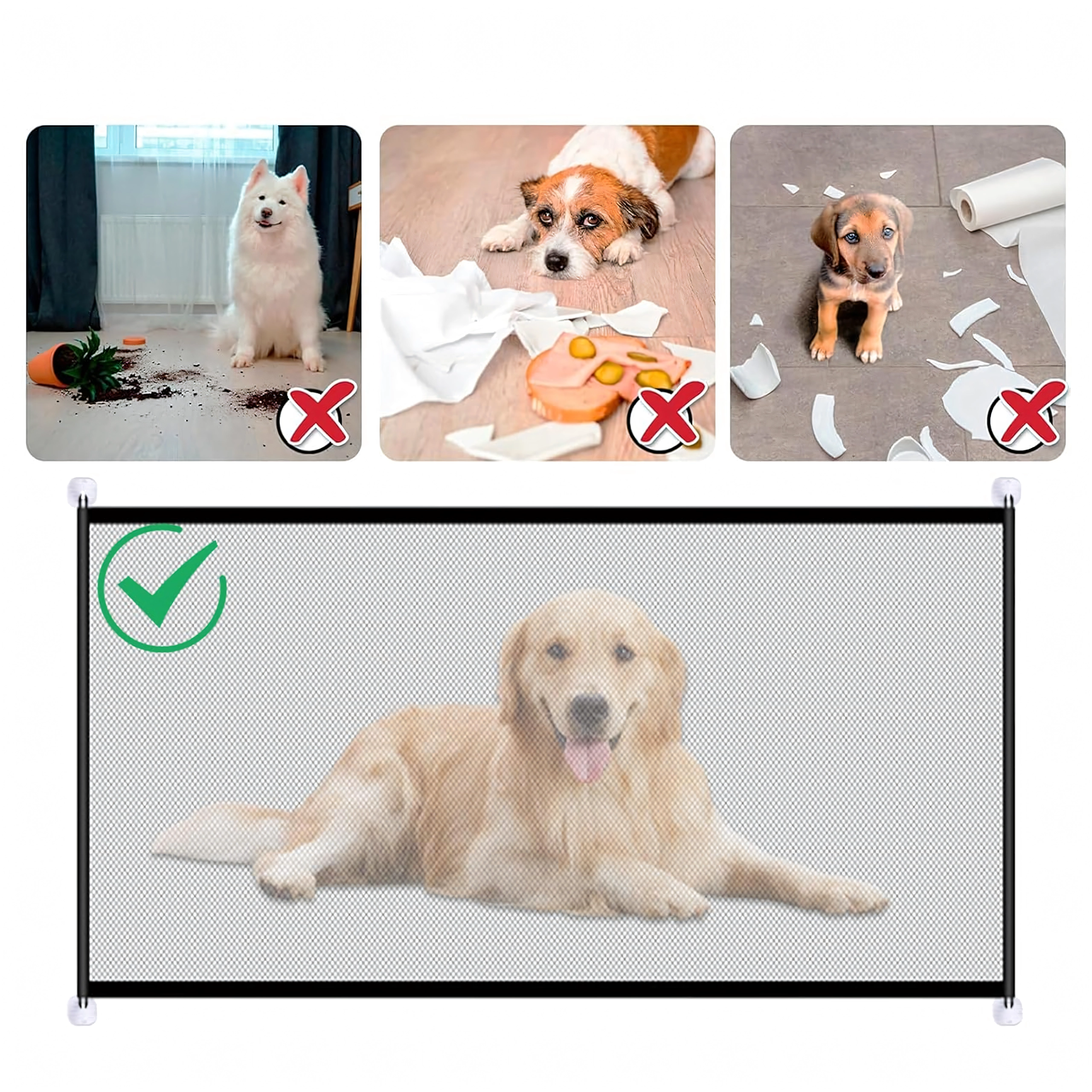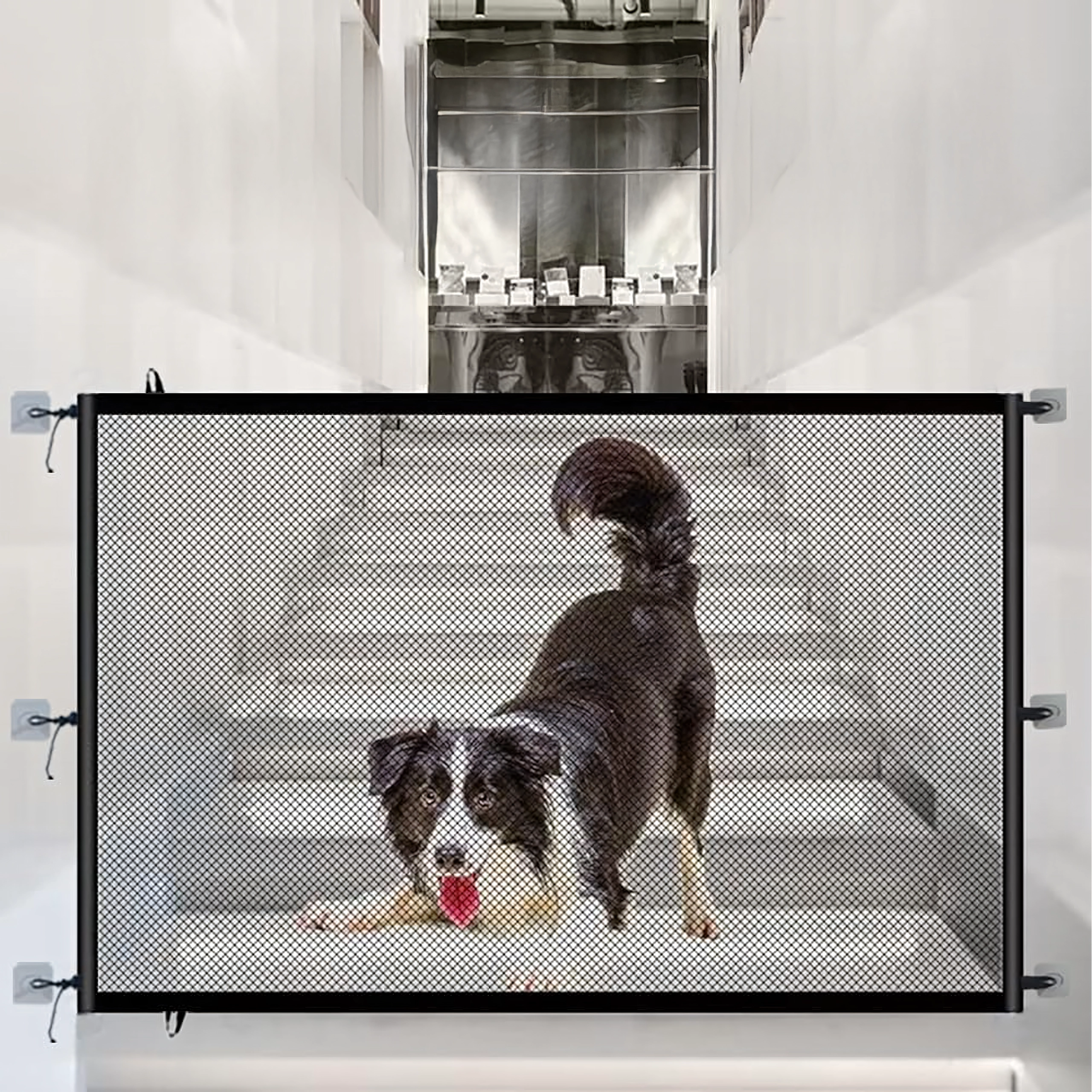 Dit universele nethek is de ideale oplossing wanneer u de beweging van een hond of kat tijdelijk wilt beperken. Dankzij het transparante, ademende net houdt u uw huisdieren continu in de gaten, terwijl de robuuste rand en bevestiging aan de muur stabiliteit bieden. Geschikt voor deuropeningen, gangen en het onderste deel van trappen.