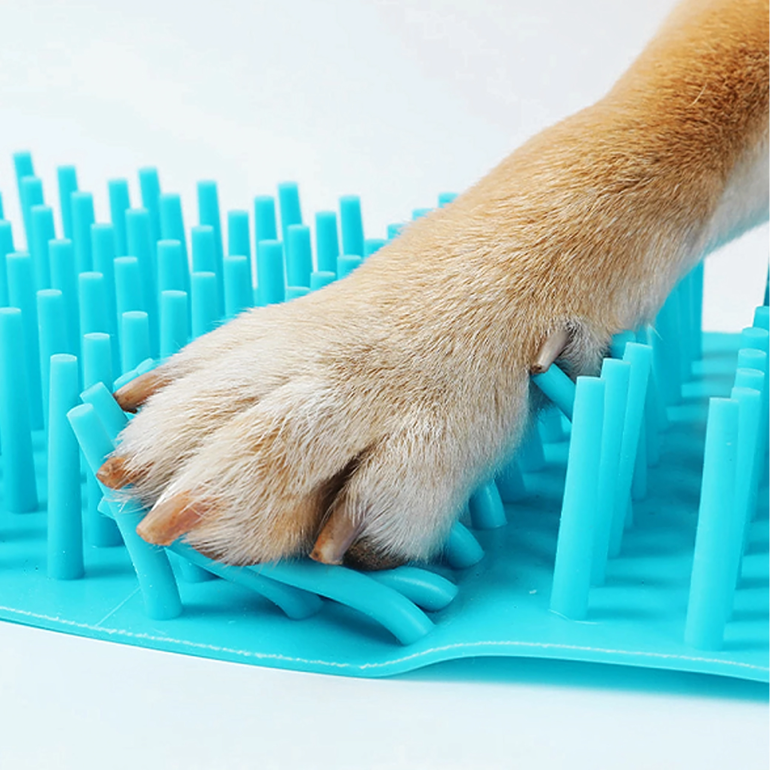 Dichte, zachte siliconen borsteltjes halen modder en zand voorzichtig los van kussentjes en tussen de tenen zonder irritatie.