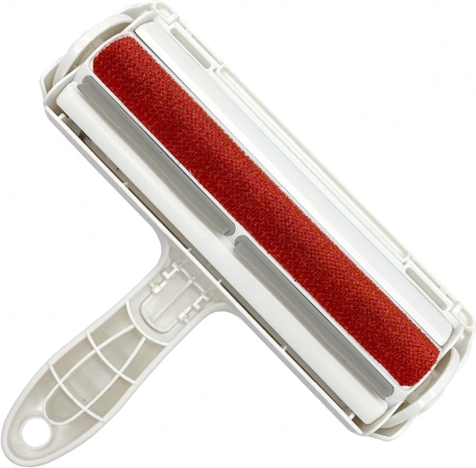Praktische handroller met een speciale nylon oppervlakte verwijdert snel haren en pluisjes van kleding, bekleding, tapijten en dekens. Hij is licht, herbruikbaar en heeft een geïntegreerde vuilkamer voor eenvoudig legen.