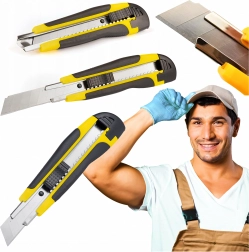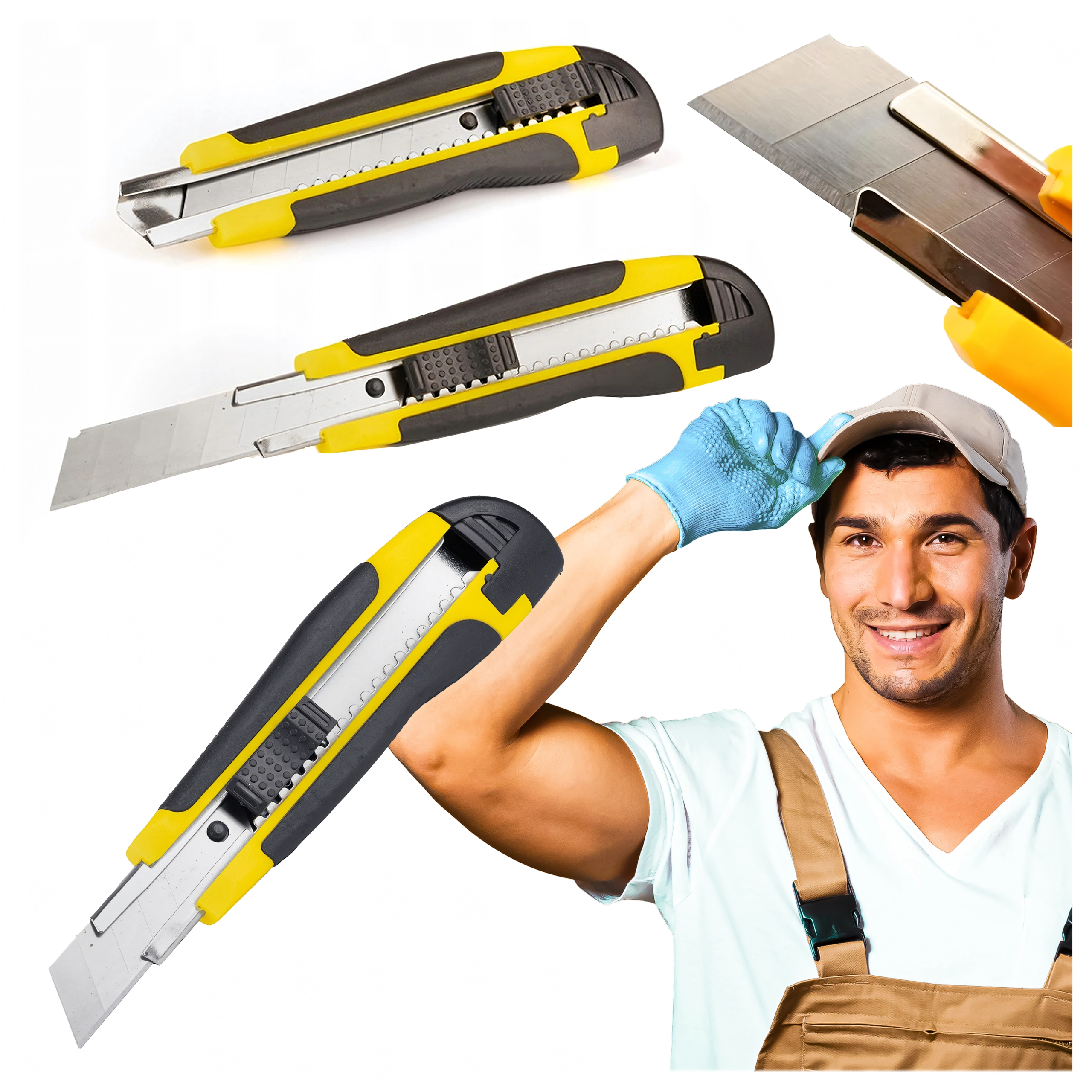 Betrouwbaar universeel mes met afbreekmesje is een onmisbare helper voor snijwerk in de werkplaats, bij modelbouw en in het huishouden. Het uitschuifmechanisme maakt veilige en snelle instelling van de lemmetlengte mogelijk en eenvoudig vernieuwen door een segment af te breken. De metalen behuizing met geleiderail van roestvrij staal biedt stevigheid en nauwkeurige geleiding van de snede.