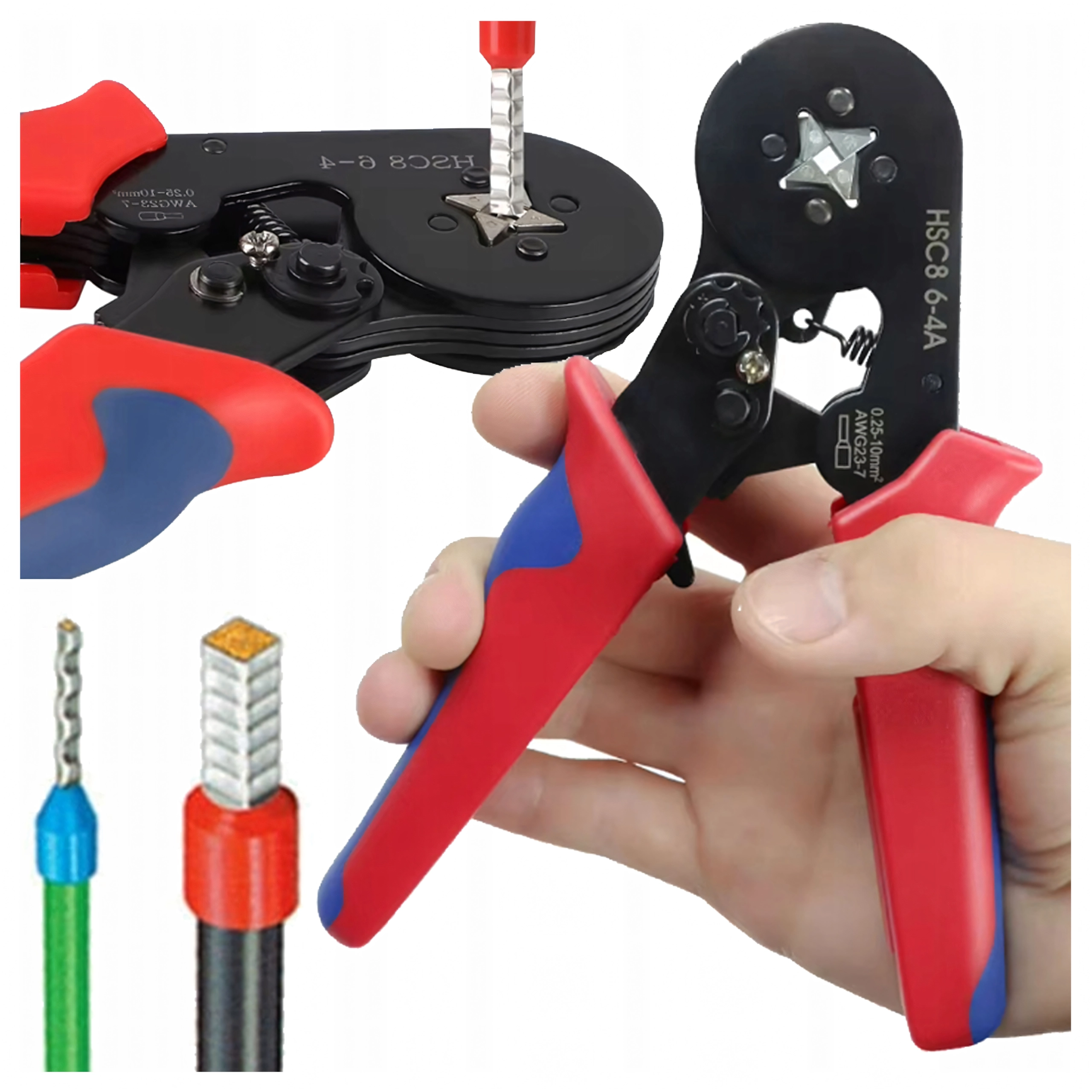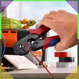 Deze compacte krimptang zorgt voor sterke en elektrisch betrouwbare verbindingen bij het aanbrengen van adereindhulzen op koperen geleiders. Dankzij het preciese vierkante krimpprofiel en de ratelvergrendeling bereikt u moeiteloos consistente resultaten. Het bereik van 0,25–10 mm² dekt de meest voorkomende installaties in auto-elektronica, schakelkasten en huishoudelijke reparaties.