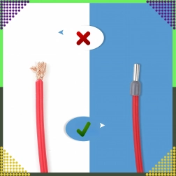 De metalen inzet en de isolerende kraag zorgen voor een zekere krimp op de soepele geleider en een stabiele verbinding in schroefklemmen zonder uitrafelen van aders.