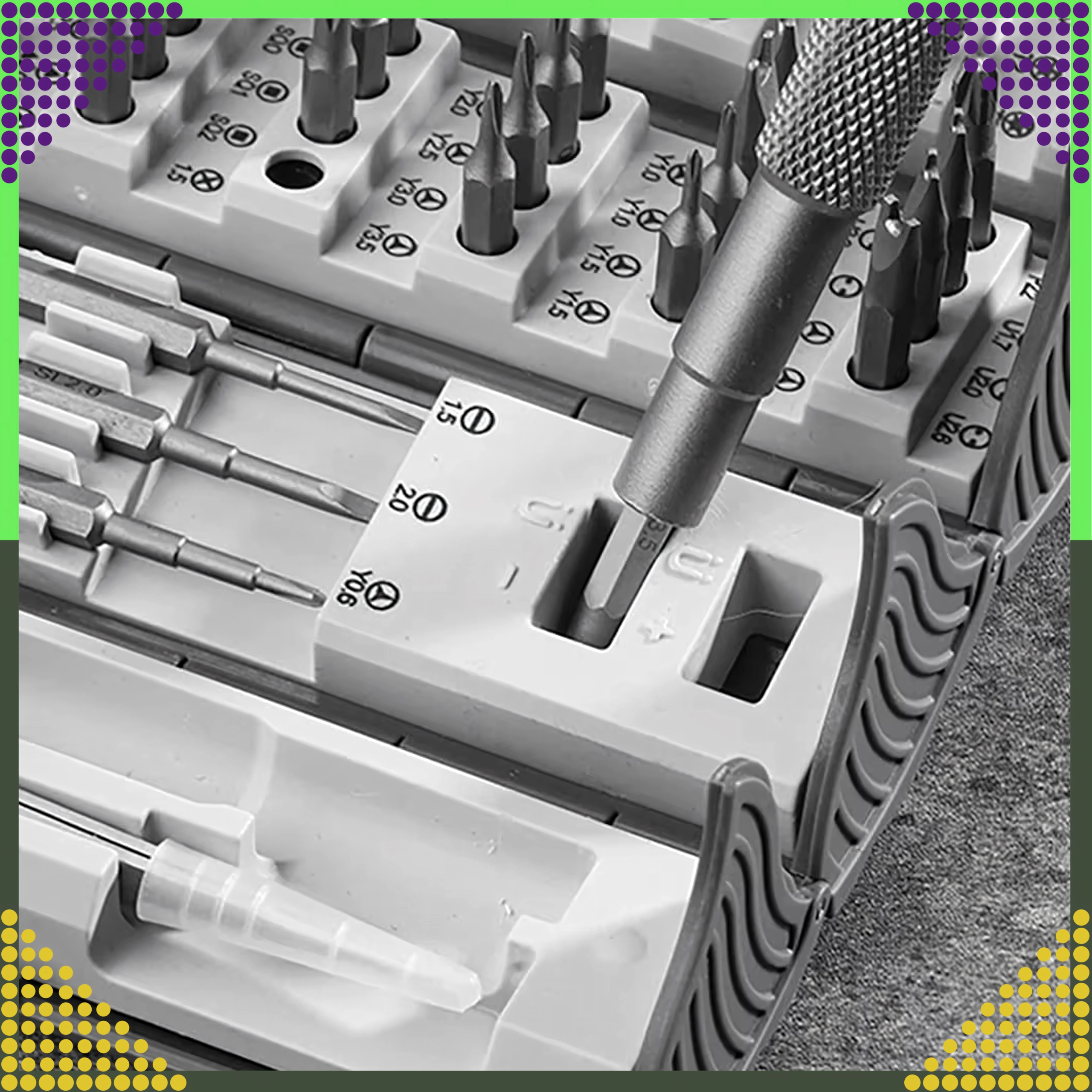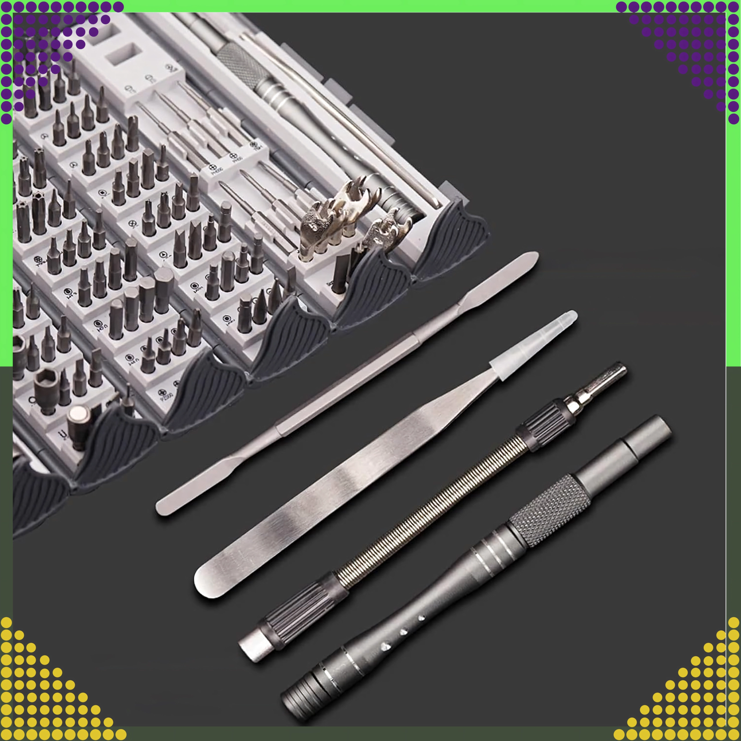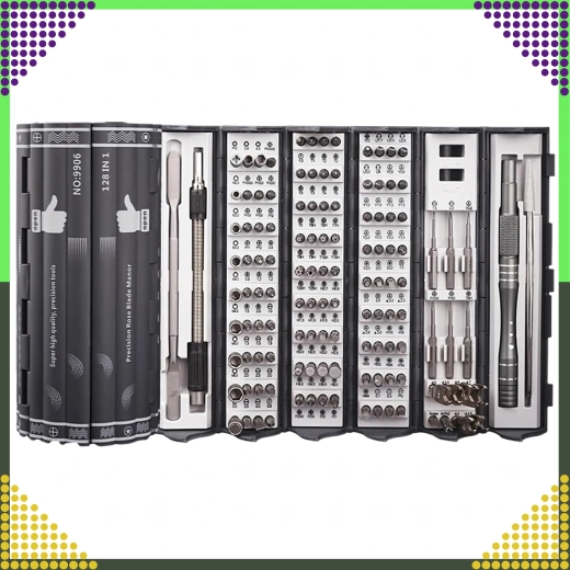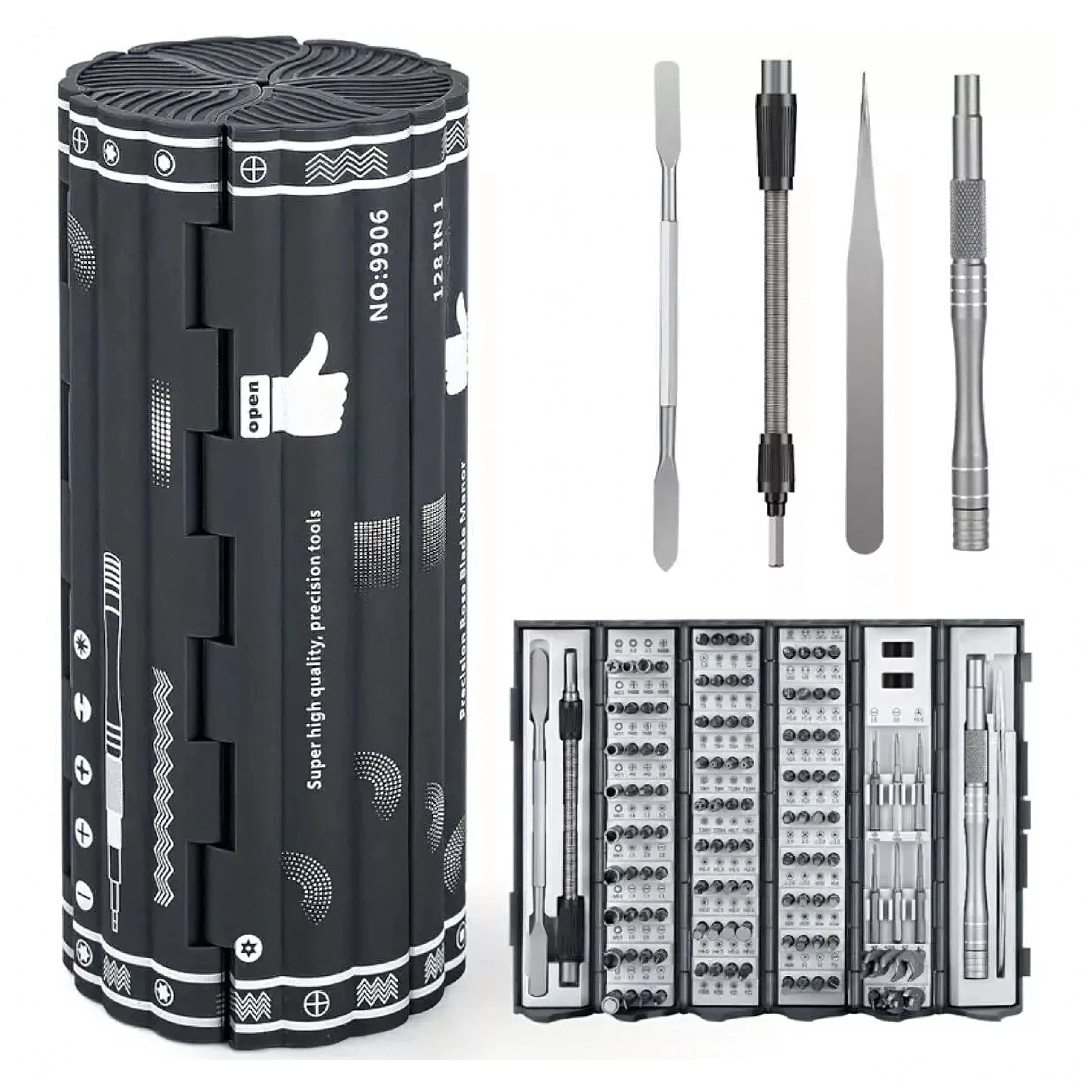 Deze universele 128-in-1 gereedschapsset is een uitstekende keuze voor professionele servicepunten en thuisklussers. Magnetische bits houden schroeven stevig vast, versnellen het werk en verkleinen het risico op verlies. Hoogwaardig staal zorgt voor slijtage- en corrosiebestendigheid, terwijl antislip handgrepen comfort bieden bij langdurig gebruik.