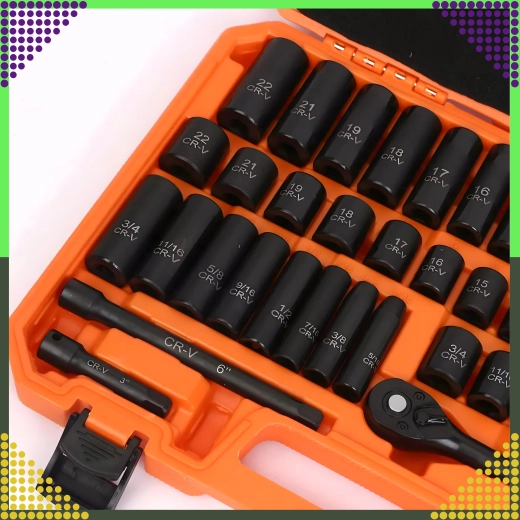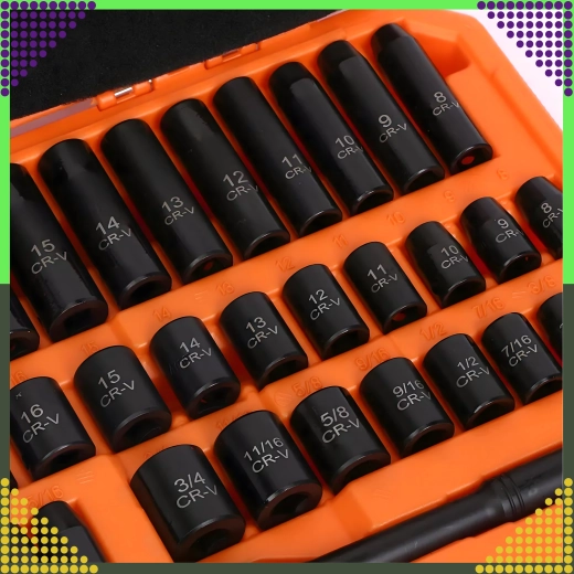 Deze universele set 3/8'' slag-dopsleutels is ontworpen voor monteurs, reparateurs en veeleisende doe-het-zelvers. Hij combineert metrische en SAE-maten, zodat u eenvoudig Europese en Amerikaanse machines kunt servicen. Het 6-kantprofiel zorgt voor stevig contact met de bout en vermindert het risico op afgeronde hoeken.