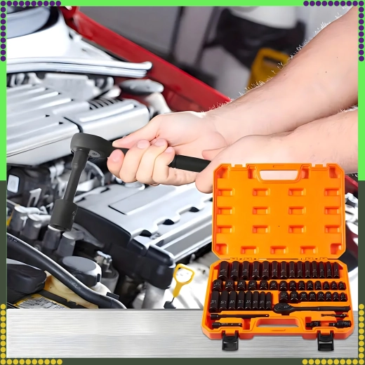 De precieze ratel met ergonomische handgreep versnelt het werk; verlengstukken en het scharnier voegen bereik toe in krappe ruimtes. Duurzaam chroom-vanadiumstaal Cr‑V biedt een lange levensduur en betrouwbaarheid onder slagbelasting, terwijl de robuuste koffer alles overzichtelijk geordend en klaar voor transport houdt.