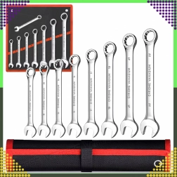 Deze professionele set combineert een steeksleutel en een ratelring in één gereedschap, zodat je bouten en moeren efficiënt en comfortabel kunt vast- en losdraaien. Hoogwaardig chroom-vanadiumstaal (CrV) zorgt voor hoge sterkte, lange levensduur en corrosiebestendigheid.