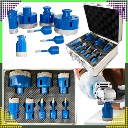 Deze professionele set diamantgatenzagen is ontworpen voor snel en schoon boren in harde materialen. Dankzij het brede scala aan diameters dekt hij de meeste installatie- en afbouwwerkzaamheden in badkamers, keukens en op de bouw. De robuuste constructie en diamanten coating bieden een lange levensduur en stabiele prestaties.