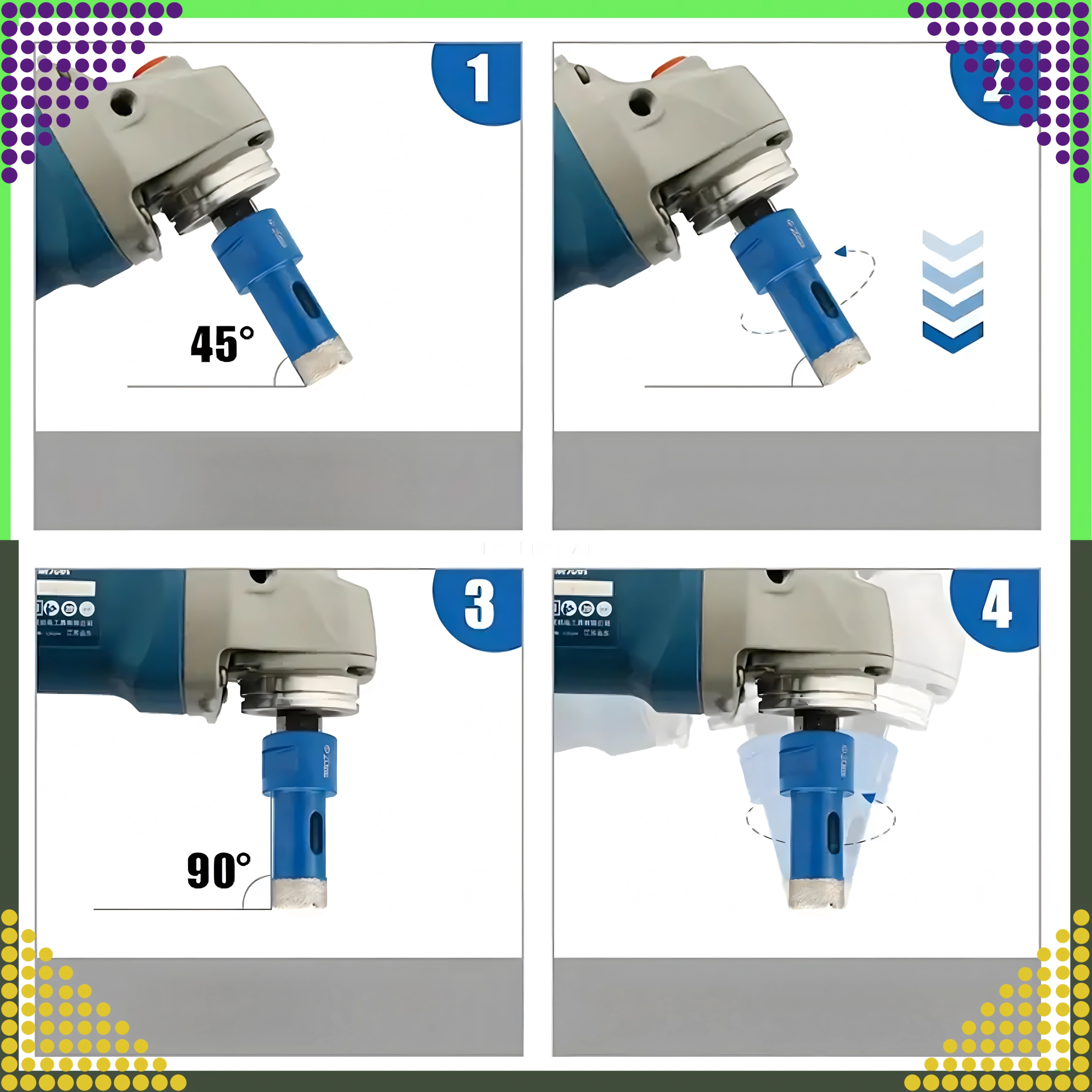 - Breed inzetbaar: gres, keramische tegels, beton, baksteen, graniet en andere harde oppervlakken.