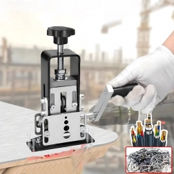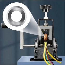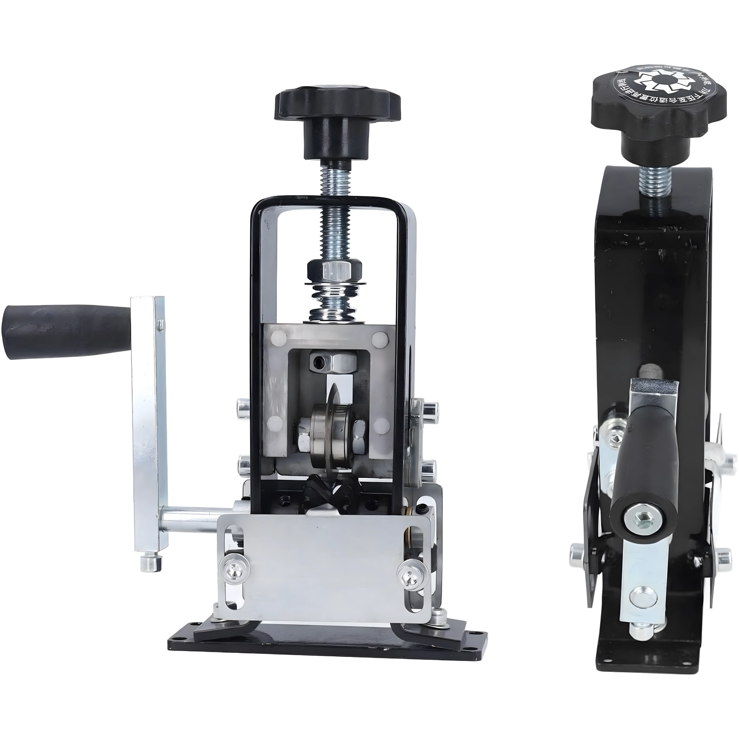 Deze robuuste stripmachine is ontworpen voor efficiënte verwerking van een breed scala aan kabels. De verstelbare aandrukschroefkop en de geleiders met een paar rollen zorgen voor een soepele geleiding en een nauwkeurige mesinslag in de isolatie, zonder de koperen of aluminium kern te beschadigen.