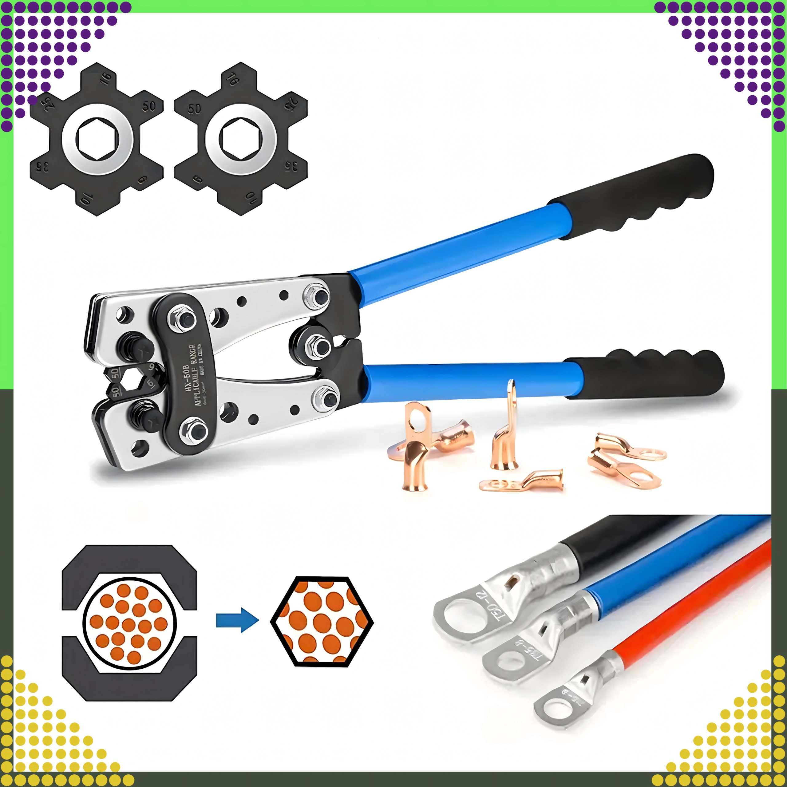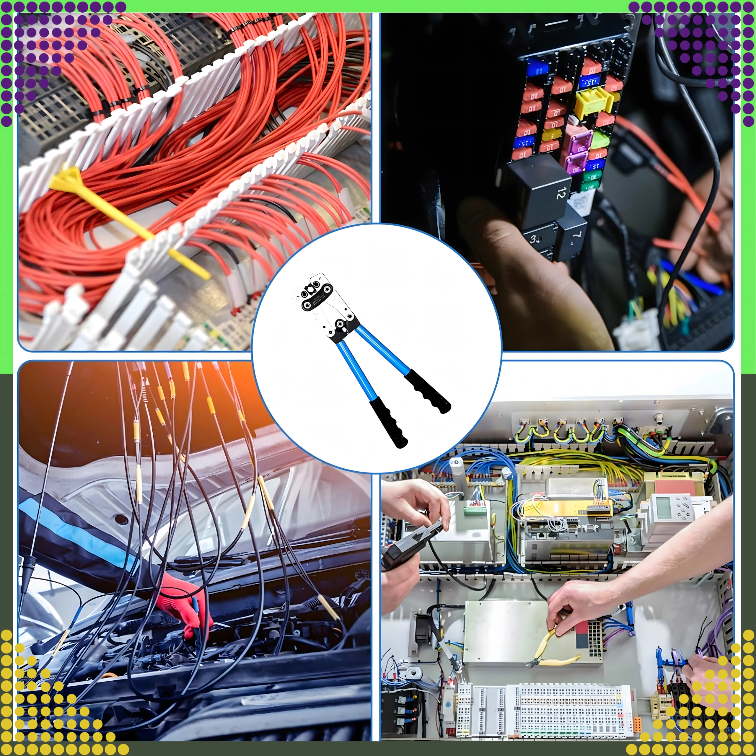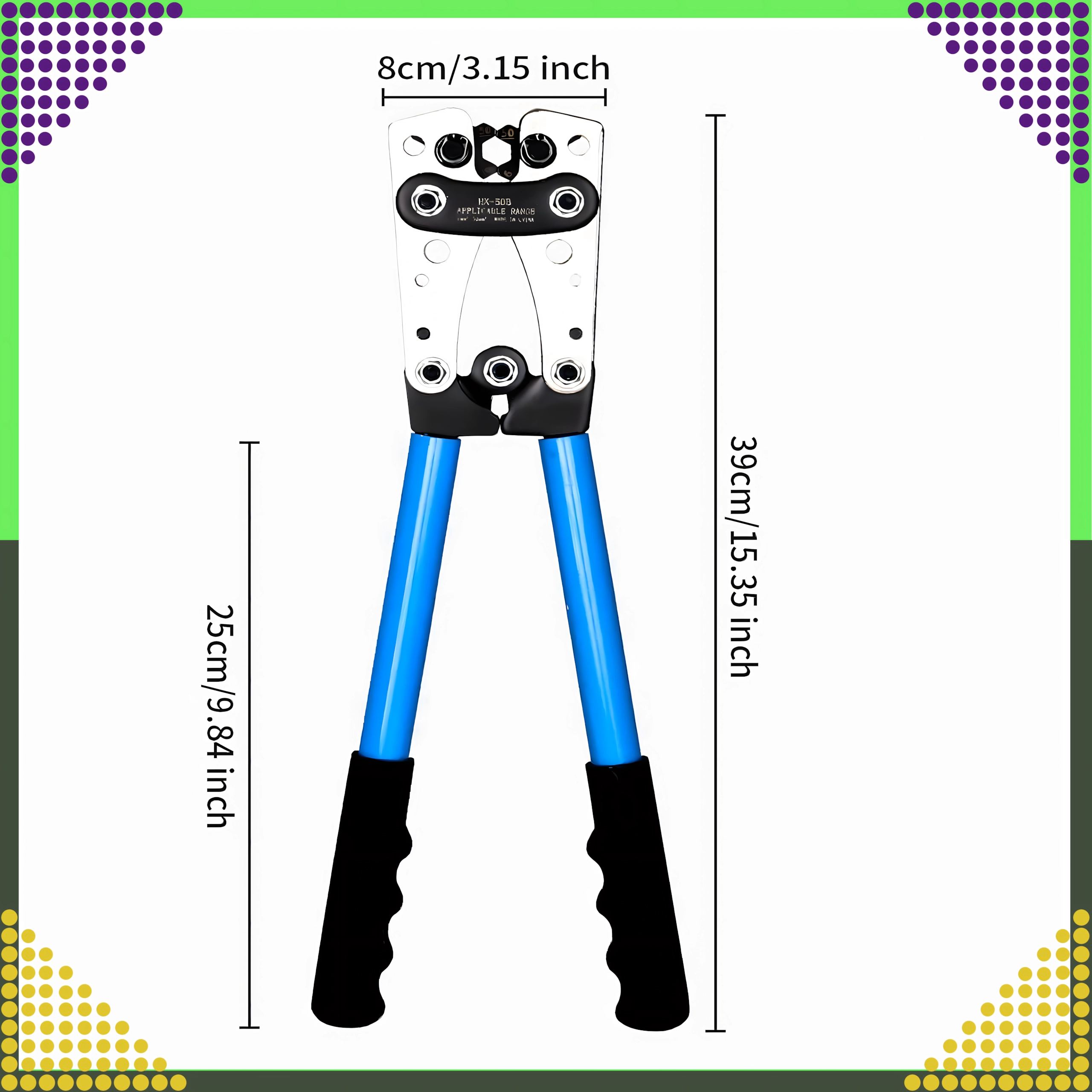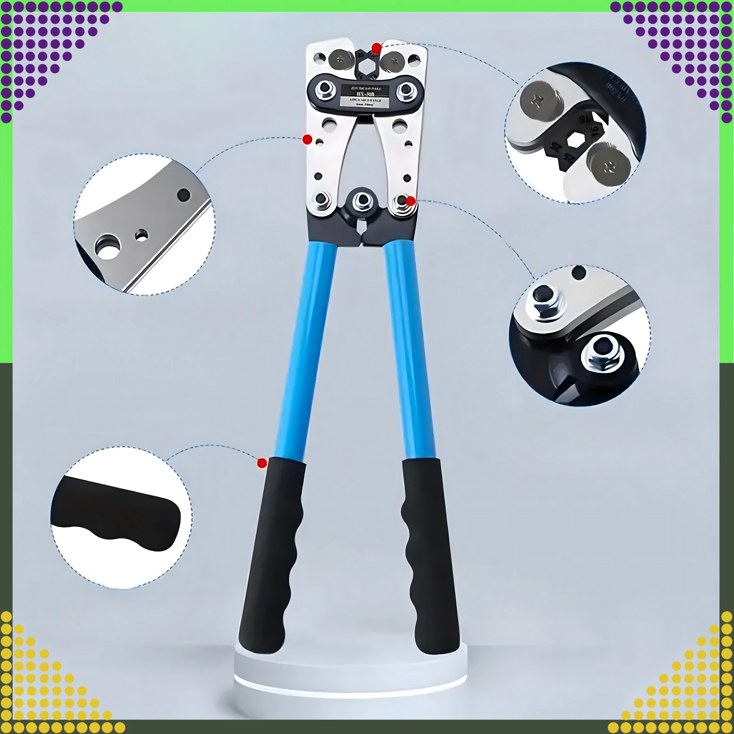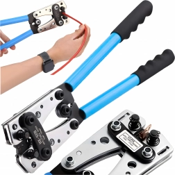 De zware stalen constructie met lange armen en antislipgrepen verhoogt comfort en veiligheid, zowel in de kast, de werkplaats als op montage. Het gereedschap is geschikt voor koperen en aluminium kabelogen en hulzen, ideaal voor elektriciens, monteurs en veeleisend hobbymatig gebruik.