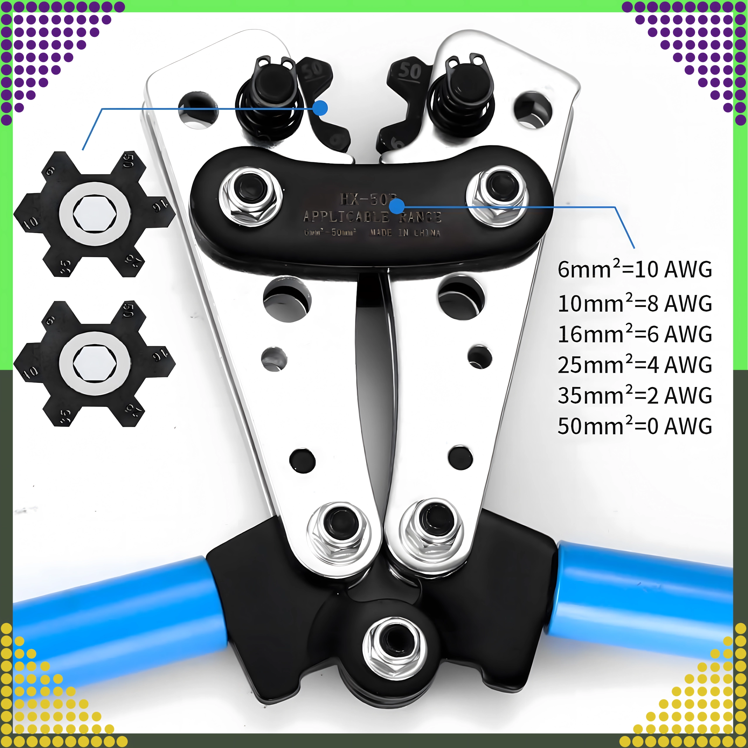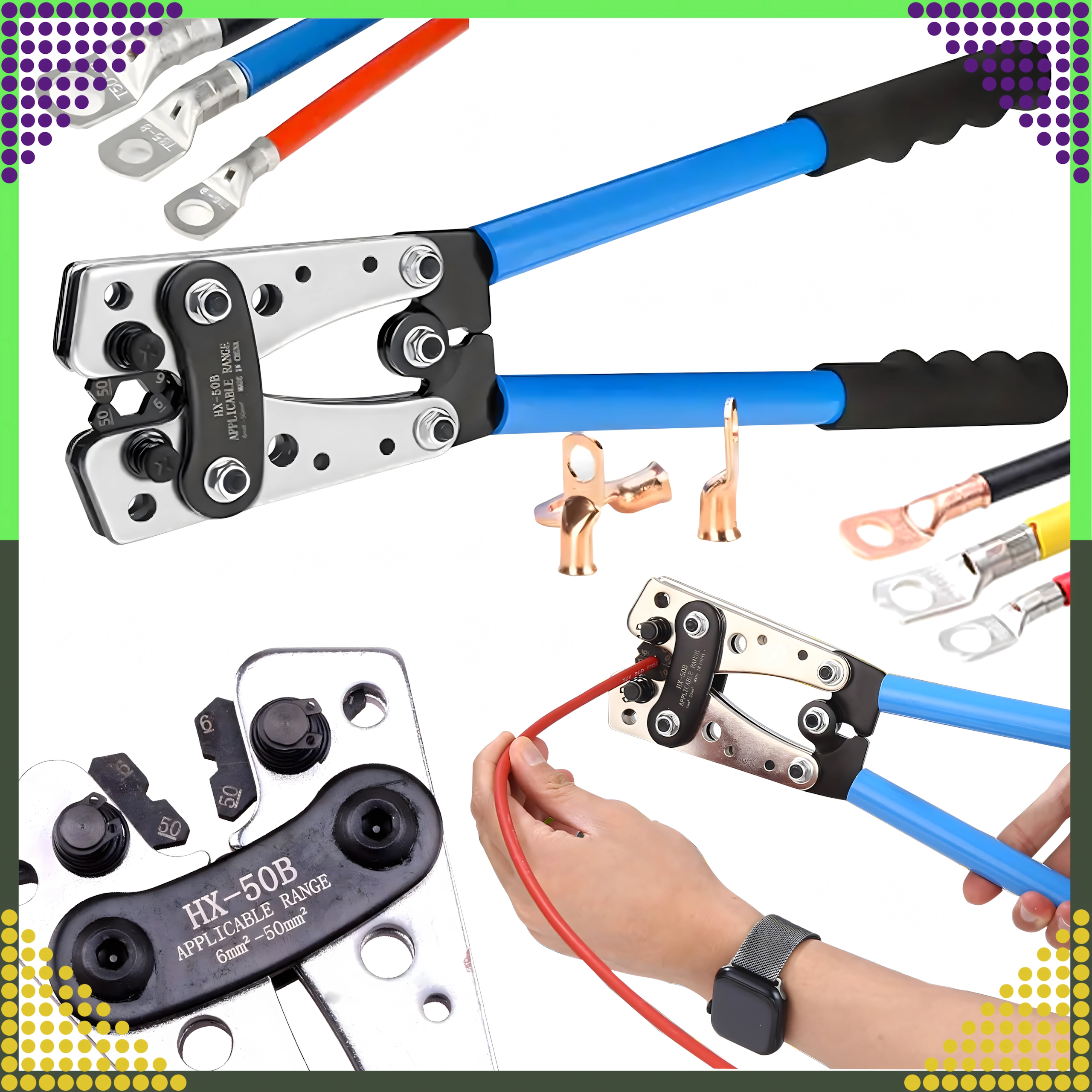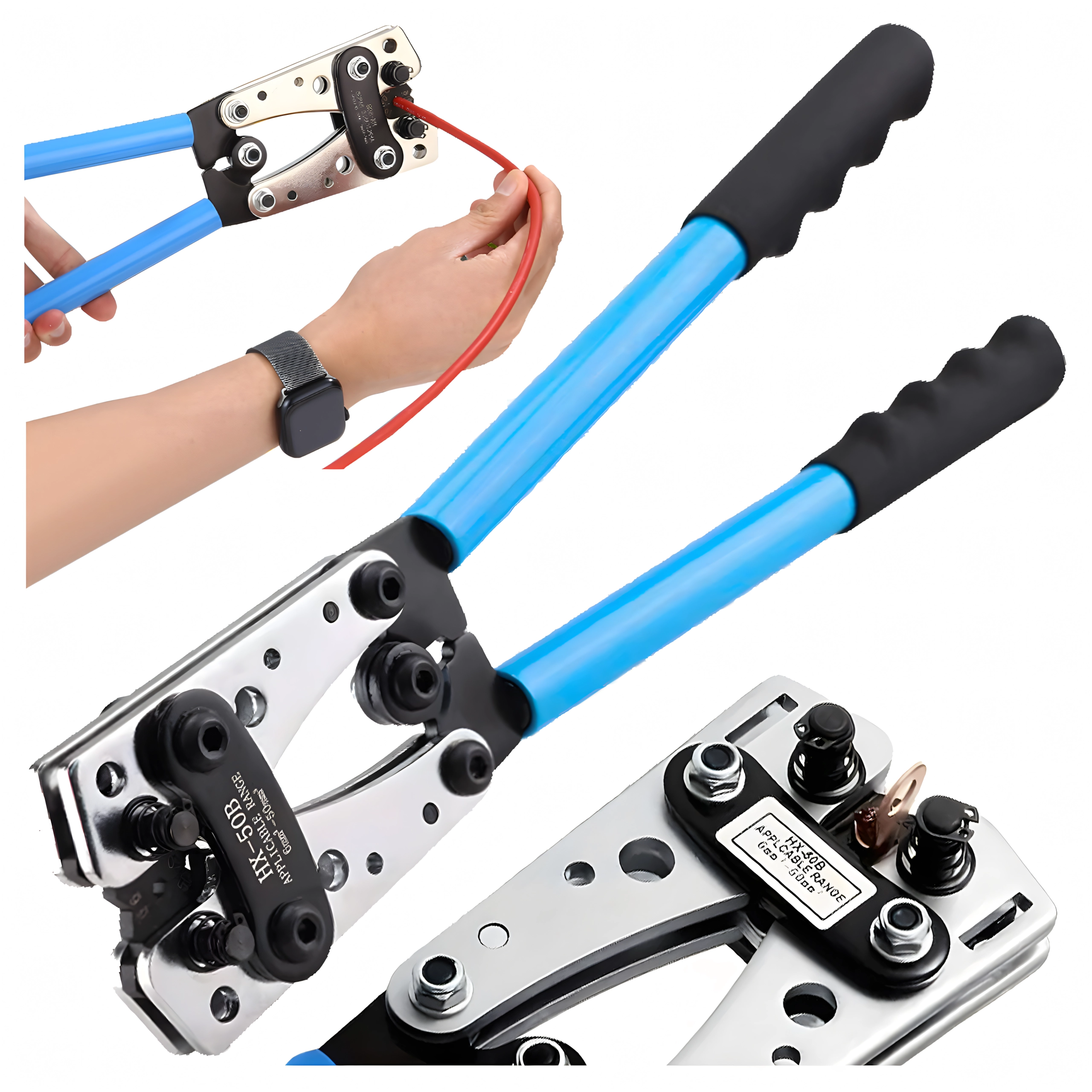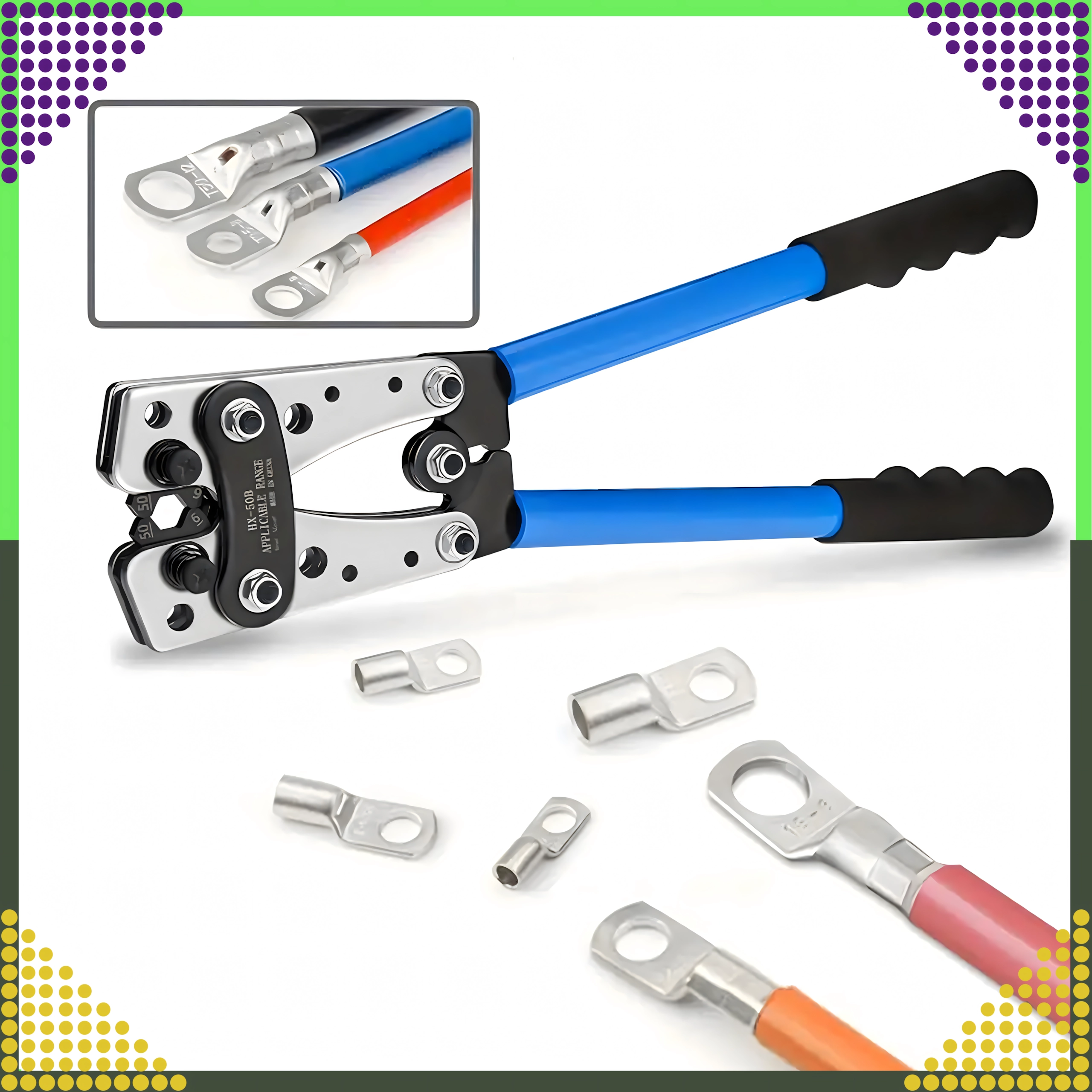 De zware stalen constructie met lange armen en antislipgrepen verhoogt comfort en veiligheid, zowel in de kast, de werkplaats als op montage. Het gereedschap is geschikt voor koperen en aluminium kabelogen en hulzen, ideaal voor elektriciens, monteurs en veeleisend hobbymatig gebruik.